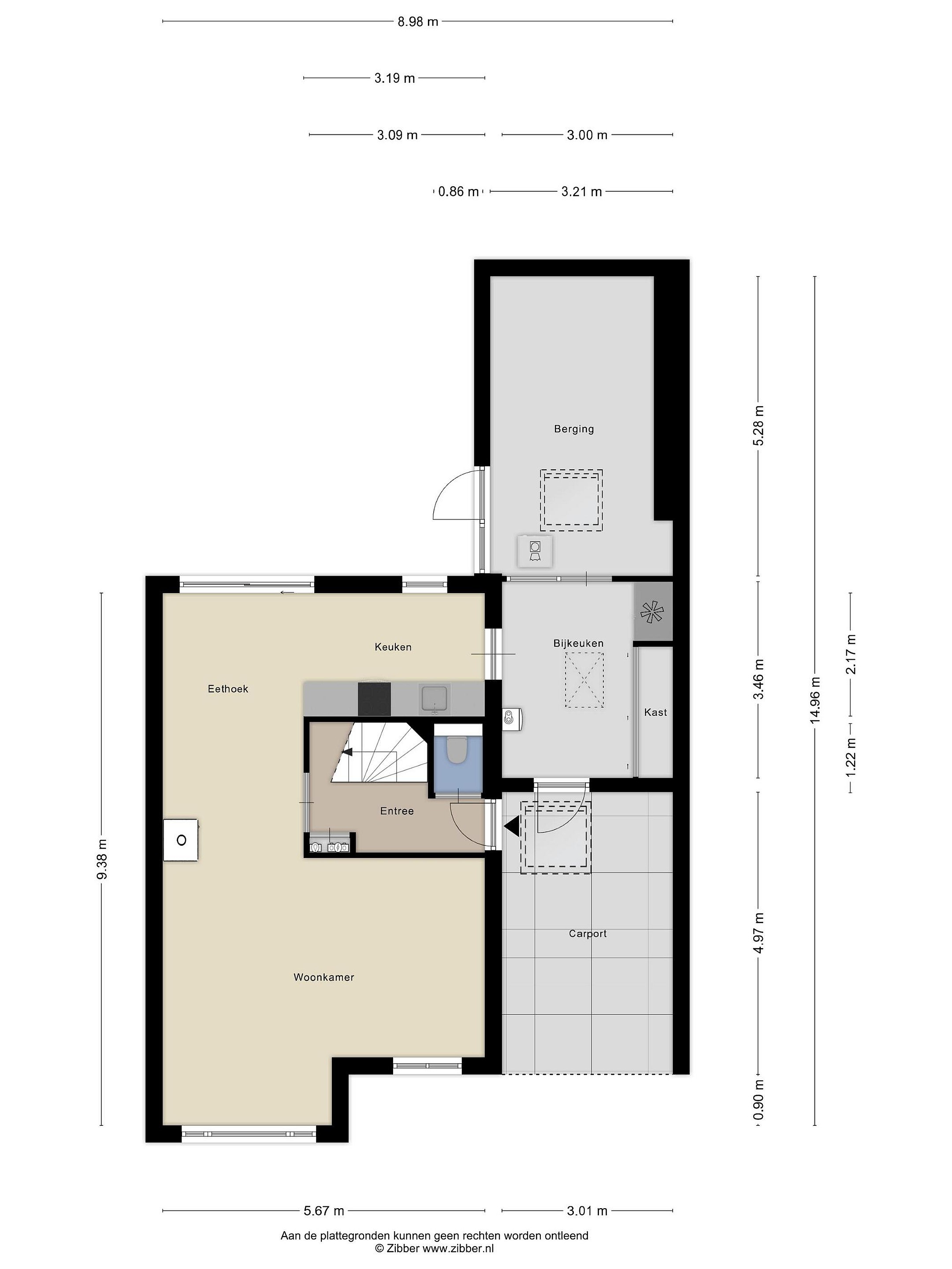 Entree; toilet; vaste trap naar de eerste verdieping. Vanuit de entree loop je door naar de gezellige woonkamer welke beschikt over een palletkachel. De woonkamer staat in open verbinding met de eetkamer, wat zorgt voor een ruimtelijk en licht geheel. Vanuit hier is er zicht en toegang tot de in 2021 vernieuwde moderne keuken welke is v.v. diverse inbouwapparatuur. Vanuit de keuken is de bijkeuken te bereiken welke in verbinding staat met de berging waar de witgoedaansluitingen zich bevinden.