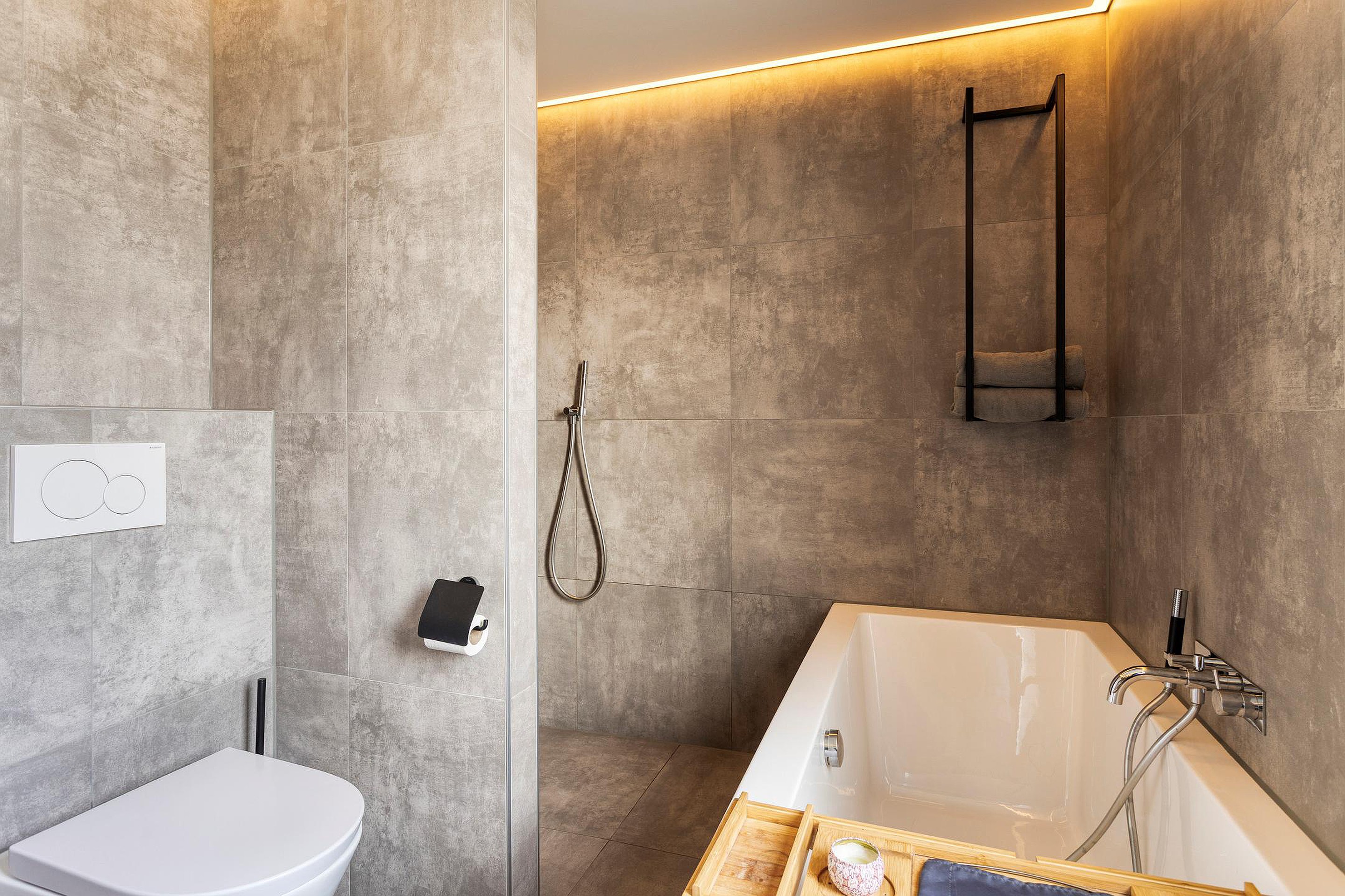 Overloop; toegang tot drie slaapkamers waarvan een royale slaapkamer v.v. balkon en een vaste kast. De moderne en luxe uitgevoerde badkamer beschikt over vloerverwarming, een ligbad, inloopdouche, dubbele wastafel en een toilet.