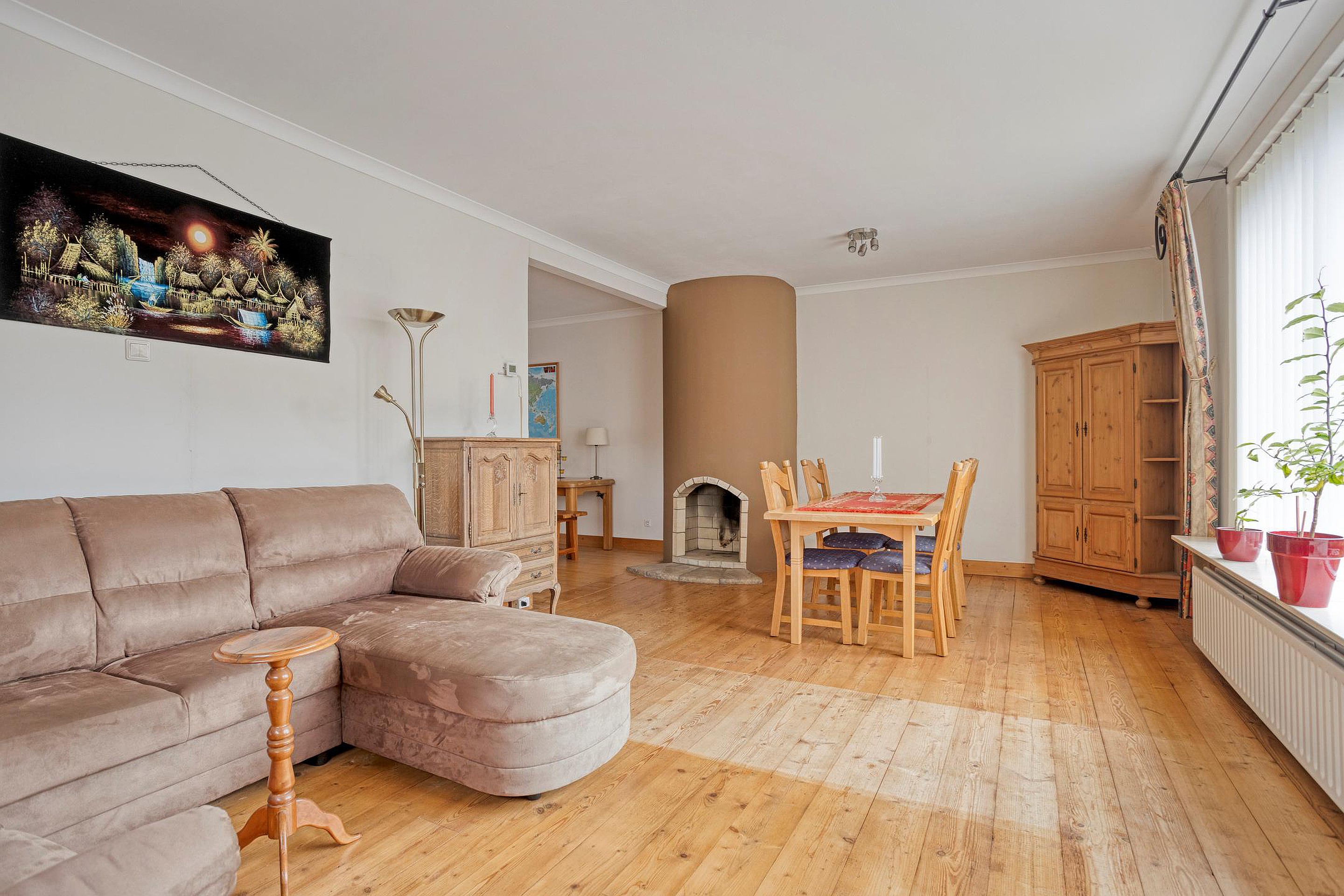 - Ruime woonkamer met open haard
