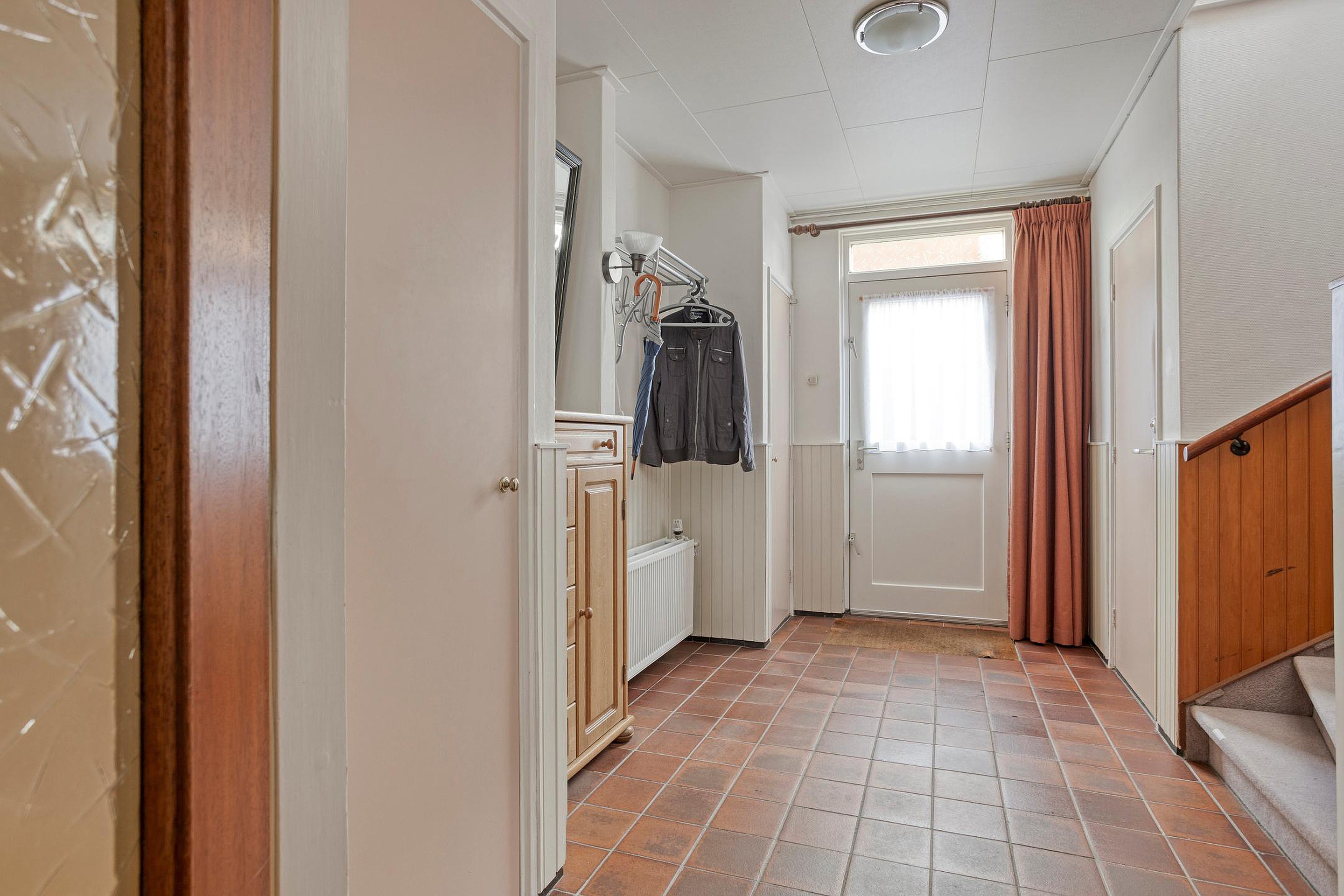 Entree/hal; trapopgang naar eerste verdieping; meterkast; toilet en toegang tot de woonkamer. De ruime woonkamer is aan de voorzijde gelegen en is voorzien van een sfeervolle houten vloer. Aan de achterzijde is er toegang tot de uitbouw, gerealiseerd in 1996, waar de keuken is gesitueerd. De keuken beschikt over een zitgedeelte en een inbouwkeuken. Deze is o.a. voorzien van een vaatwasser, koelkast, kookplaat en combi oven. Vanuit de keuken is er rechtstreeks toegang tot de tuin.