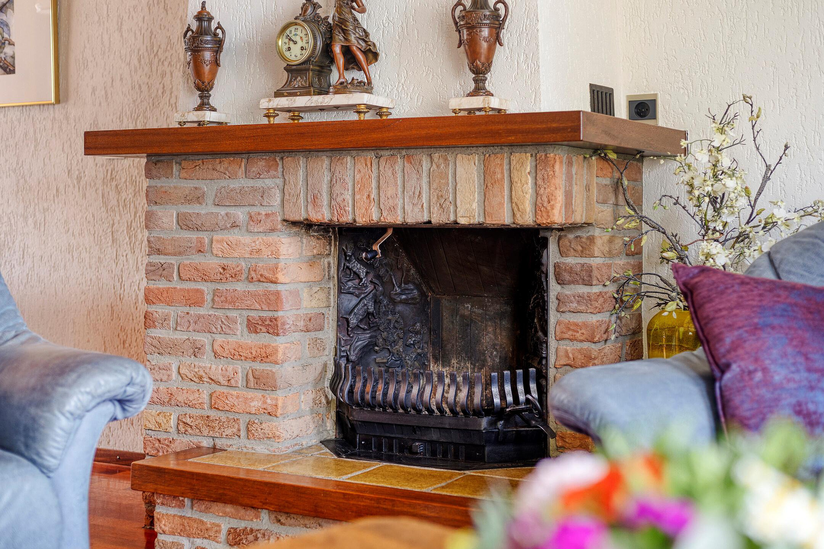 Tuin, open haard, rookkanaal, schuifpui, dakraam