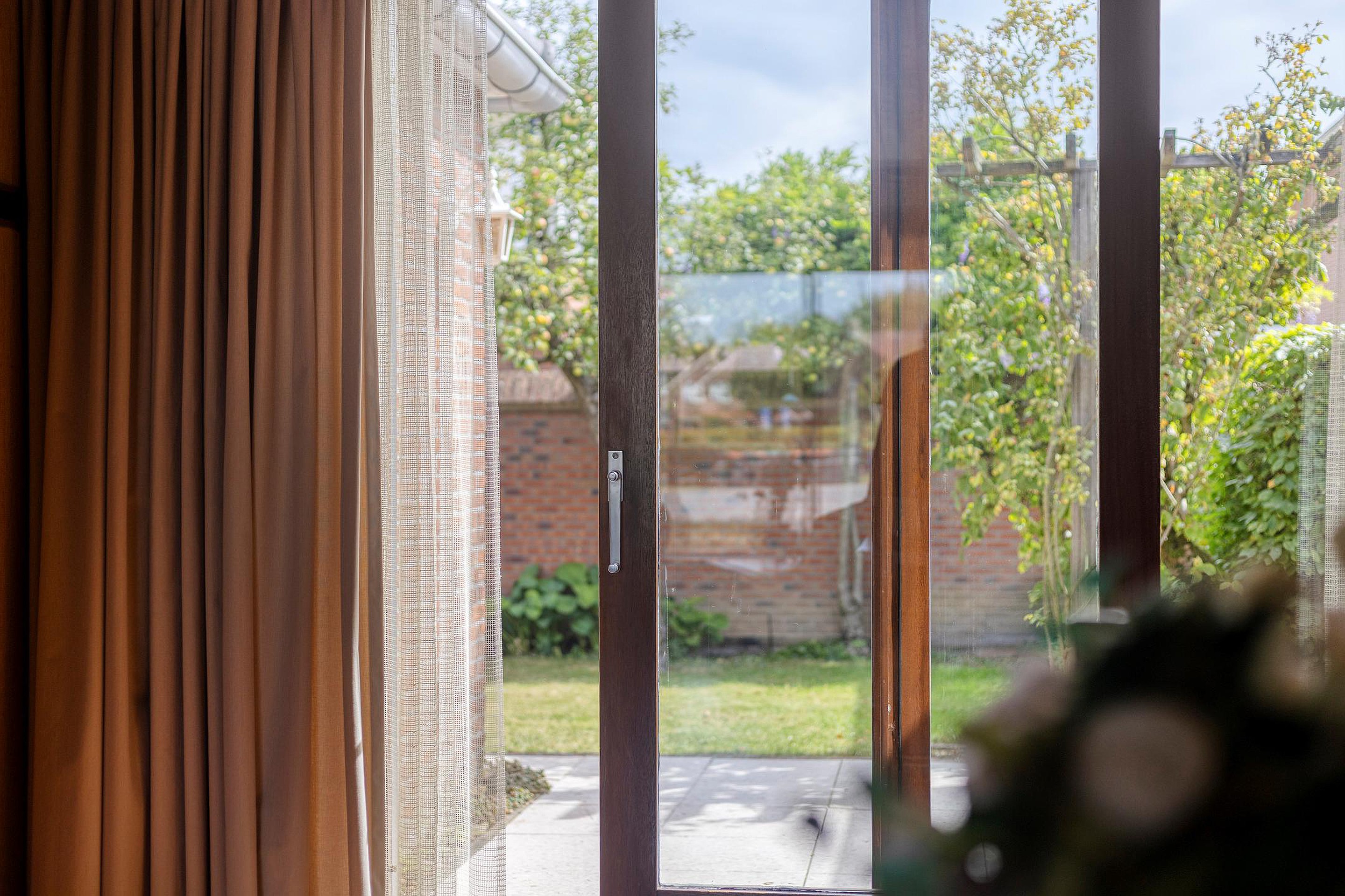 De achtertuin is gesitueerd op het Oosten en beschikt over een verhard terras welke direct toegankelijk is vanuit het eetgedeelte. De tuin is door groen omgeven als ook door een klassieke kloostermuur welke het tot een prachtig geheel maken! Verder is er een houten overkapping aanwezig en is er rechtstreeks toegang tot de garage. Deze ruimte is ideaal voor het parkeren van de fietsen en het opbergen van de tuingereedschappen. Daarnaast is er mede door de oprit plek om twee auto's te parkeren.
