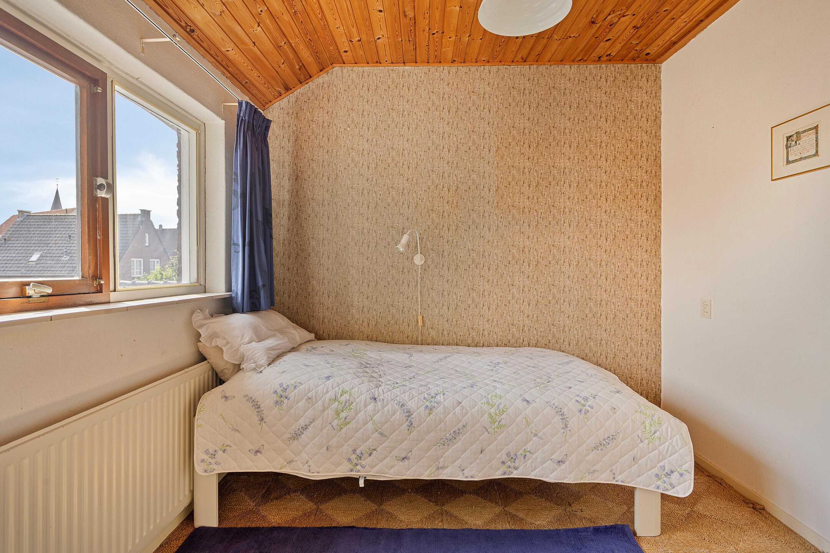 De overloop biedt toegang tot drie slaapkamers, die elk beschikken over vaste kasten én meerdere raampartijen. De badkamer is compact maar praktisch ingericht met een douche, toilet en een wastafel.