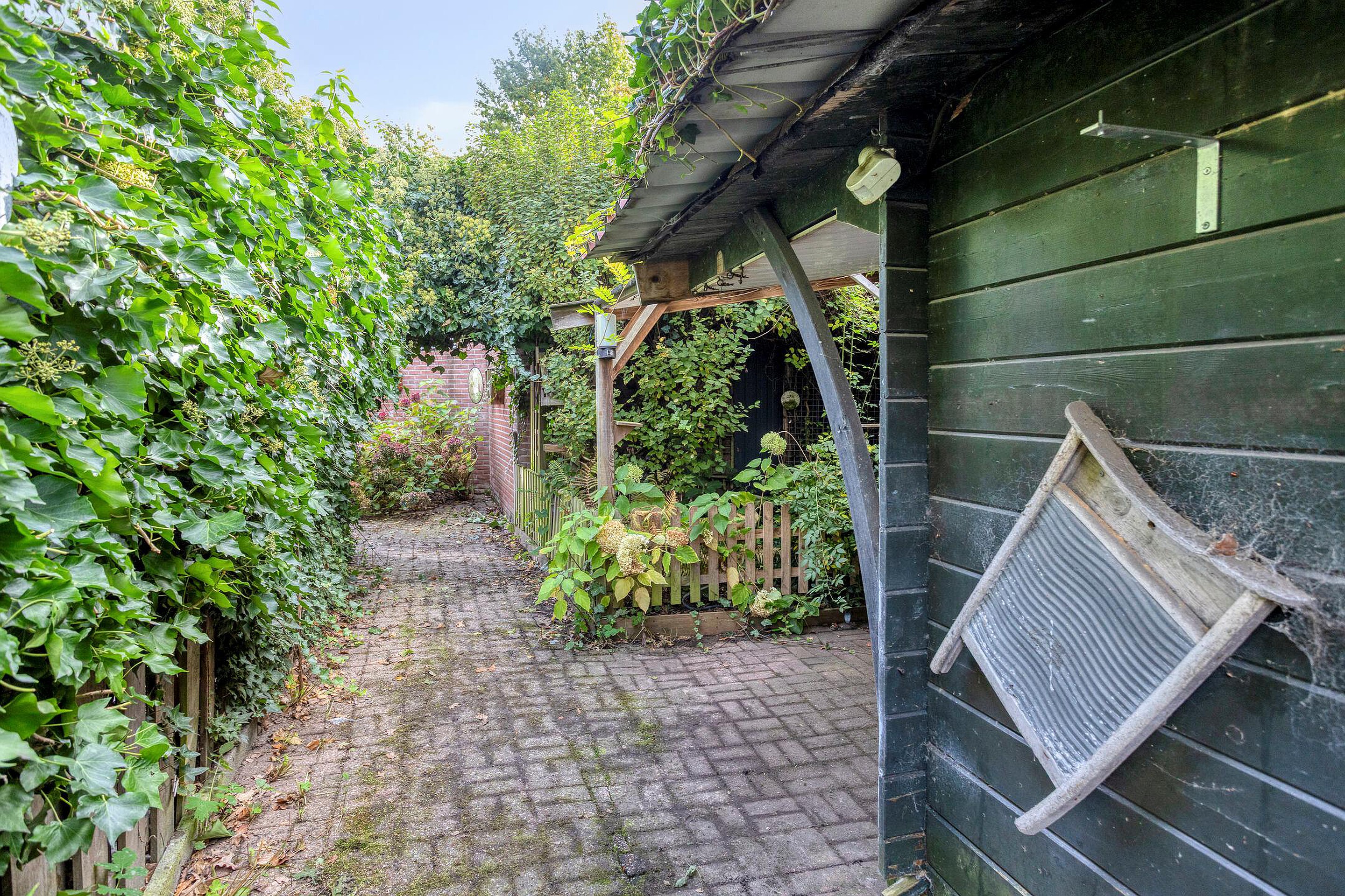 De achtertuin is gesitueerd op het Zuidwesten, is voorzien van een houten berging en biedt mede door het formaat genoeg mogelijkheden. Tevens is de tuin toegankelijk middels de achterom vanuit de Duttingstraat.