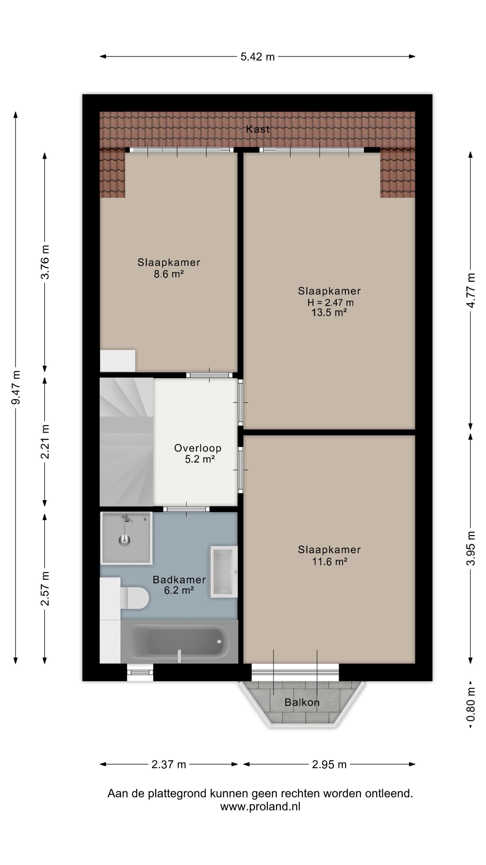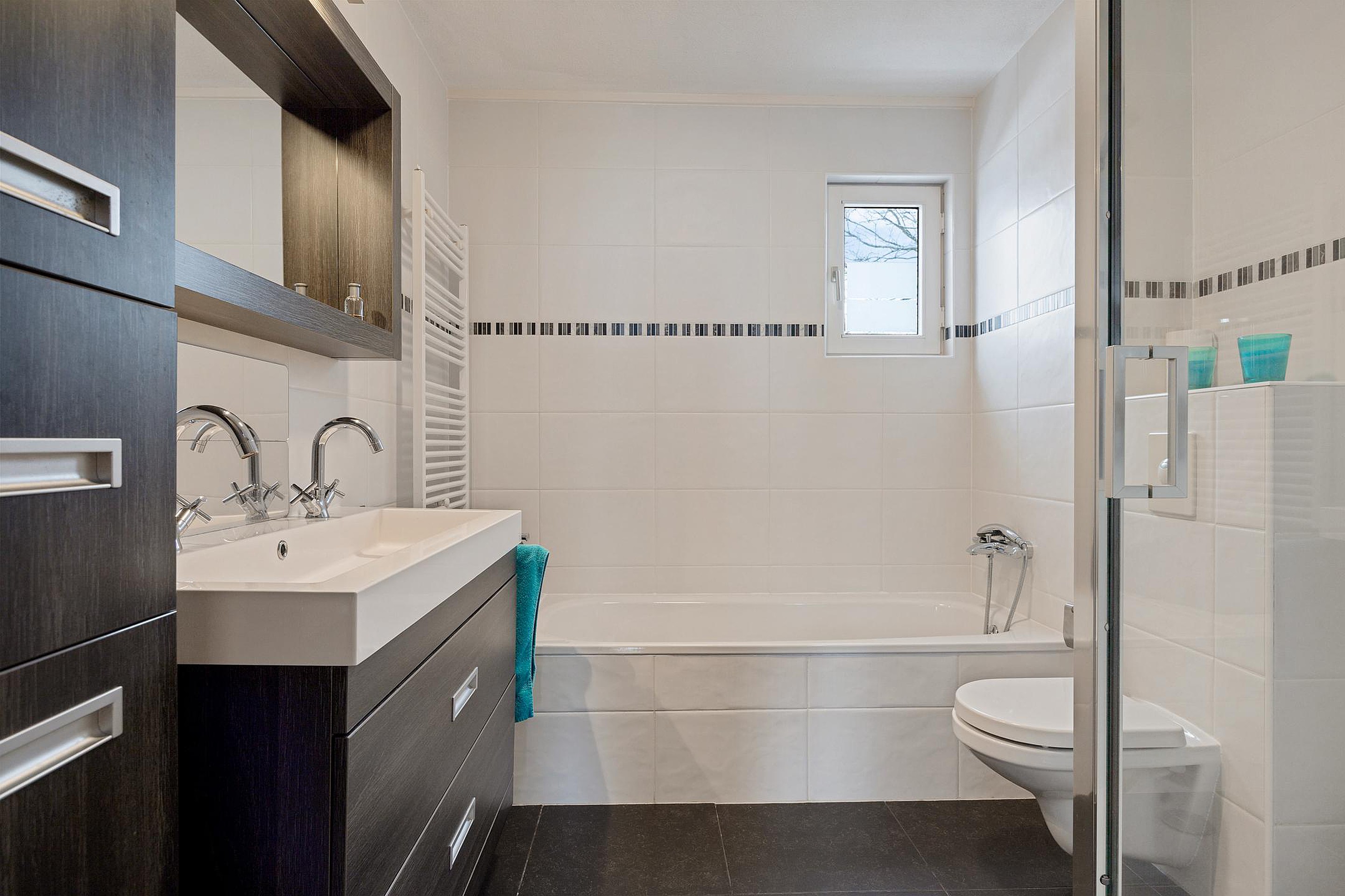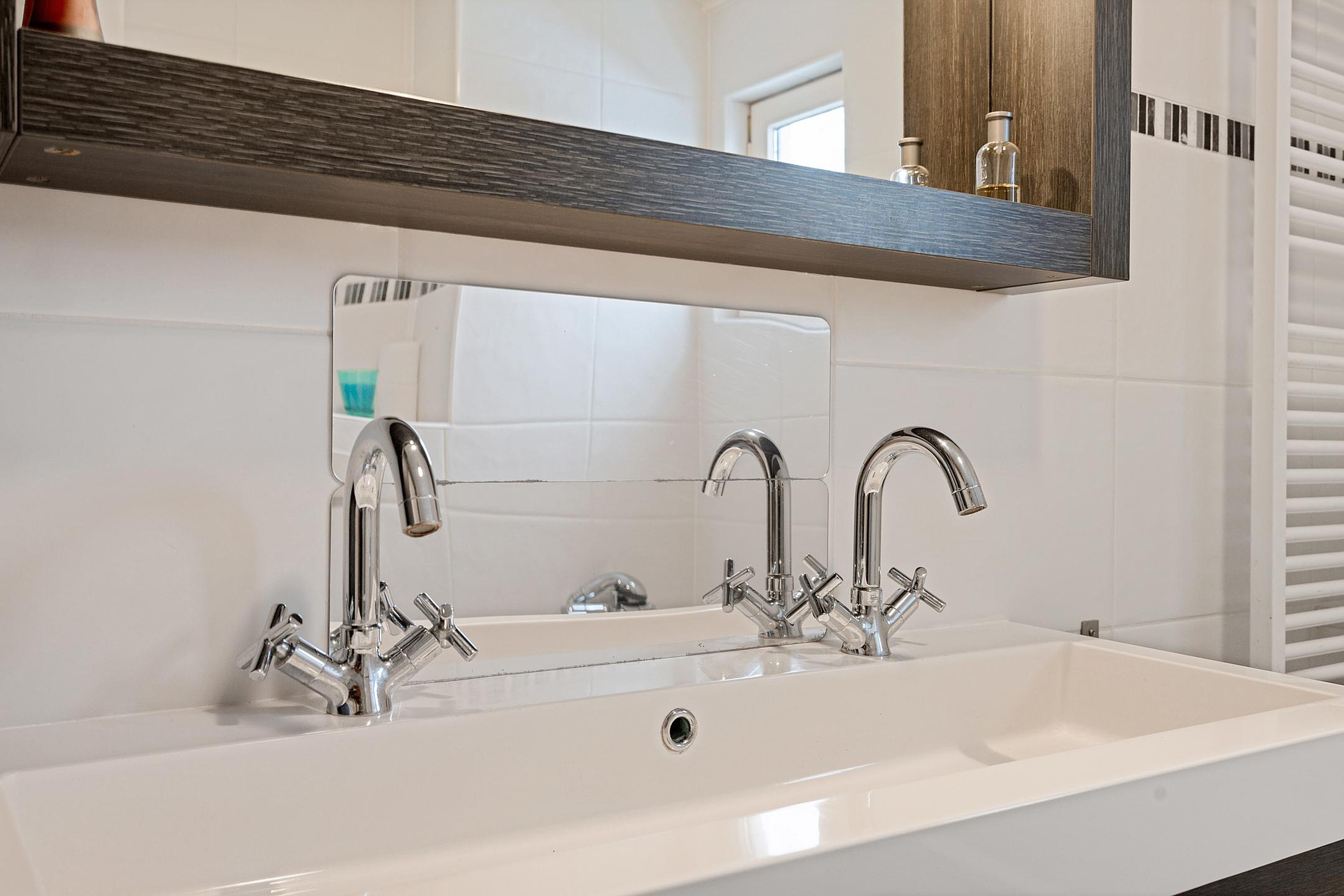 Hier bevinden zich drie goed bemeten slaapkamers, mede dankzij de dakkapel aan de achterzijde. De complete badkamer is uitgerust met elektrische vloerverwarming, een dubbele wastafel met meubel, zelfdragend toilet, ruime douche én ligbad.
