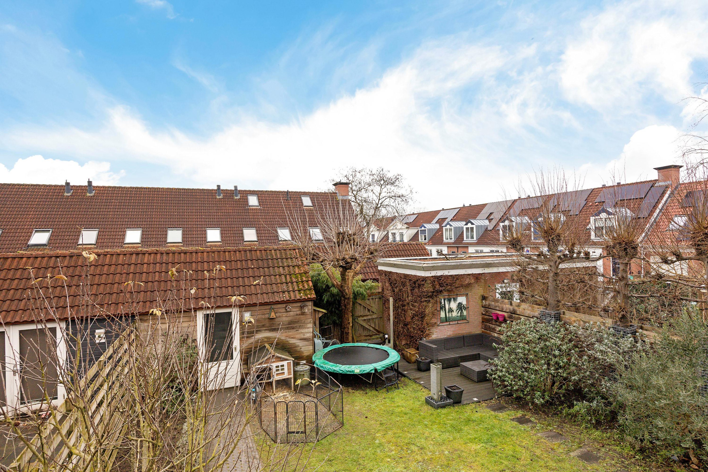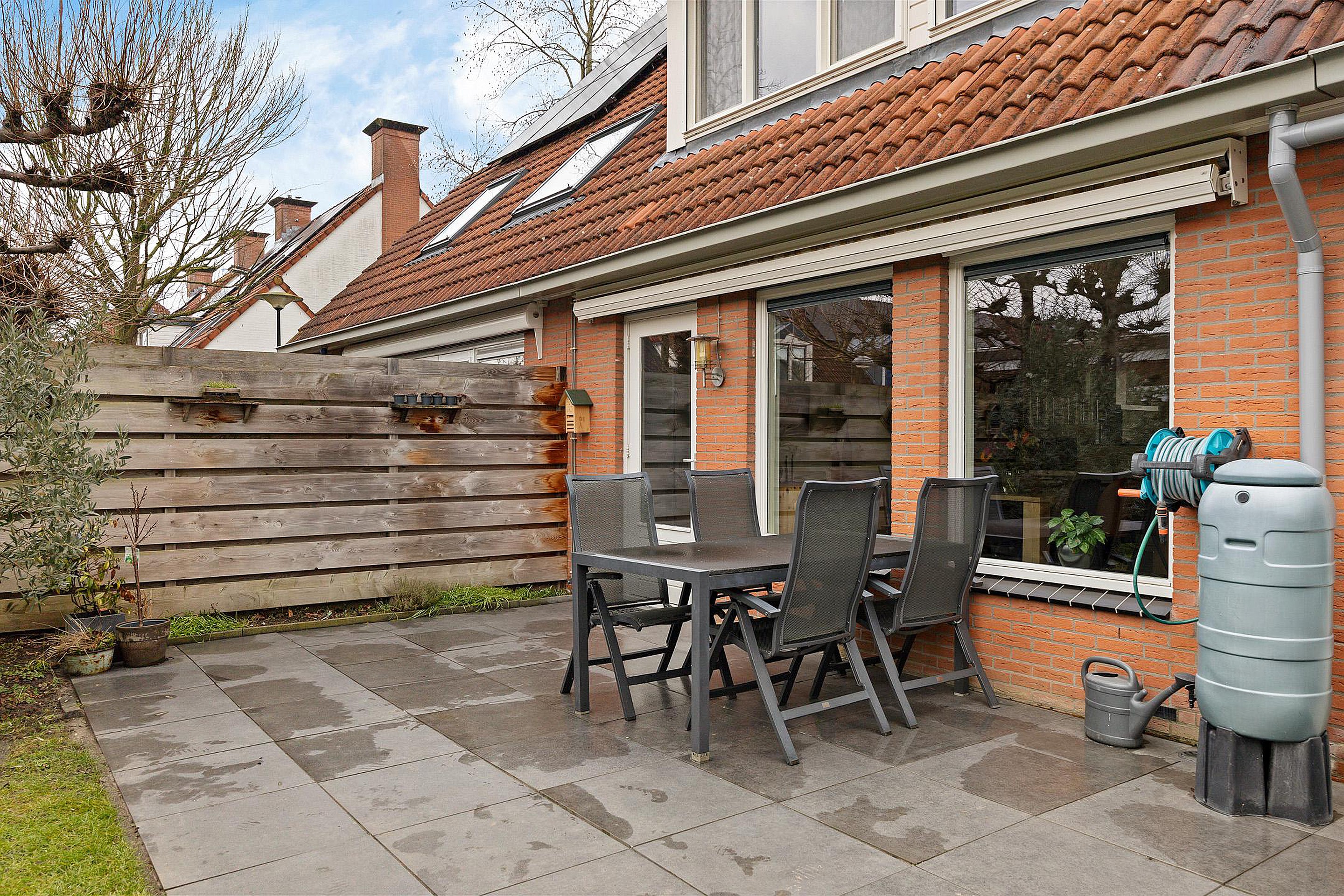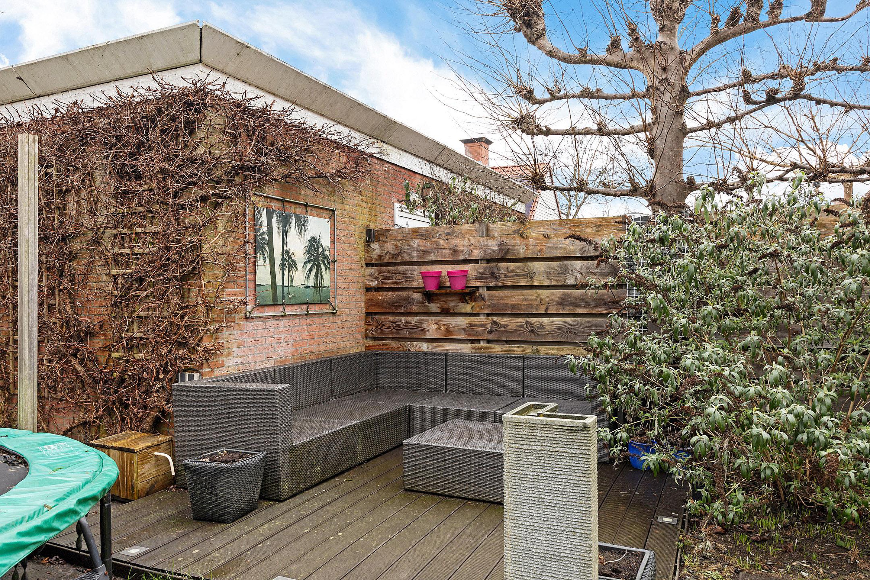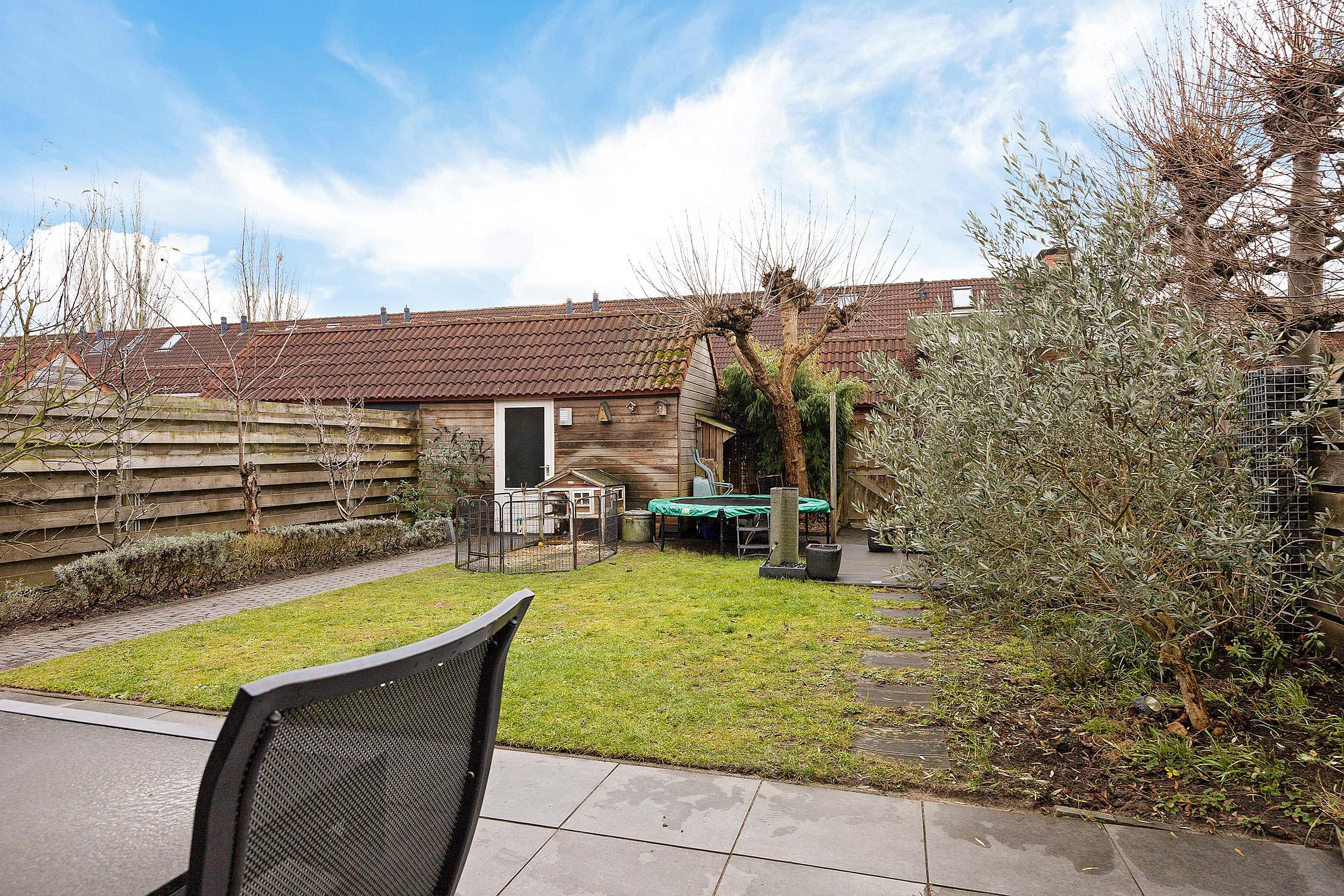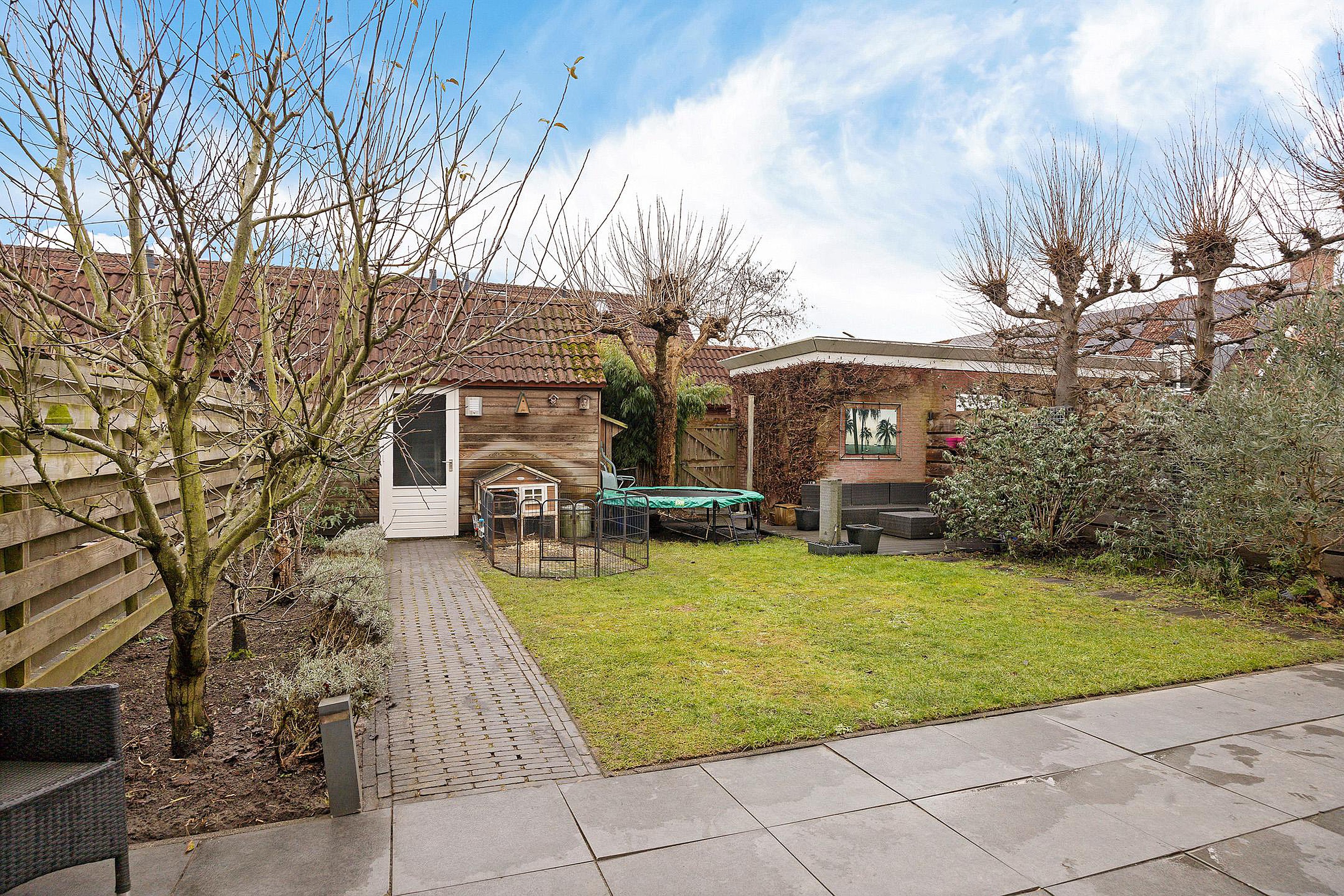 De verzorgde achtertuin ligt gunstig op het zuidwesten, perfect voor middag- en avondzon. Daarnaast beschikt u over een houten berging en een praktische achterom.