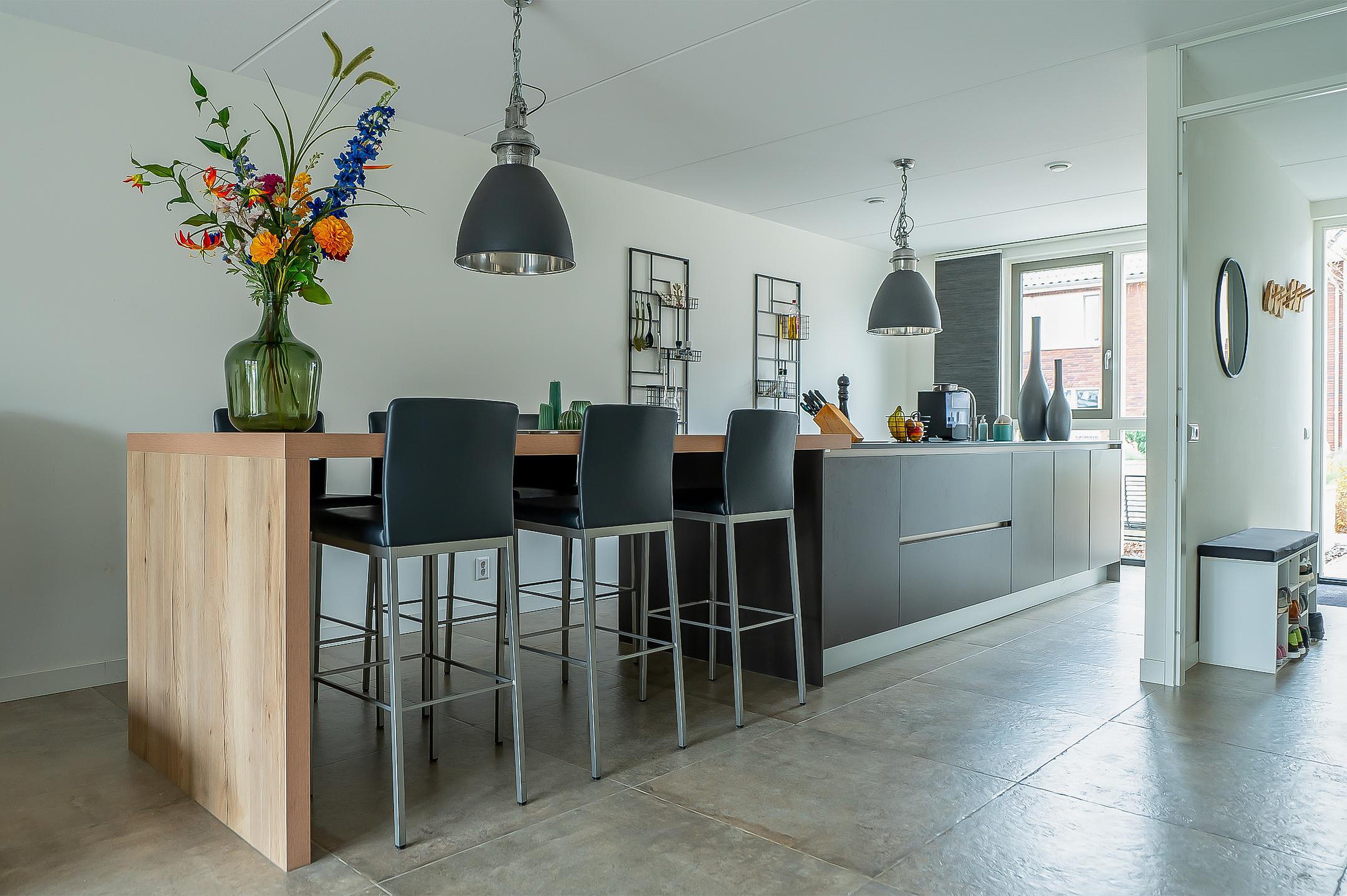 Aan de voorzijde is de prachtige keuken gelegen. Ook hier vallen de zonnestralen heerlijk binnen dankzij de grote raampartijen. Deze moderne greeploze eiland keuken wordt volledig in het interieur opgenomen. Daarbij is er natuurlijk ook aan kookcomfort gedacht; de keuken is geheel uitgerust met Bora/Siemens inbouwapparatuur (inductie kookplaat met afzuiging, vaatwasser, oven met magnetron en twee koelkasten en een vriezer). Zie jij jezelf hier al een uitgebreide maaltijd bereiden, om vervolgens urenlang te tafelen met familie en vrienden?