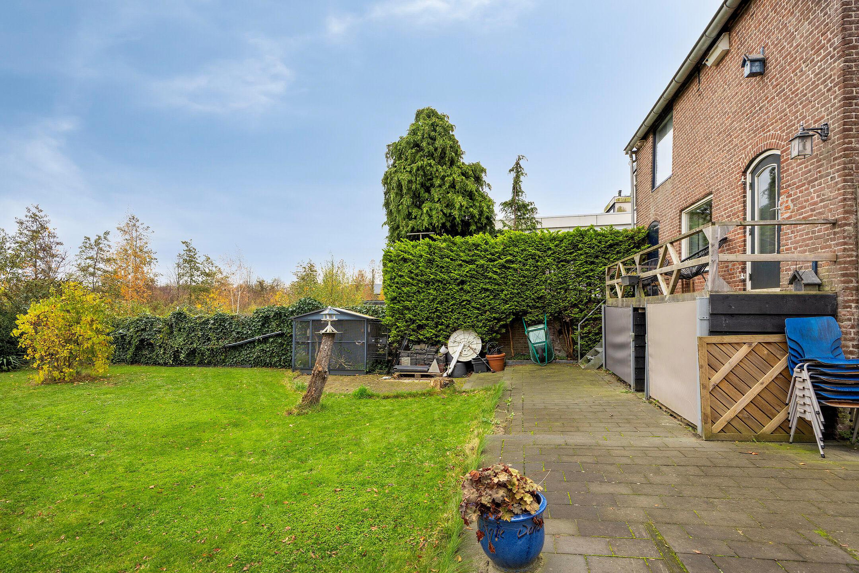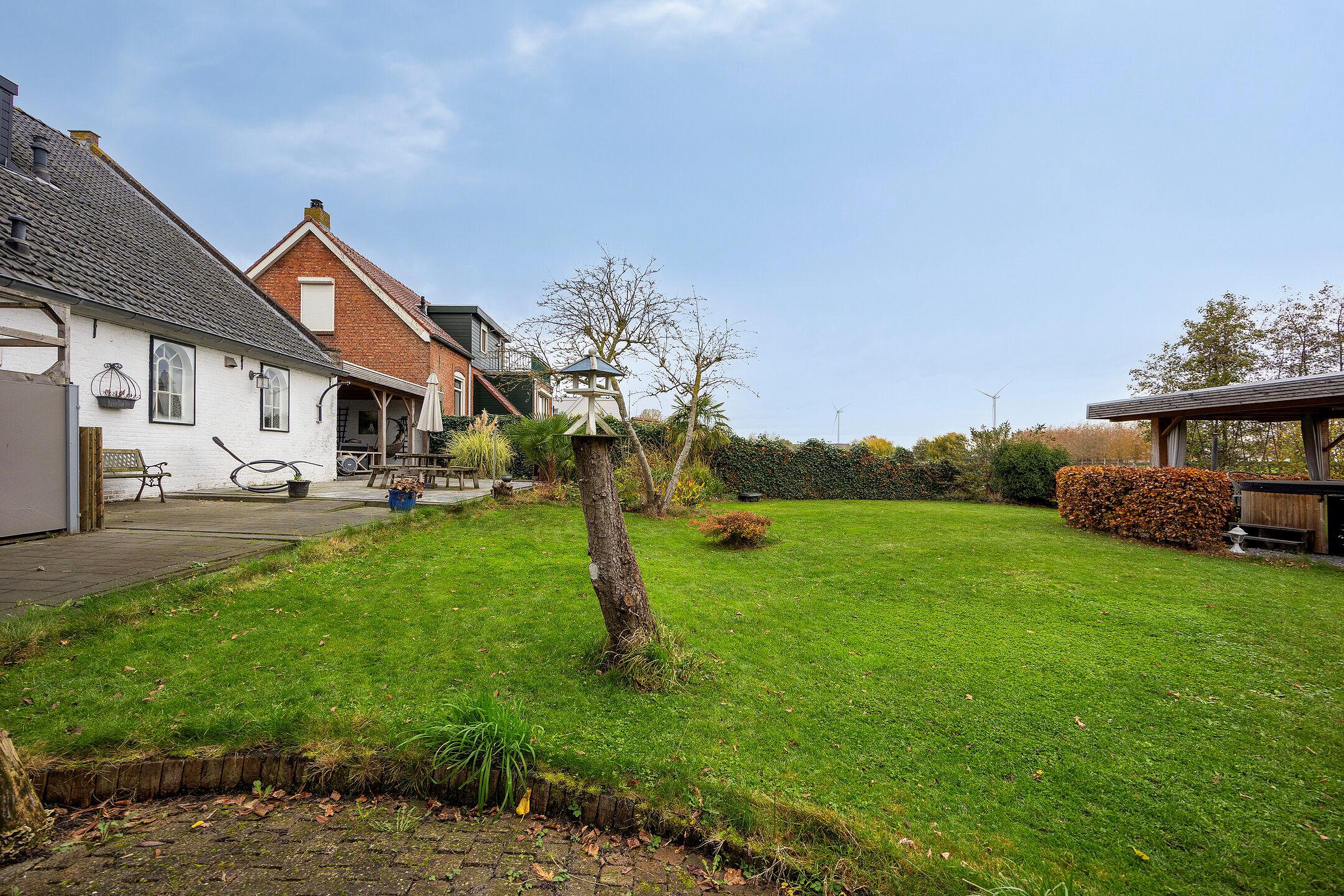 Achter het huis ligt een verrassend grote en sfeervolle tuin, waar je op meerdere plekken heerlijk kunt genieten van het buitenleven. Direct aan het huis is een terras, perfect voor een kop koffie in de ochtendzon. Via de overkapping is er een poort naar de straatzijde, wat de tuin ook praktisch toegankelijk maakt.