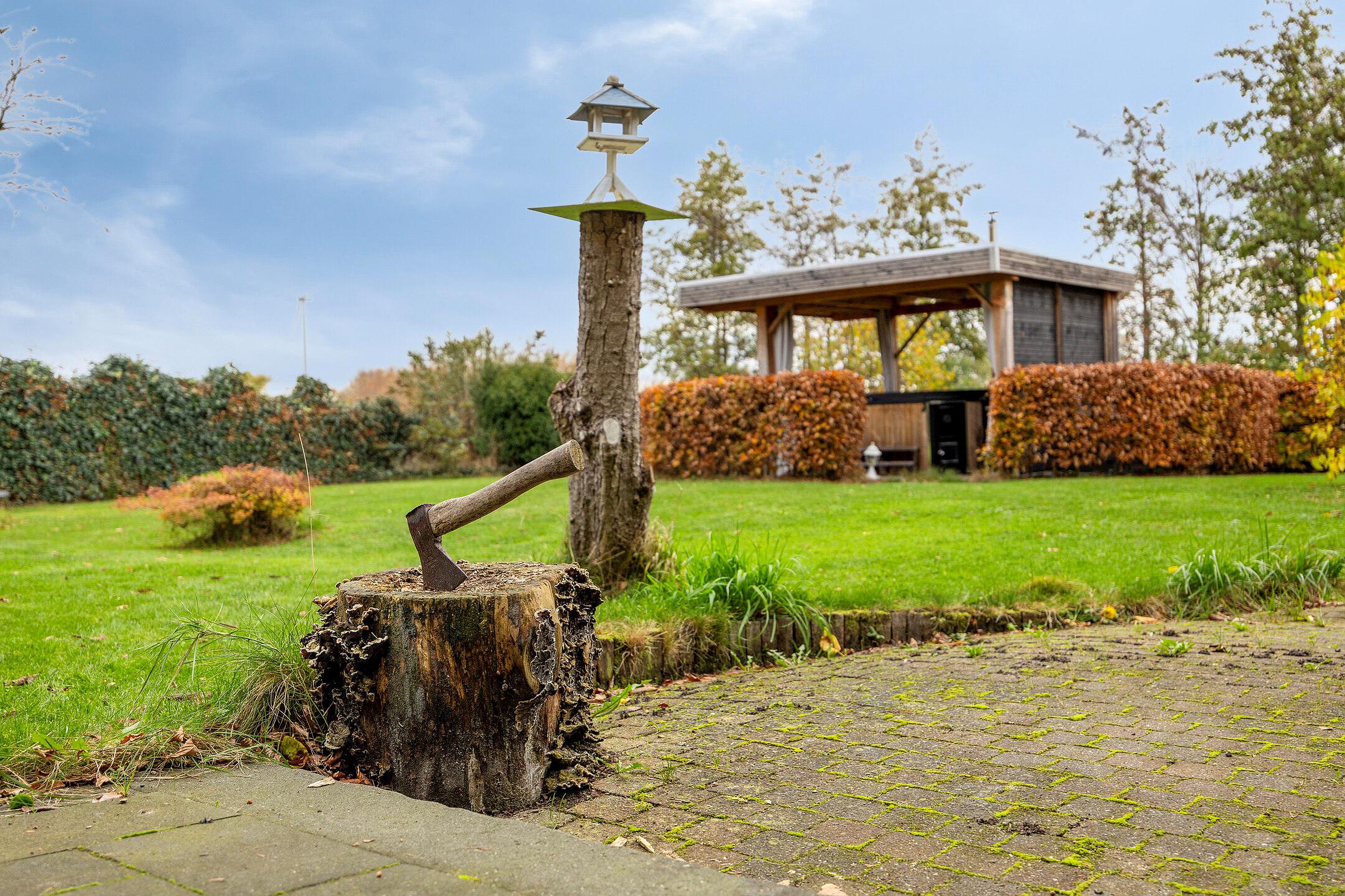 Verderop in de tuin is een verzorgd gazon, omzoomd door mooie beukhaagjes, kleurrijke borders en enkele kleine palmbomen, die een vleugje vakantiegevoel brengen. Een kleine vijver met fontein zorgt voor extra sfeer en een ontspannen geluid op de achtergrond. Overigens blijft de robot grasmaaier achter, dus dat scheelt weer een uurtje maaien per week!