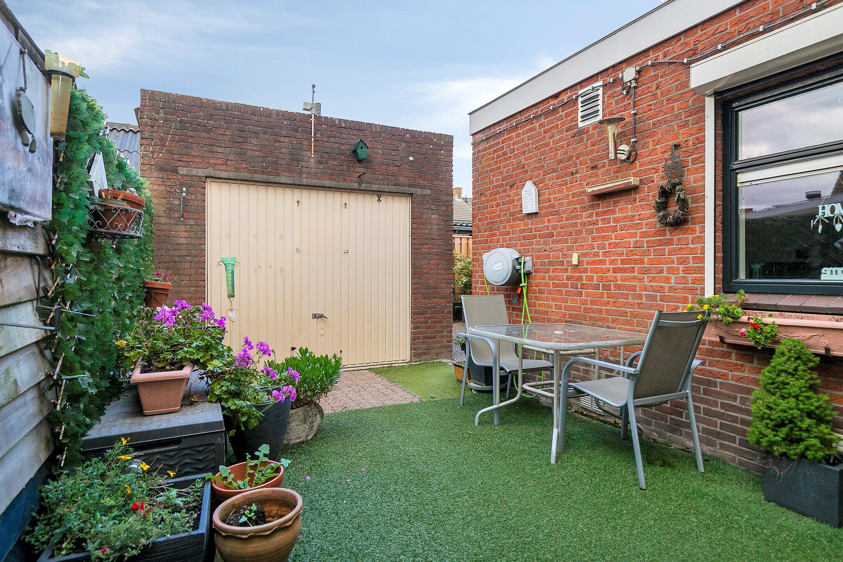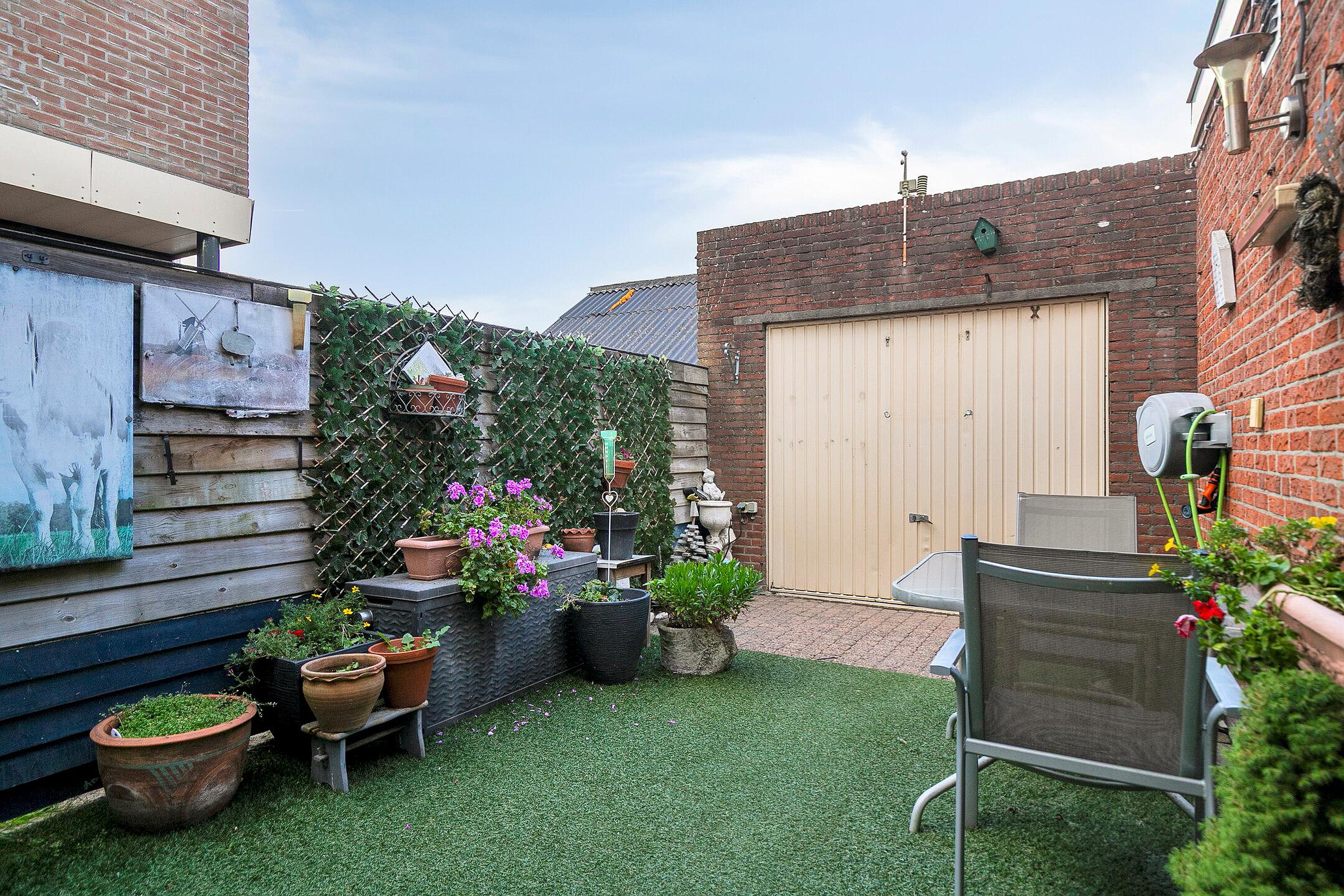 Halverwege de tuin staat de ruime garage van 34 m2: ideaal voor hobbyisten, als opslag of zelfs als werkruimte.