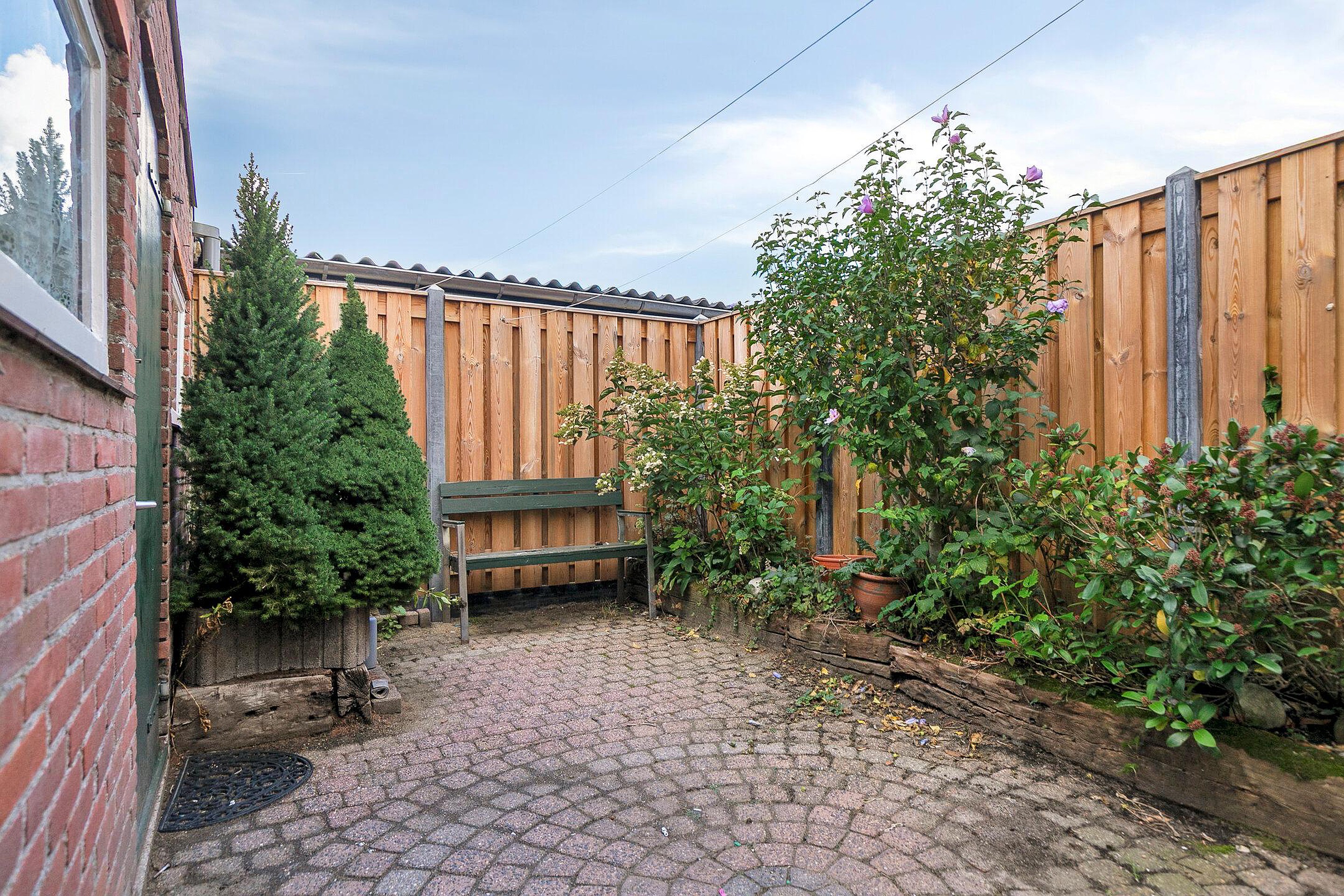 Vanuit de bijkeuken loop je zo de achtertuin in.