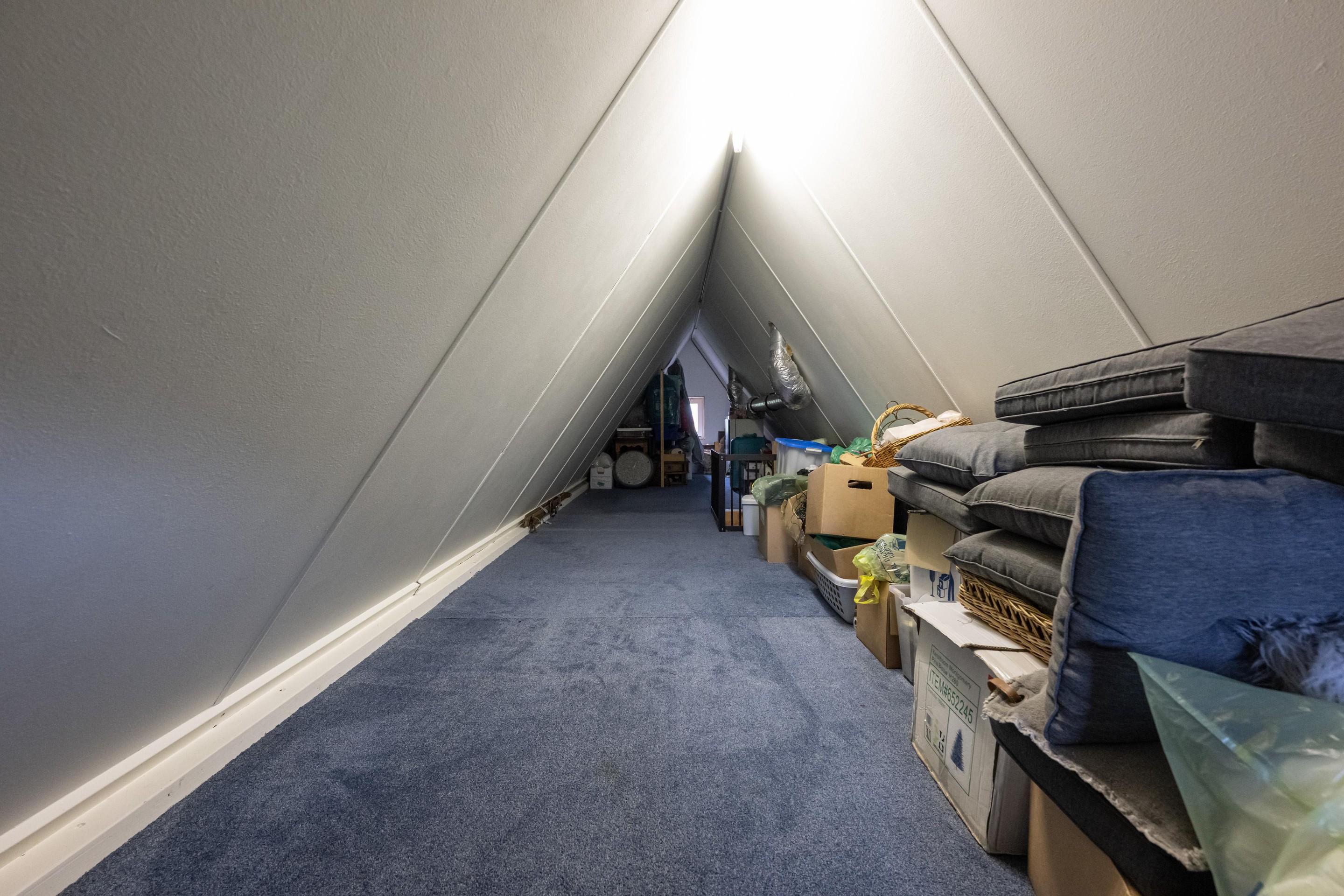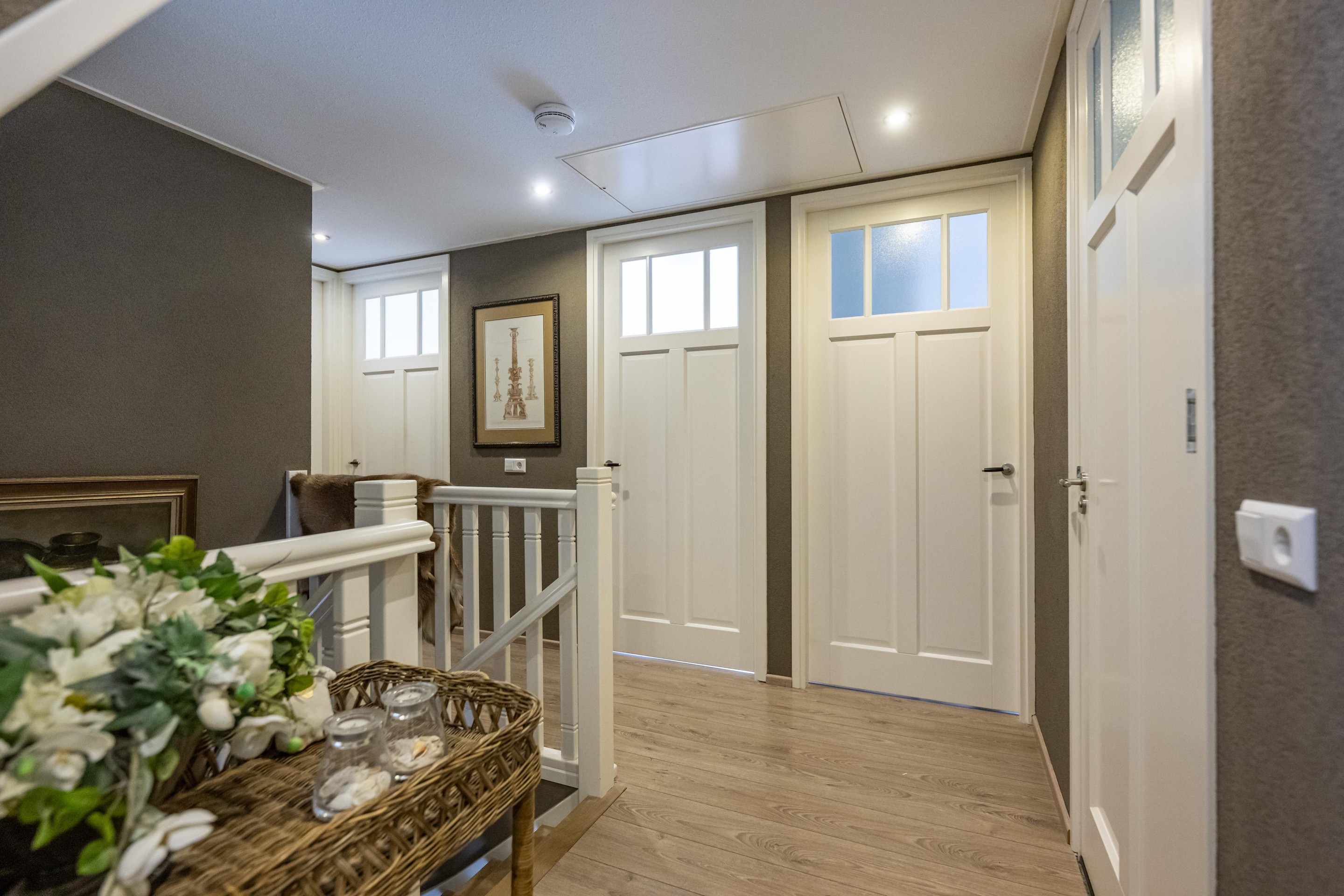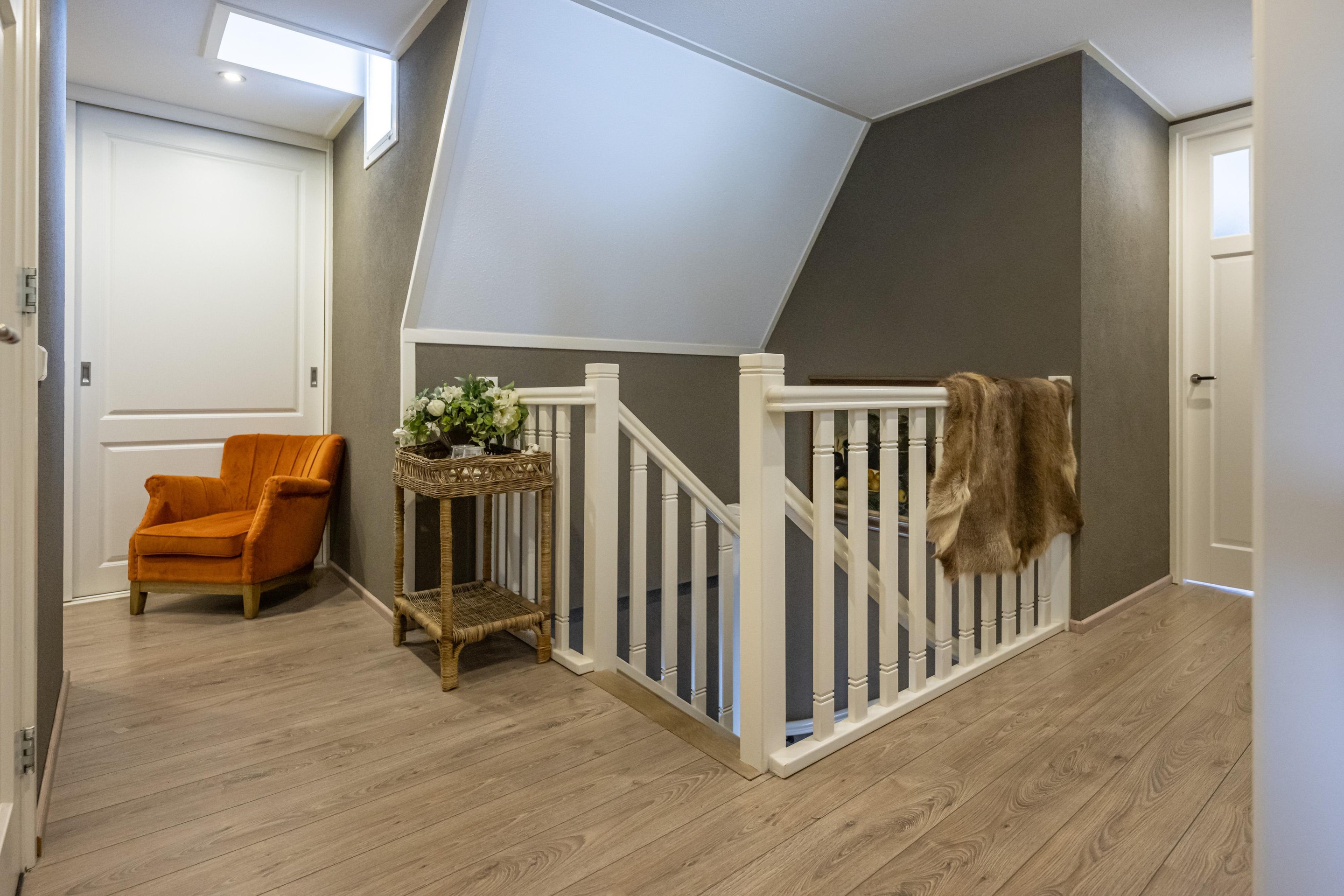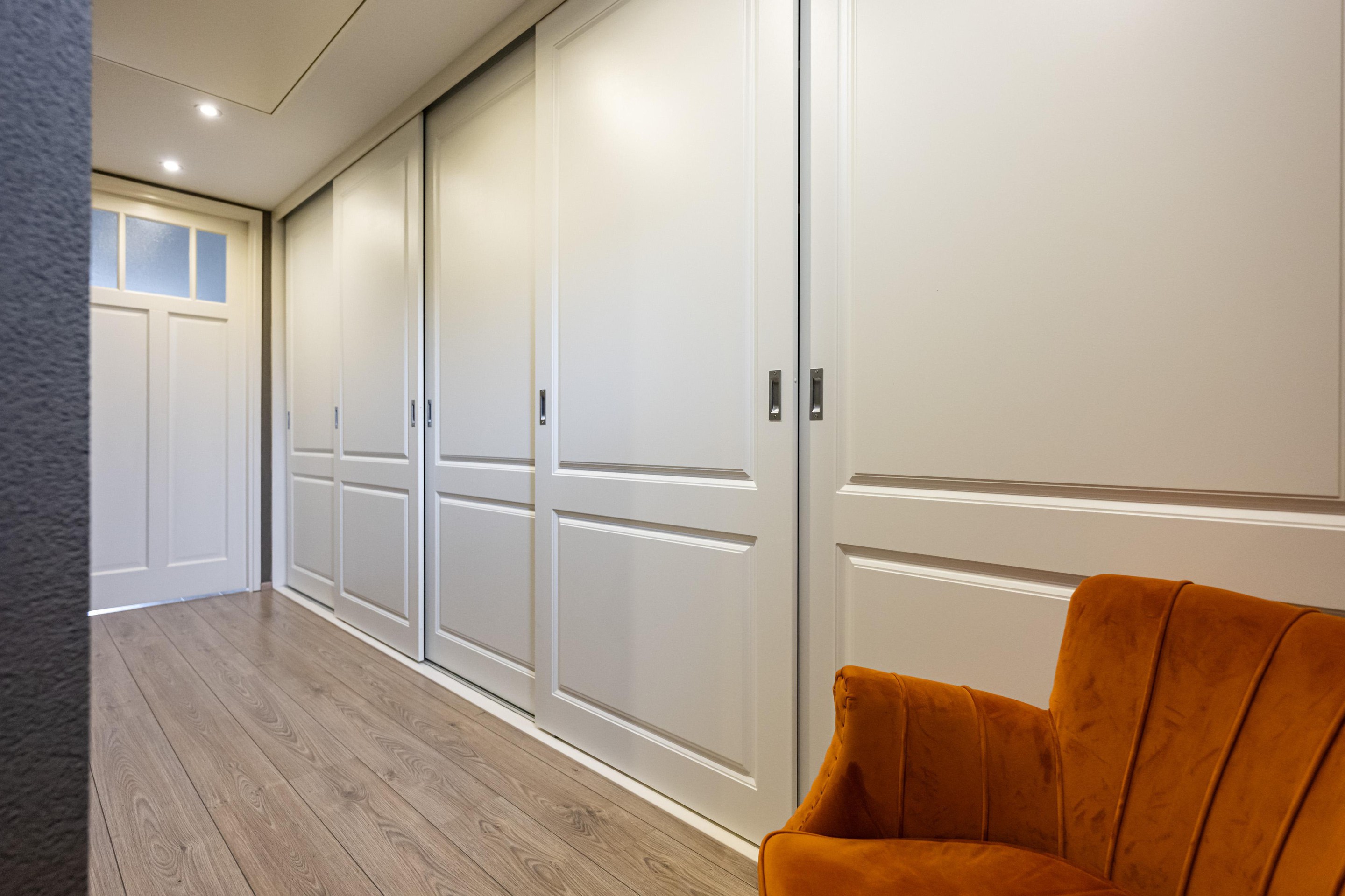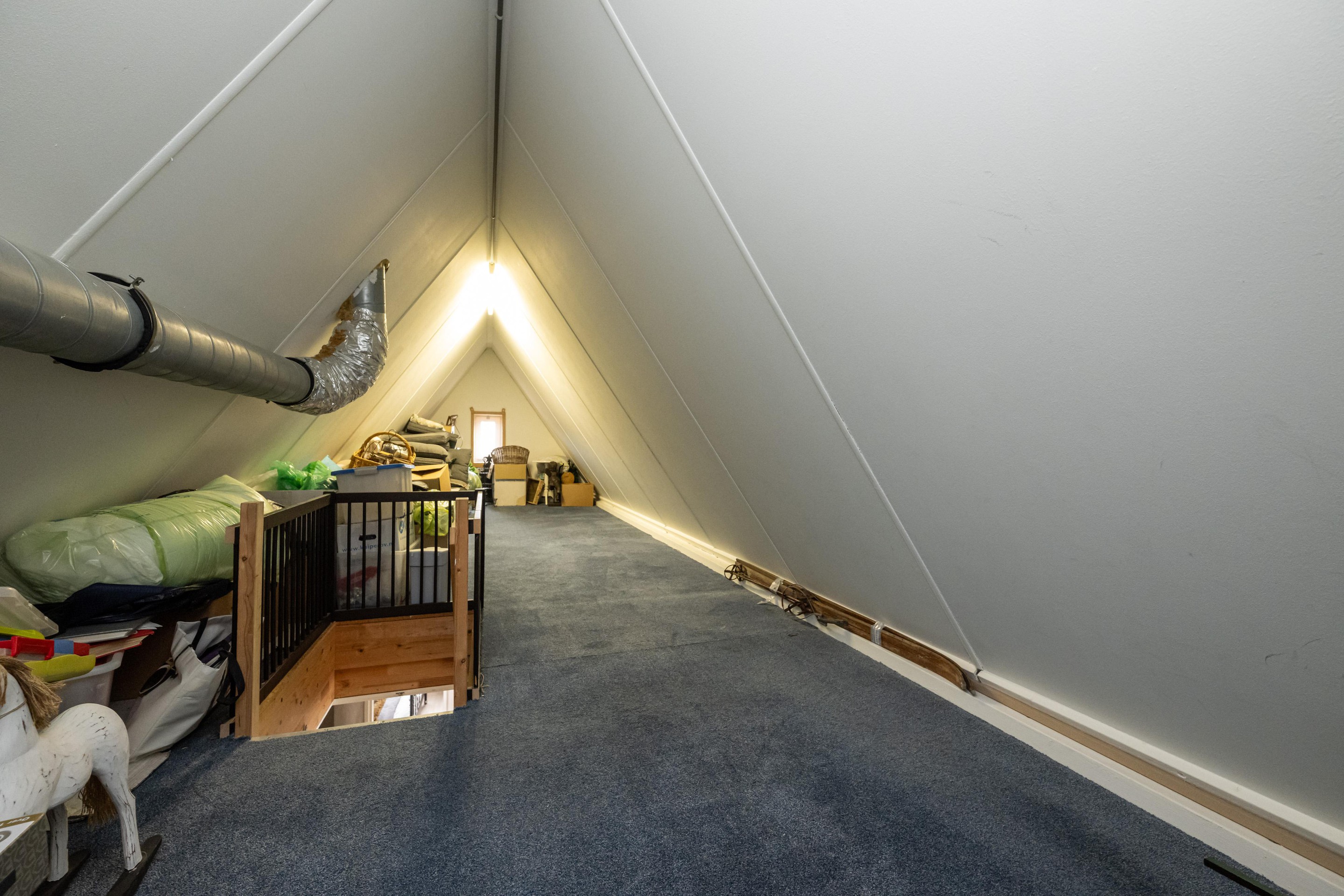 Laminaatvloer, royale kastenwand met vijf schuifdeuren en vlizotrap naar ruime bergzolder 2.