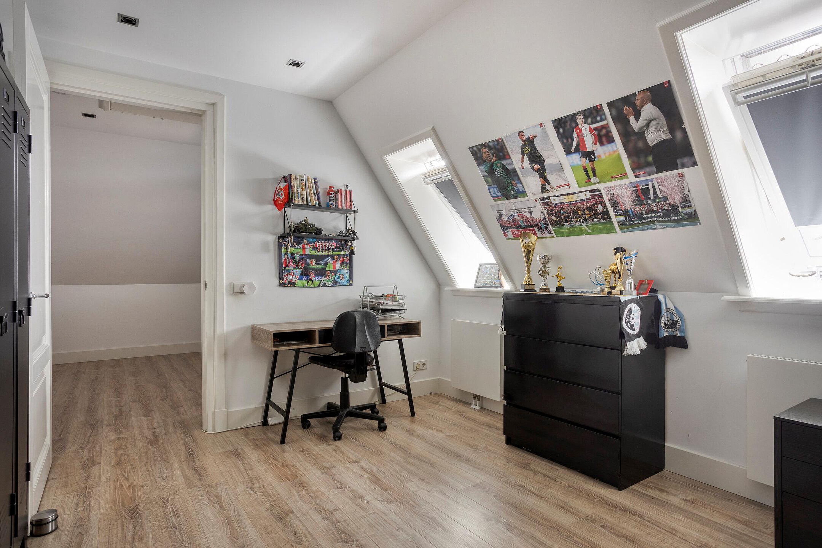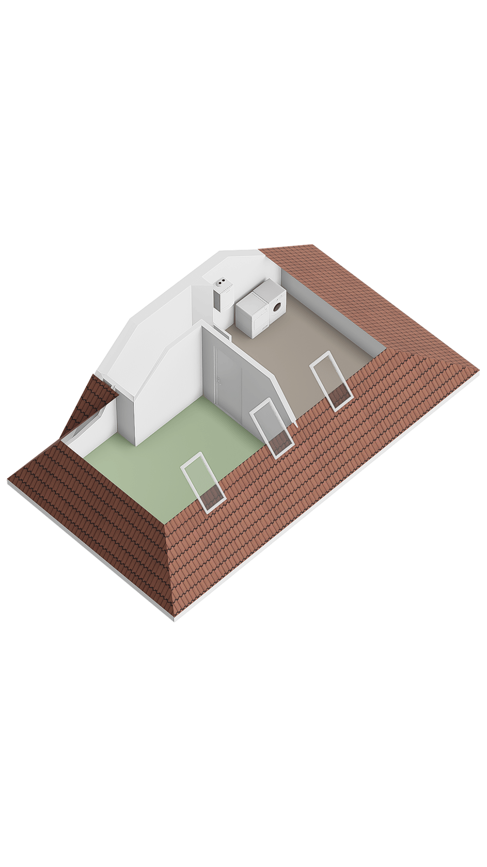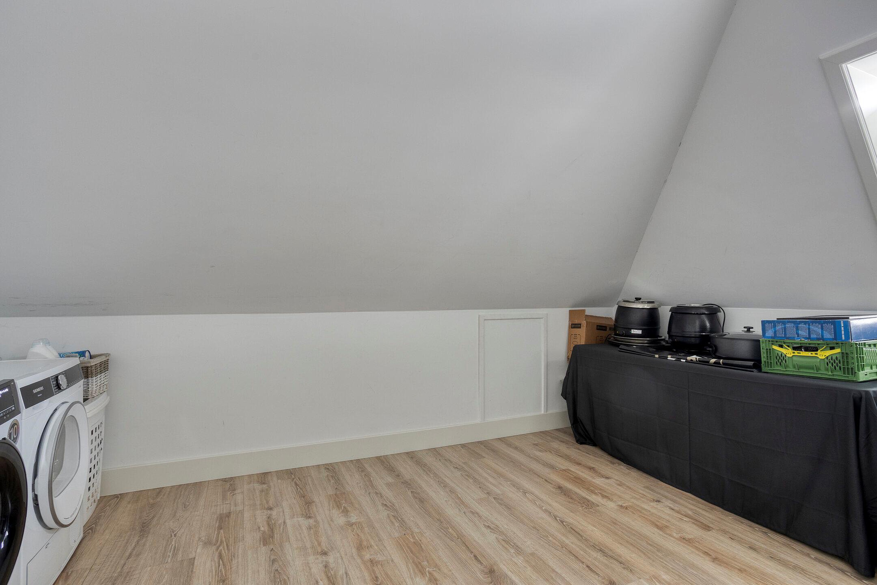 De zolderverdieping gebruik je als derde slaapkamer, en door een muur gescheiden kan je hier ook een werkruimte of hobbykamer maken. Op de overloop vind je de aansluiting voor de wasmachine en droger en extra bergruimte op een bergzolder.