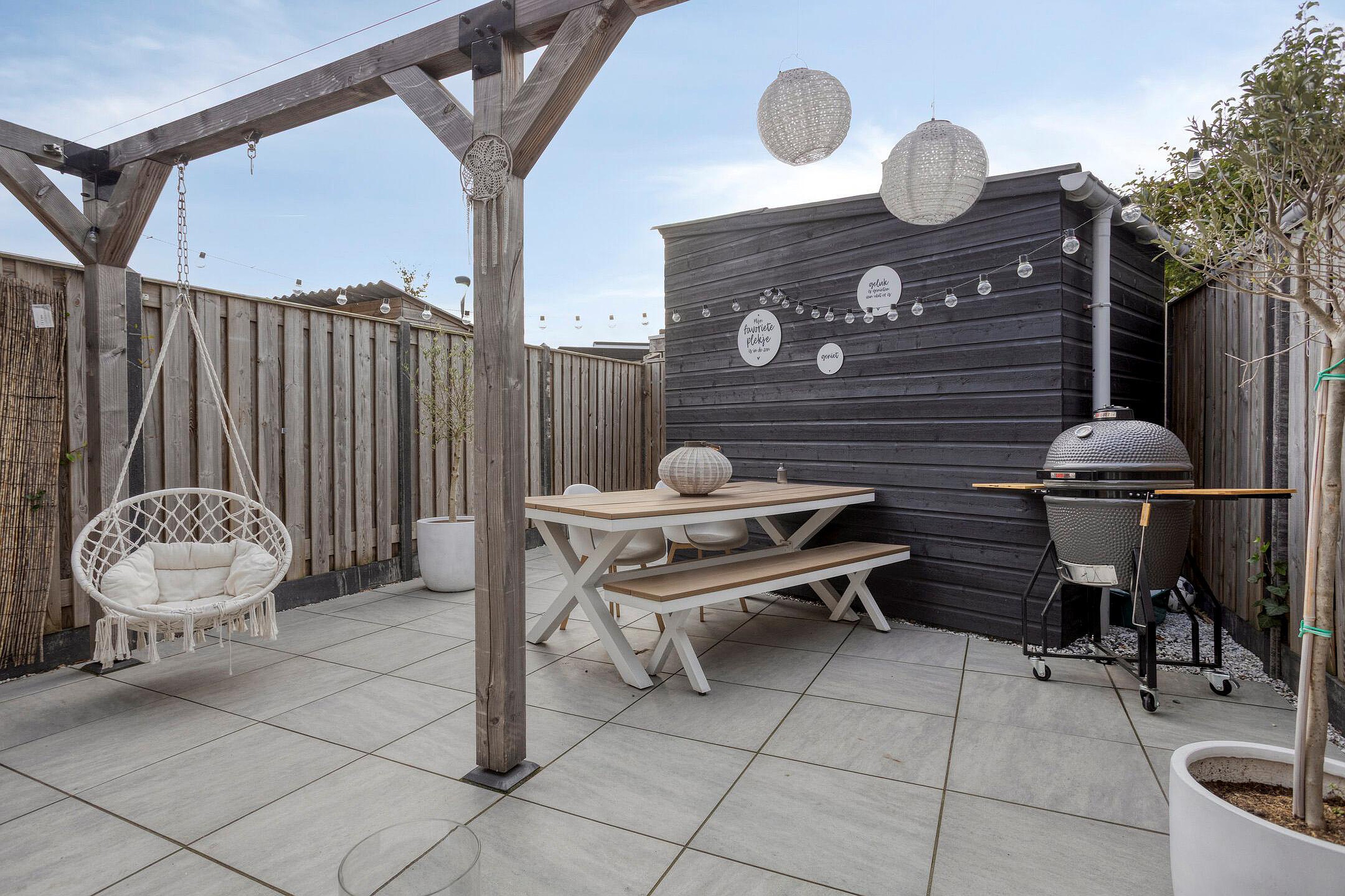 De achtertuin is modern, licht en onderhoudsvriendelijk en beschikt over een berging. Een heerlijke plek waar je direct kunt genieten van de zon en gezellige avonden met vrienden of familie kunt hebben.