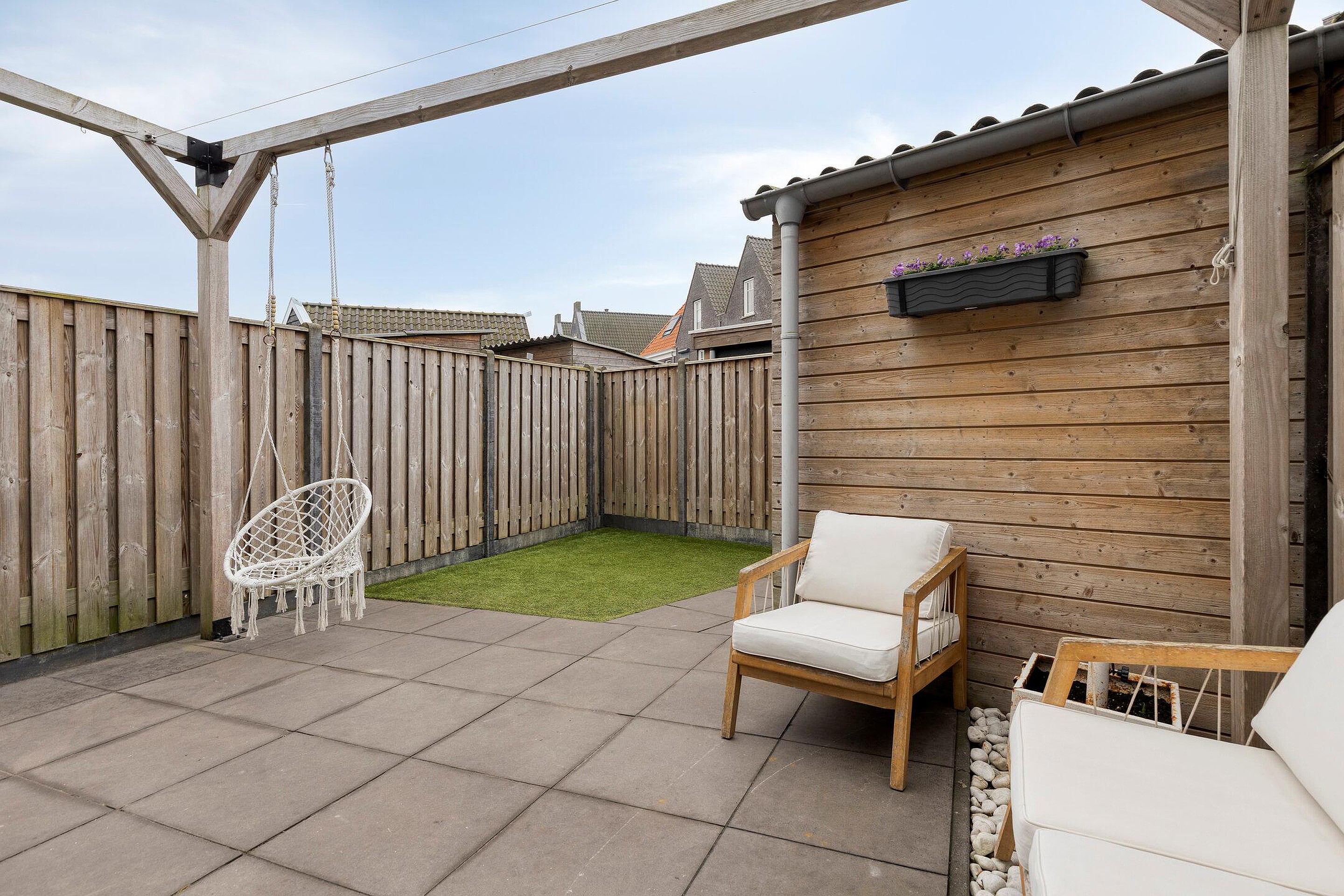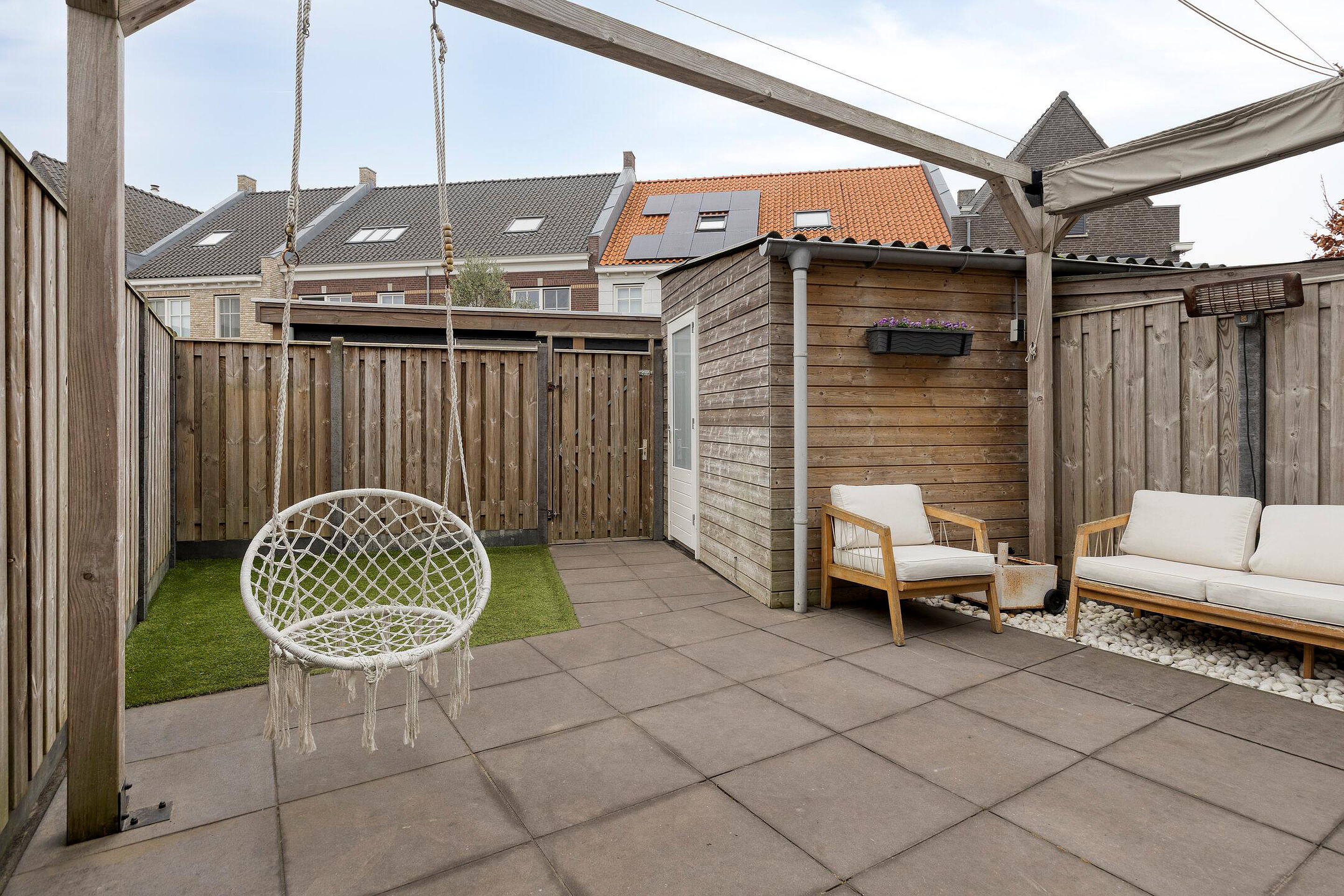 Tuin De achtertuin is onderhoudsvriendelijk aangelegd en biedt een fijne plek om buiten te zitten, te spelen of te ontspannen. Achterin staat een praktische berging voor fietsen en tuinspullen.
