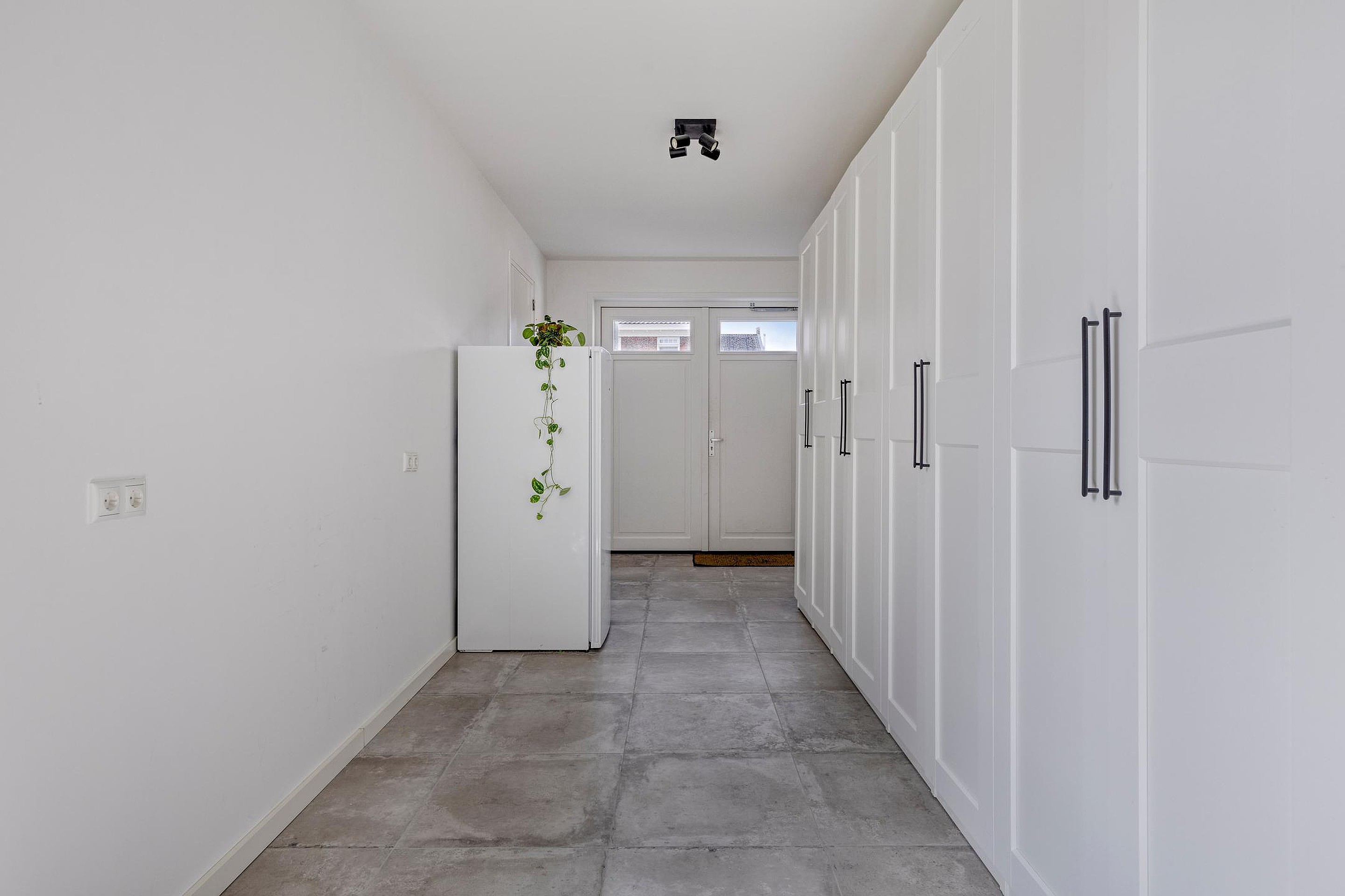 Begane grond Je komt binnen in de ruime hal met toilet, trapopgang en garderoberuimte. De open keuken aan de voorzijde is voorzien van diverse inbouwapparatuur en kijkt uit op de rustige straat. De royale woonkamer loopt door tot de achterzijde en biedt toegang tot de tuin en de overkapping – een heerlijke lichte ruimte die het woongenot vergroot.