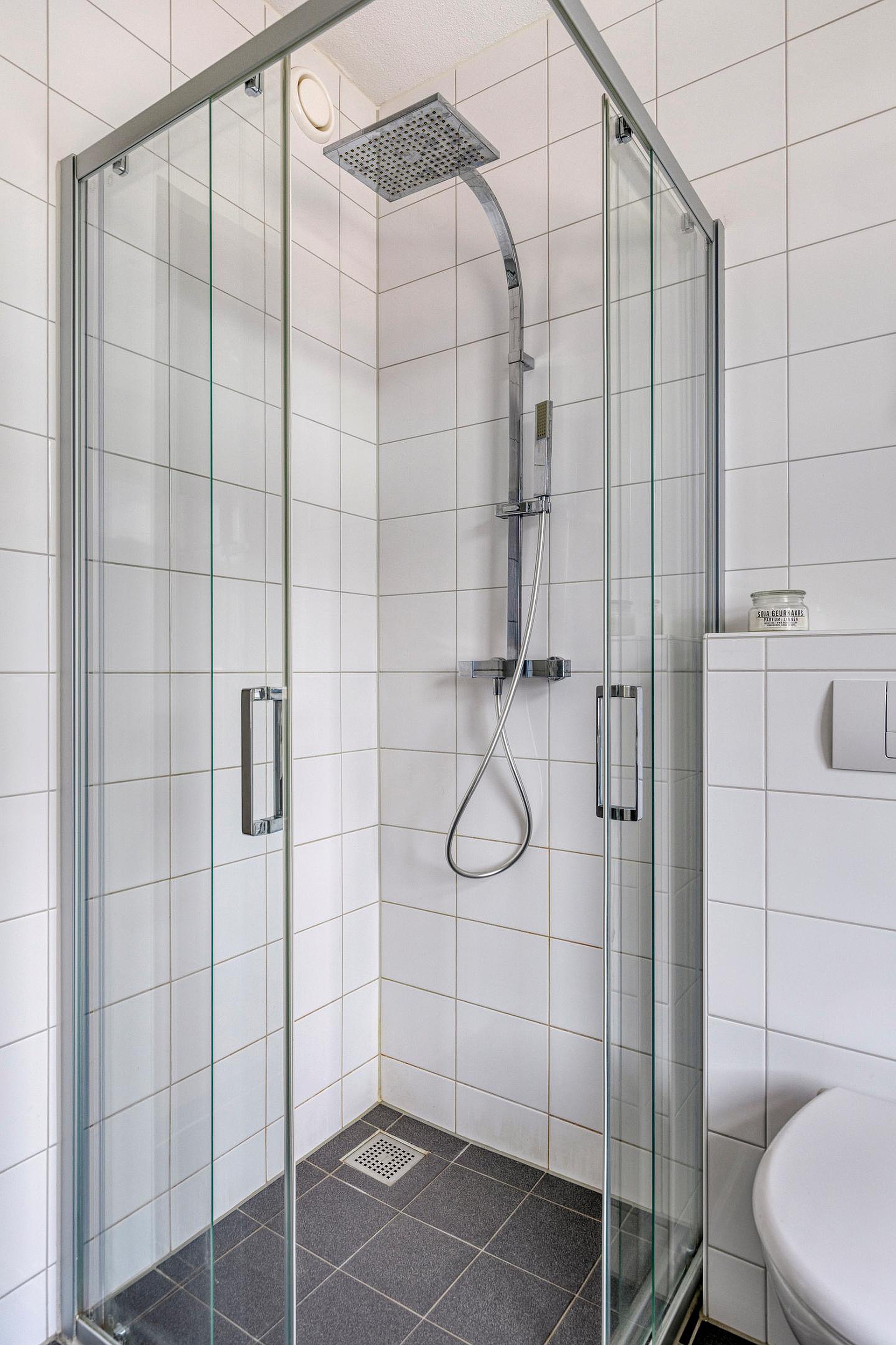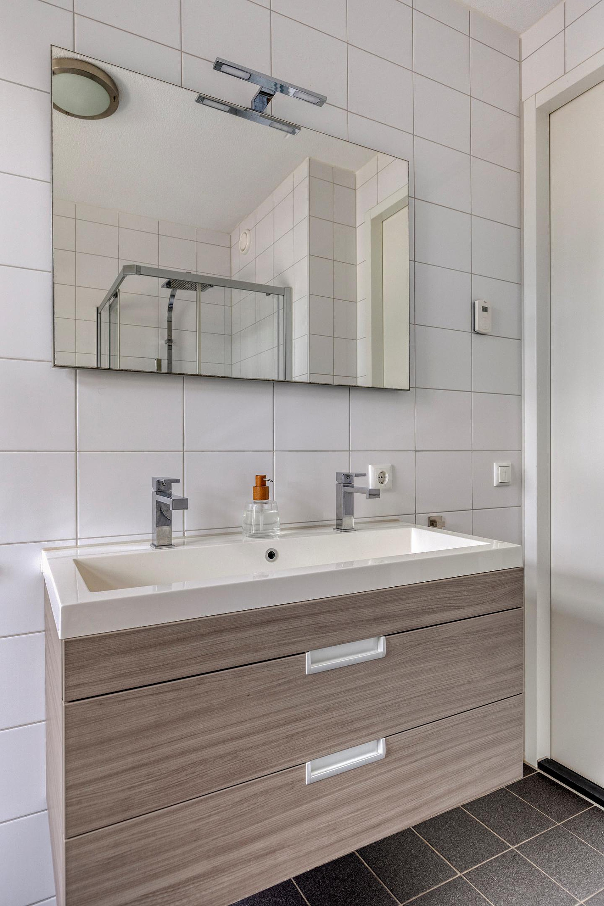 Eerste verdieping De eerste verdieping beschikt over drie ruime slaapkamers en een moderne badkamer met ligbad, douche, tweede toilet en wastafel. Dankzij de airco is ook in de zomer een aangenaam binnenklimaat gegarandeerd.
