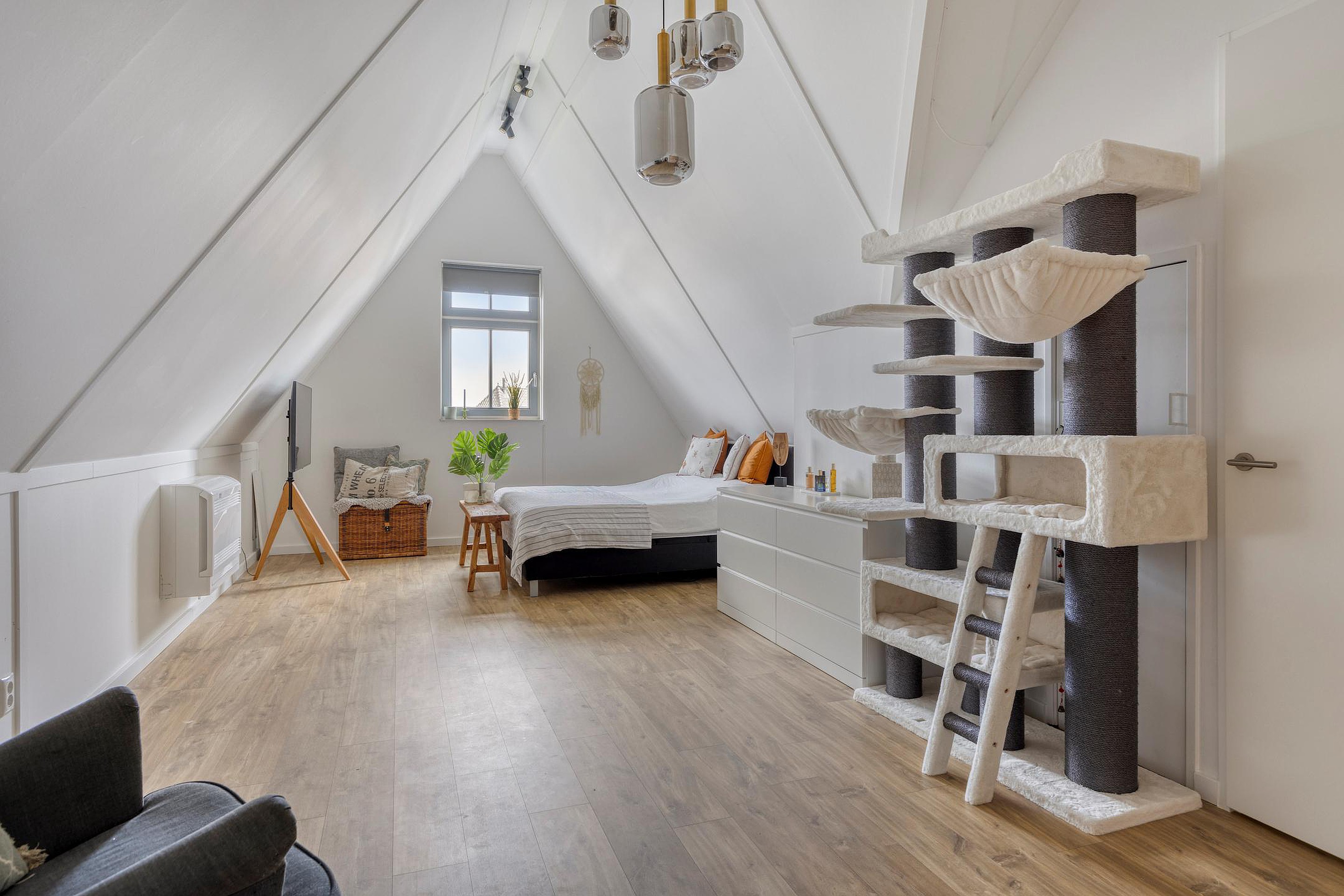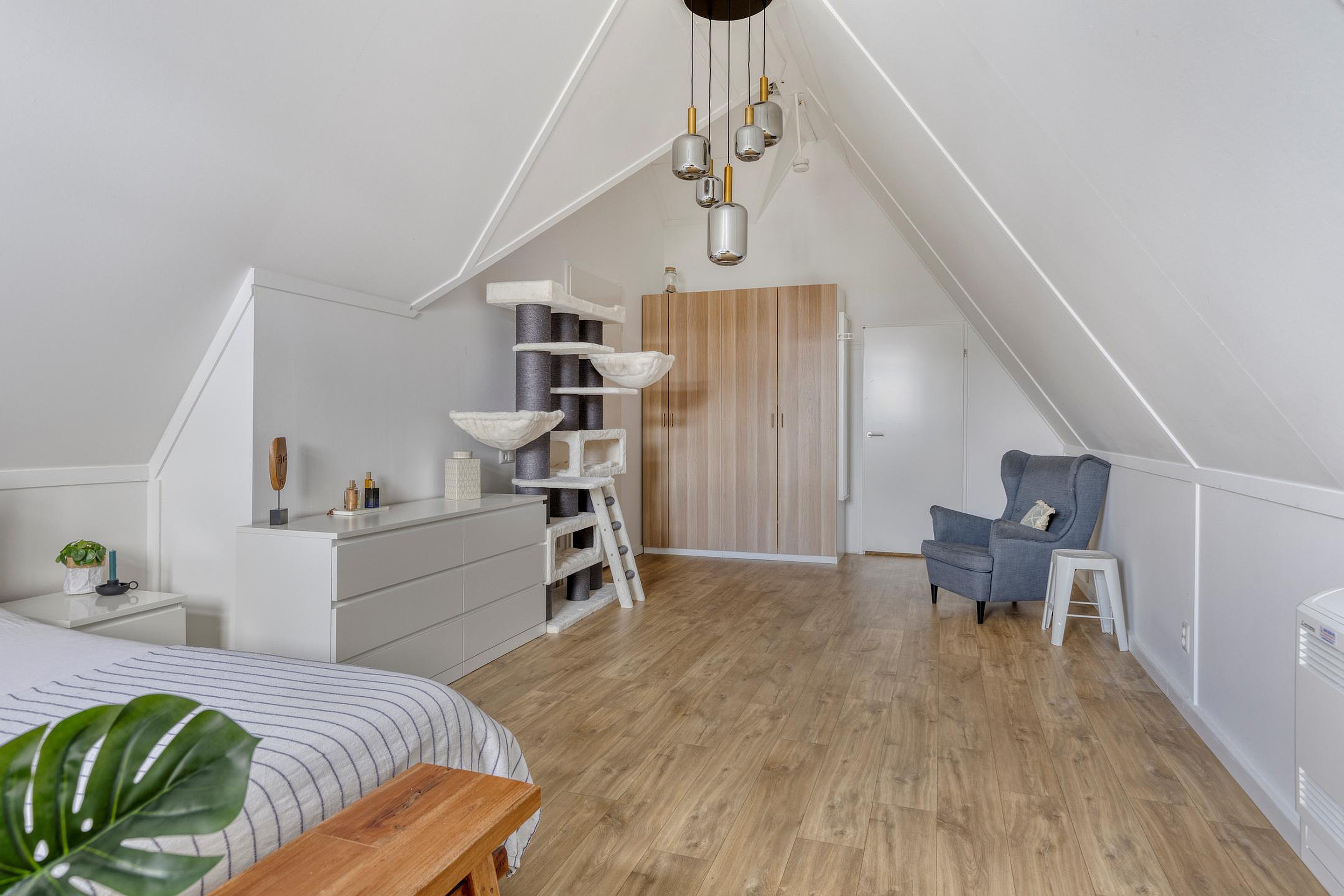Tweede verdieping De zolderverdieping is verrassend ruim. Hier bevinden zich nog eens twee grote kamers, ideaal als slaapkamer, werkkamer, speelkamer of voor een groot gezin. Daarnaast is er extra bergruimte aanwezig achter de knieschotten en in de ingebouwde kasten. Ook op deze verdieping is airco aanwezig.