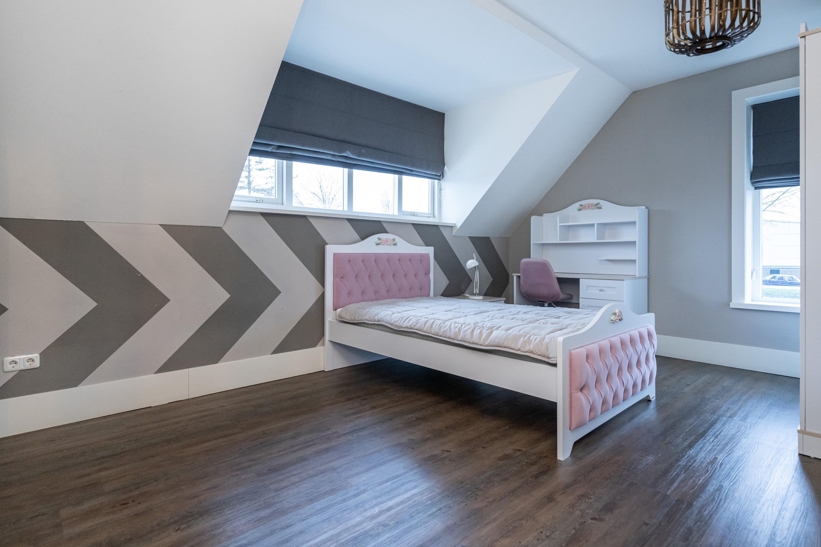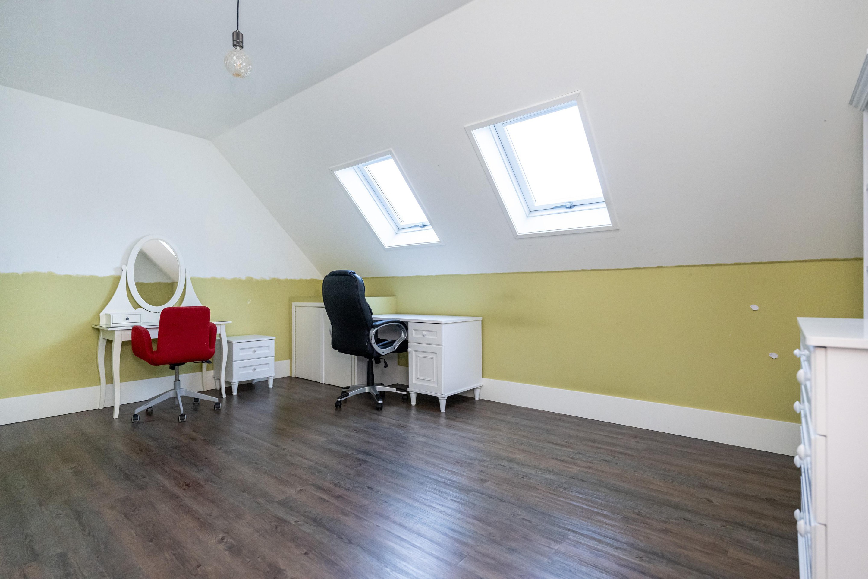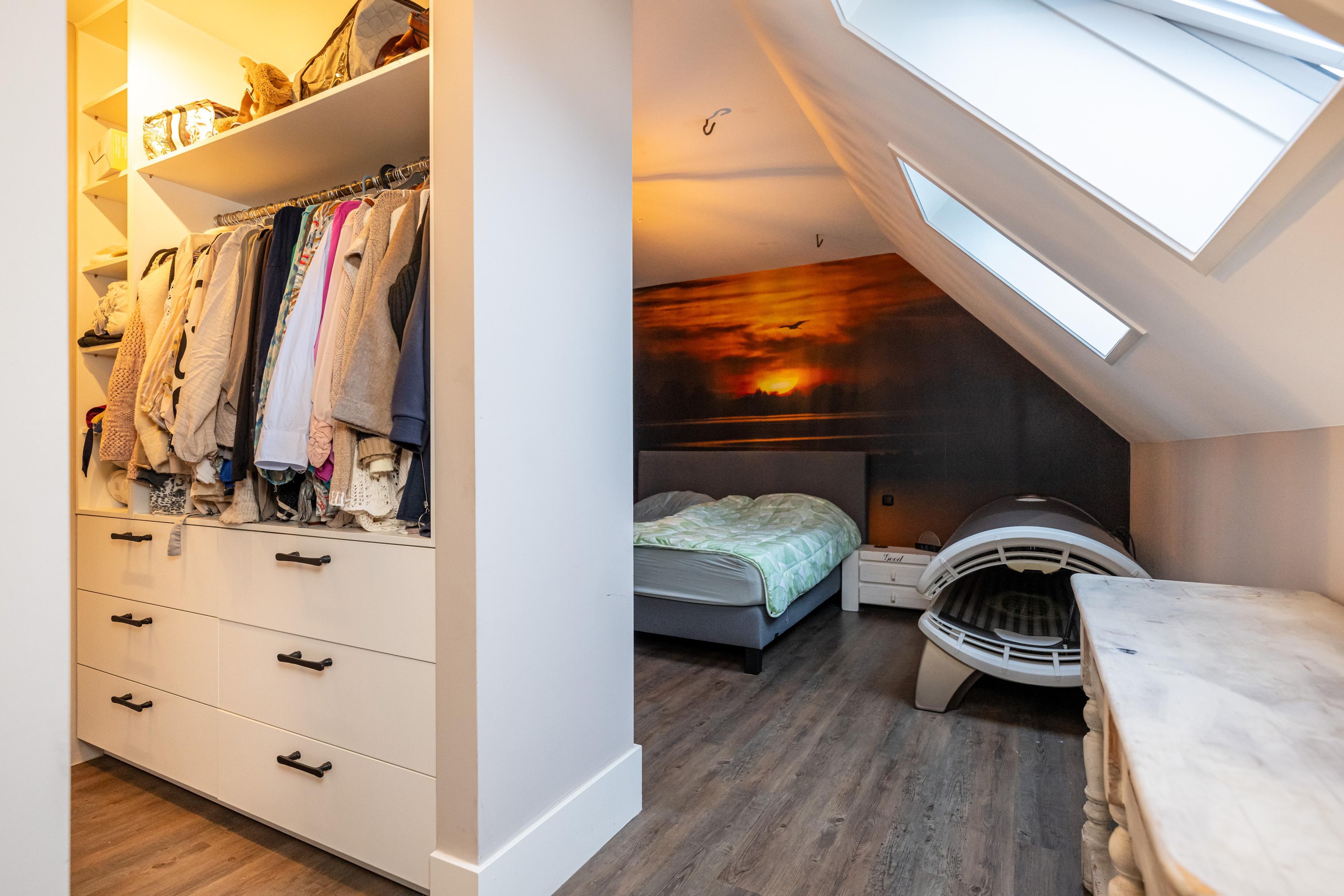PVC vloer met vloerverwarming, 2 x Velux dakraam met verduistering, walk-in closet en badkamer 2 en-suite.
