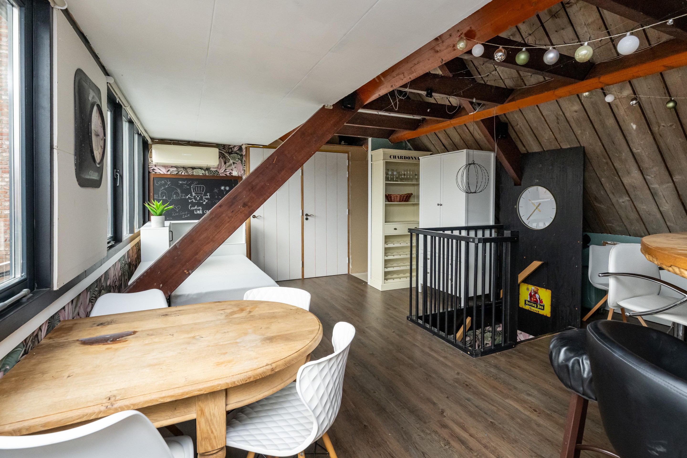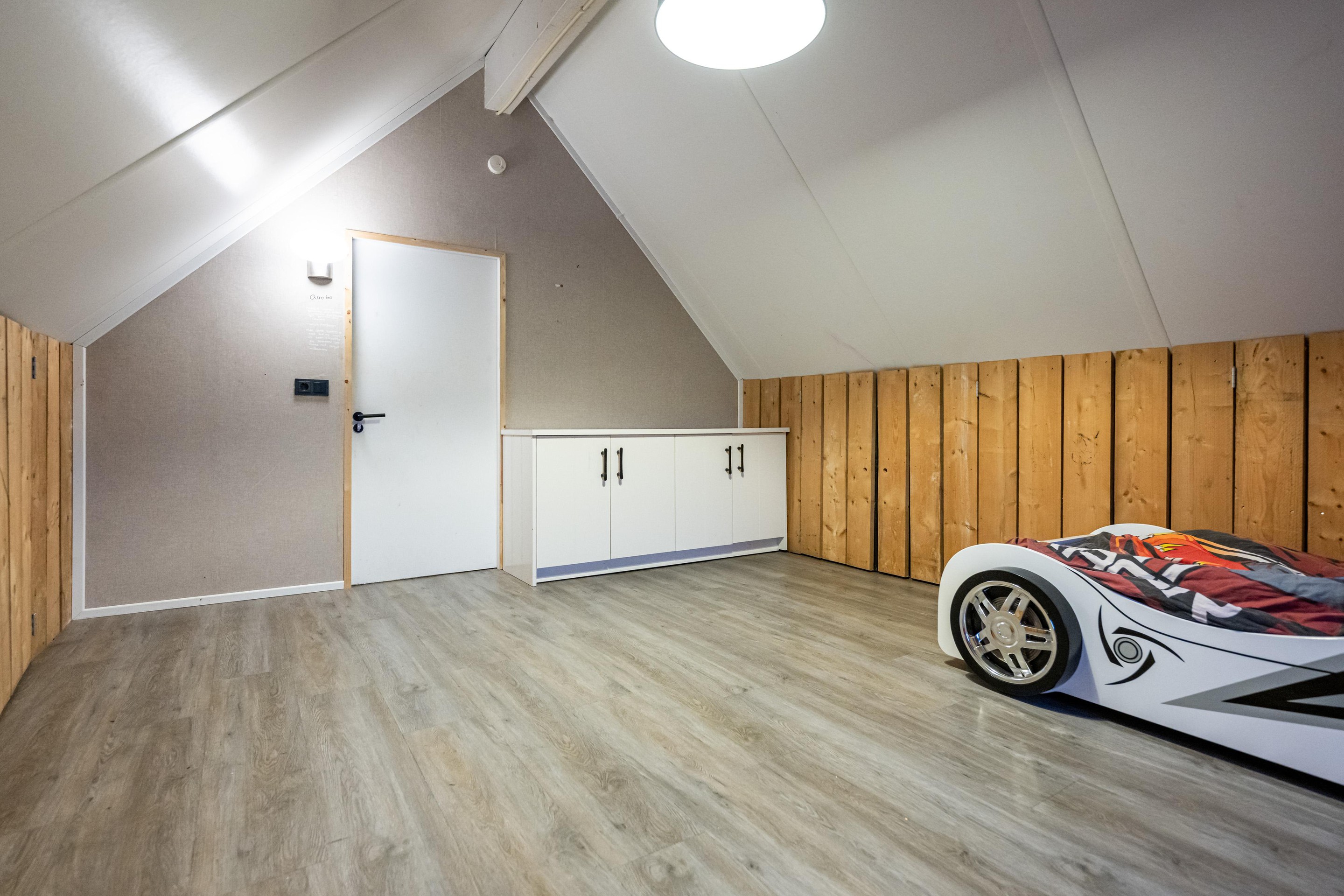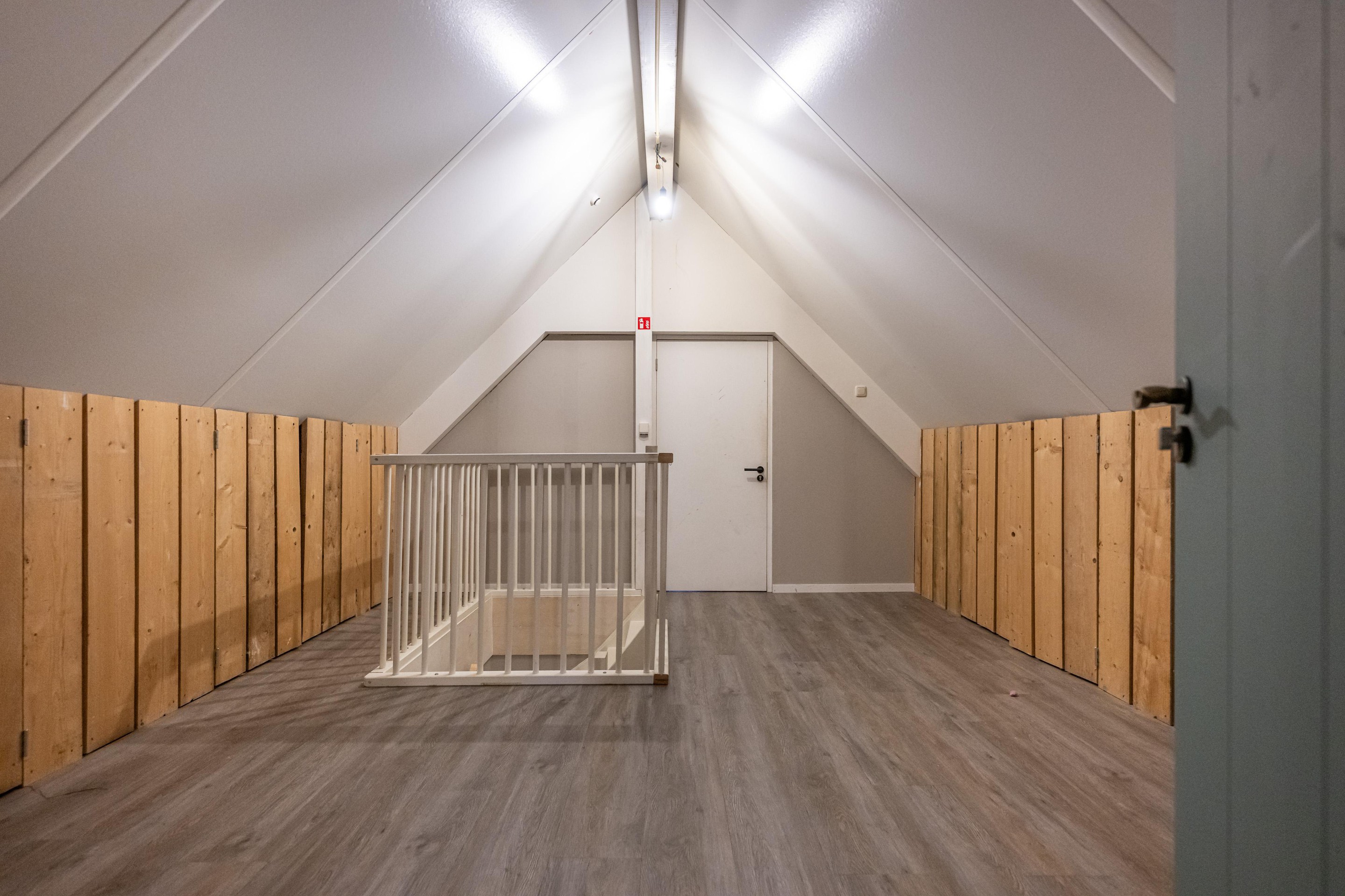 PVC vloer met vloerverwarming, kastruimte met unit mechanische afzuiging en 2 x Velux dakraam met verduistering.