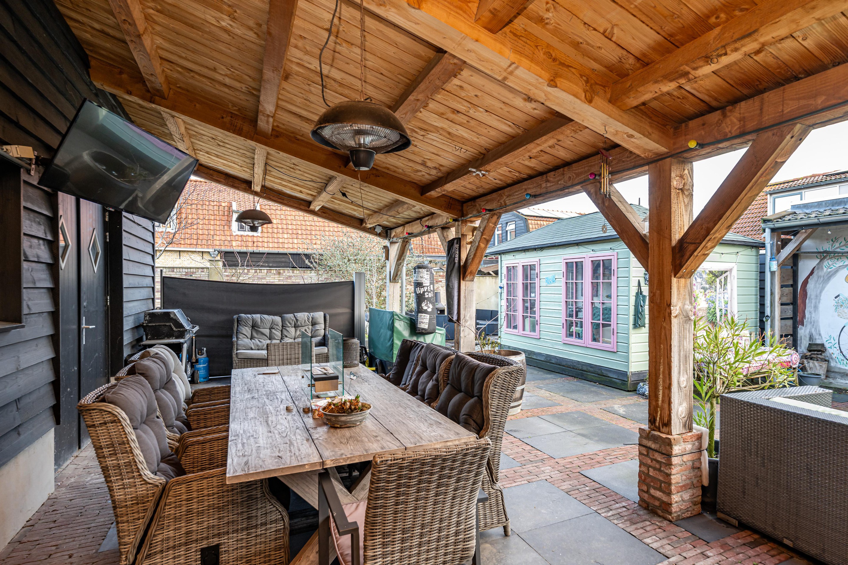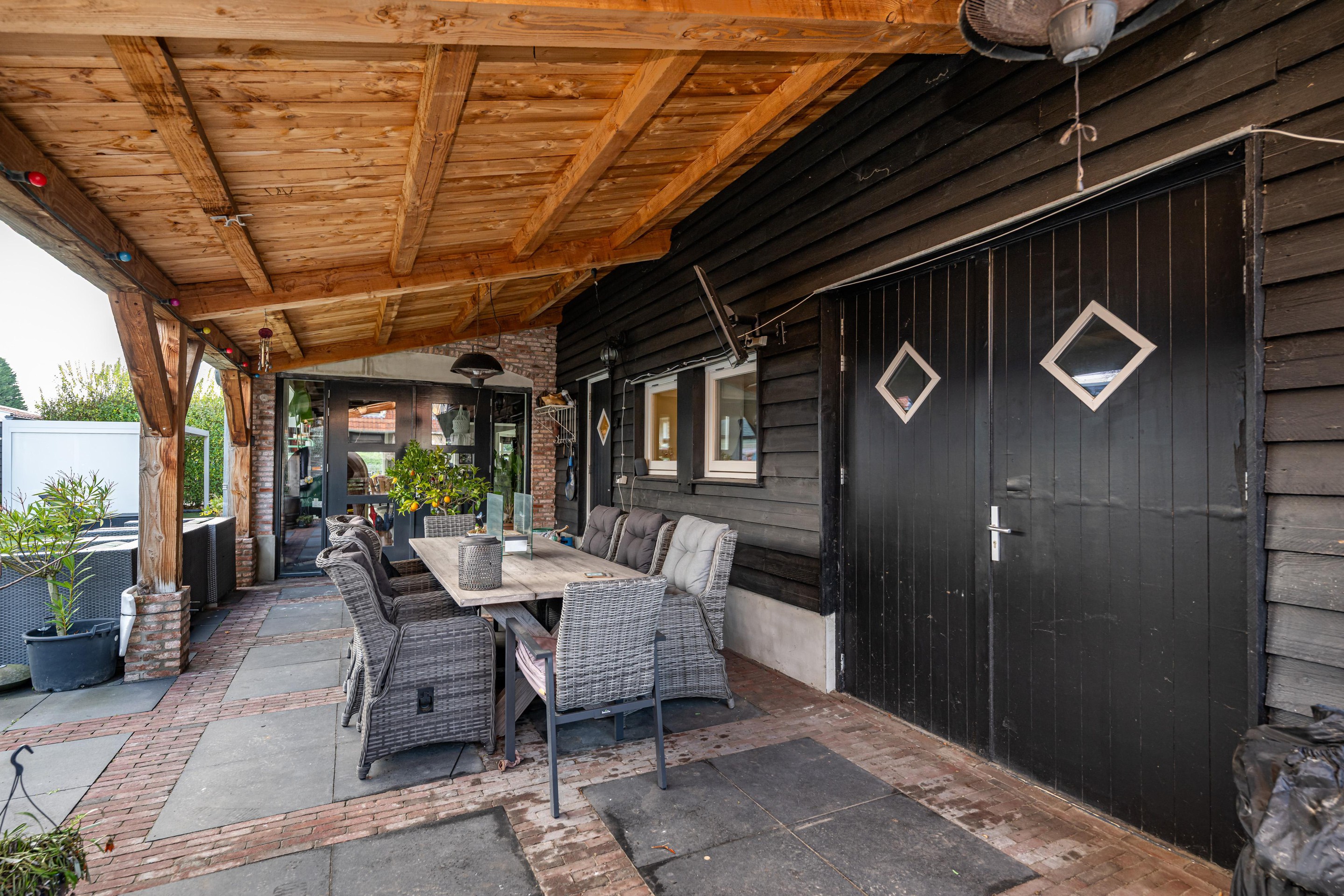 Buiten gaat het comfort door. U heeft hier maar liefst 1.133m2 eigen grond. Dat is uitzonderlijk. Het geeft u vrijheid. Ruimte om te spelen, te tuinieren, te loungen, of gewoon lekker niks te doen. En onder de royale overkapping zit u beschut en ontspannen. Regen? Wind? Felle zon? U blijft gewoon zitten. Dit is buitenleven dat u vaker gaat gebruiken dan u nu denkt.