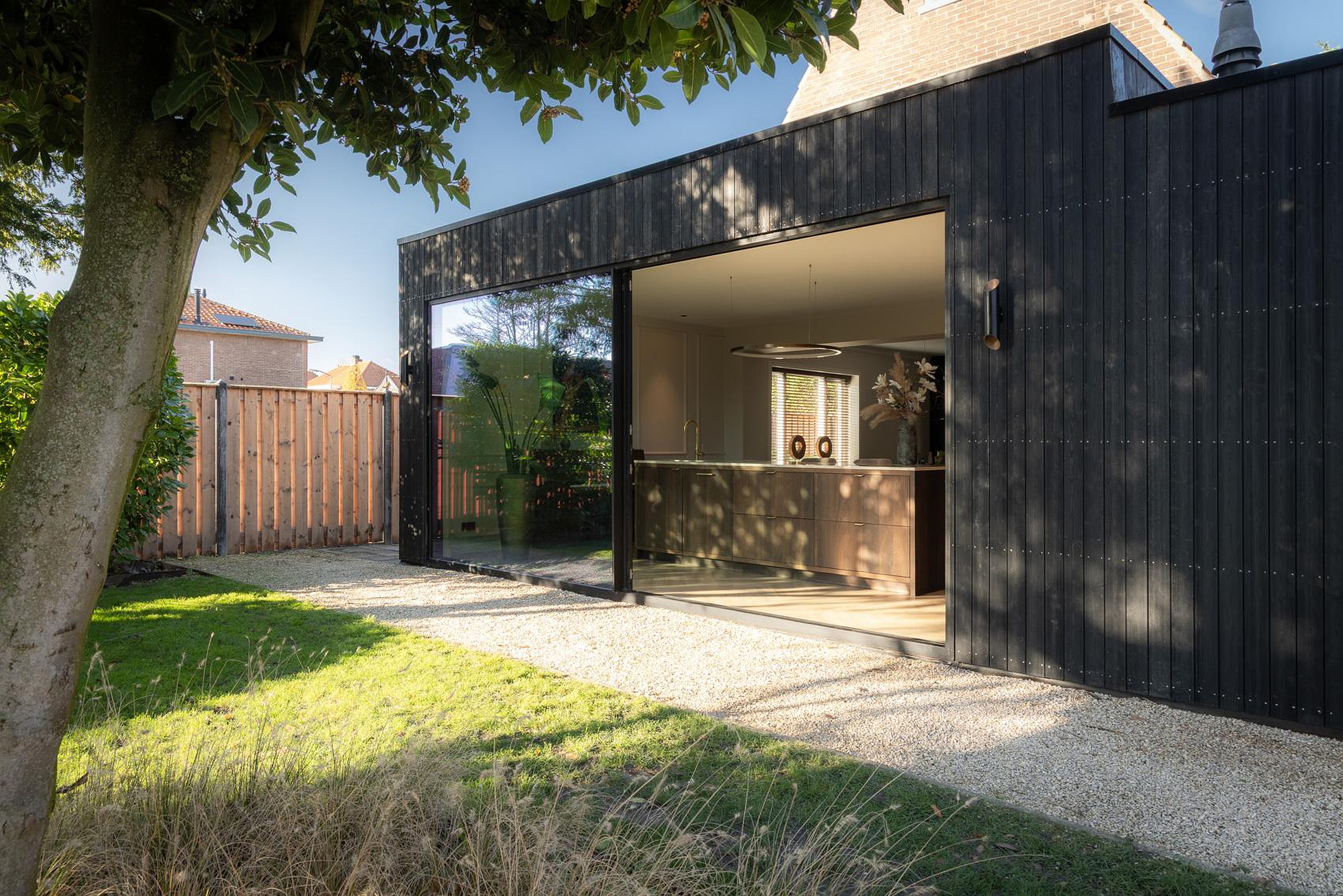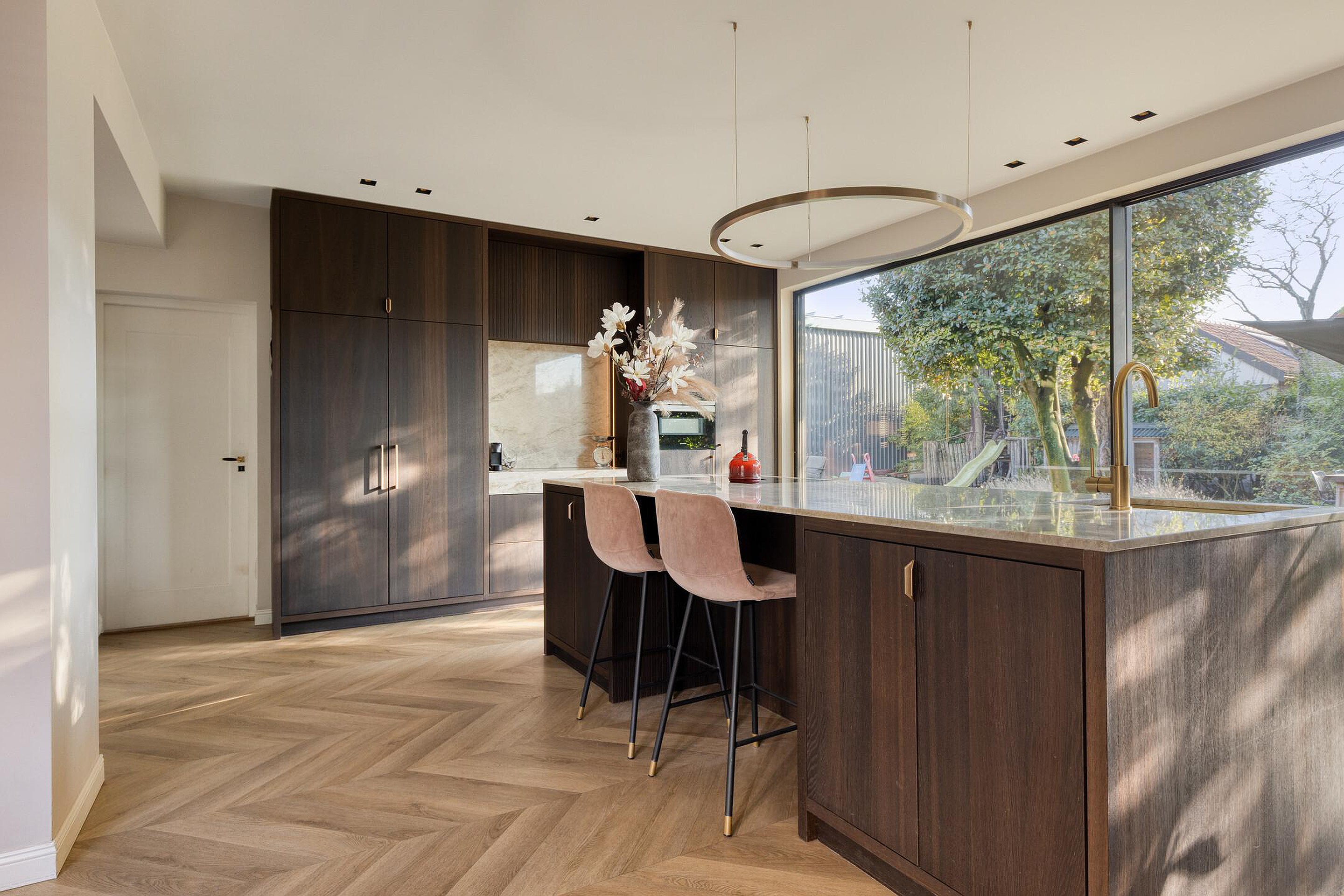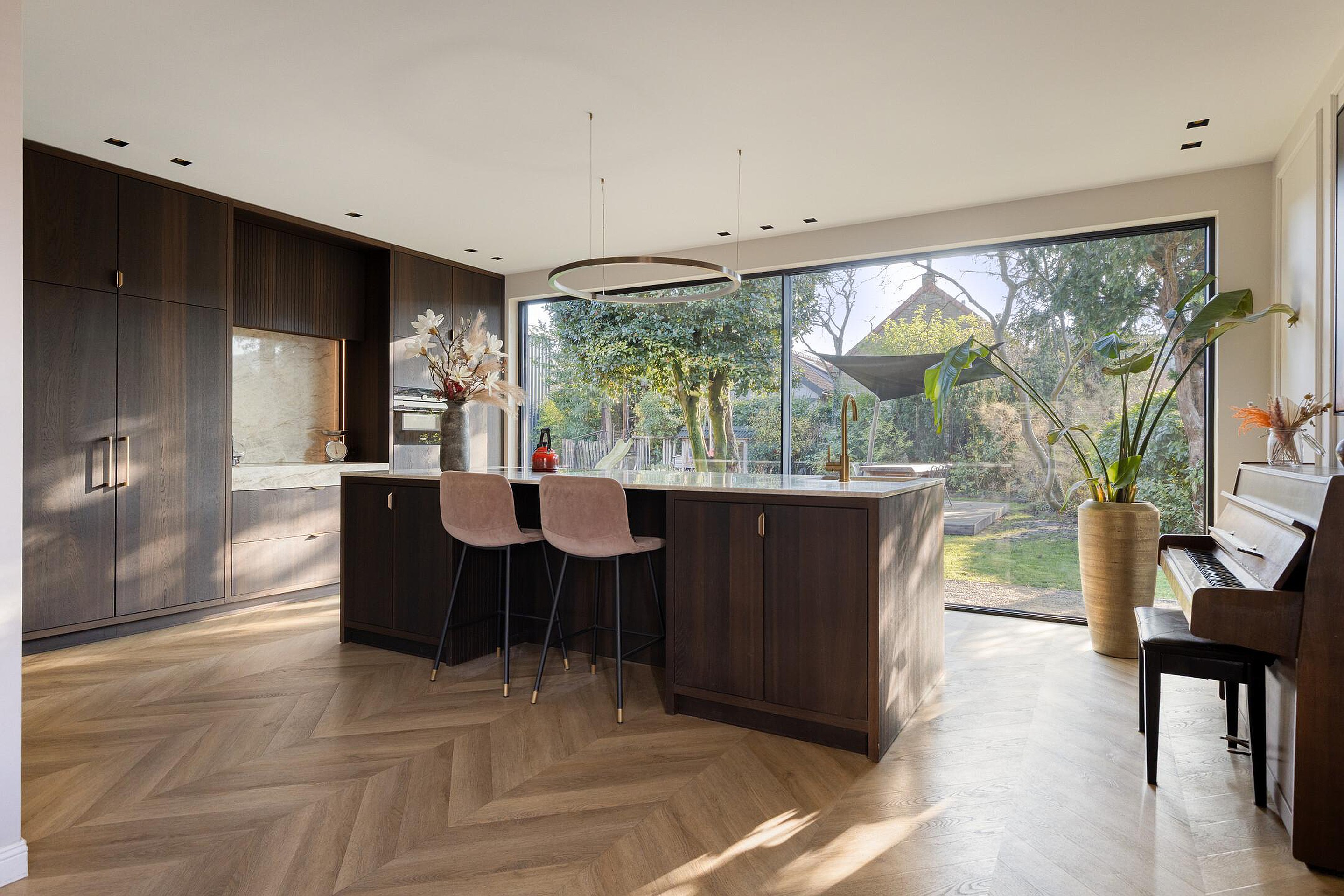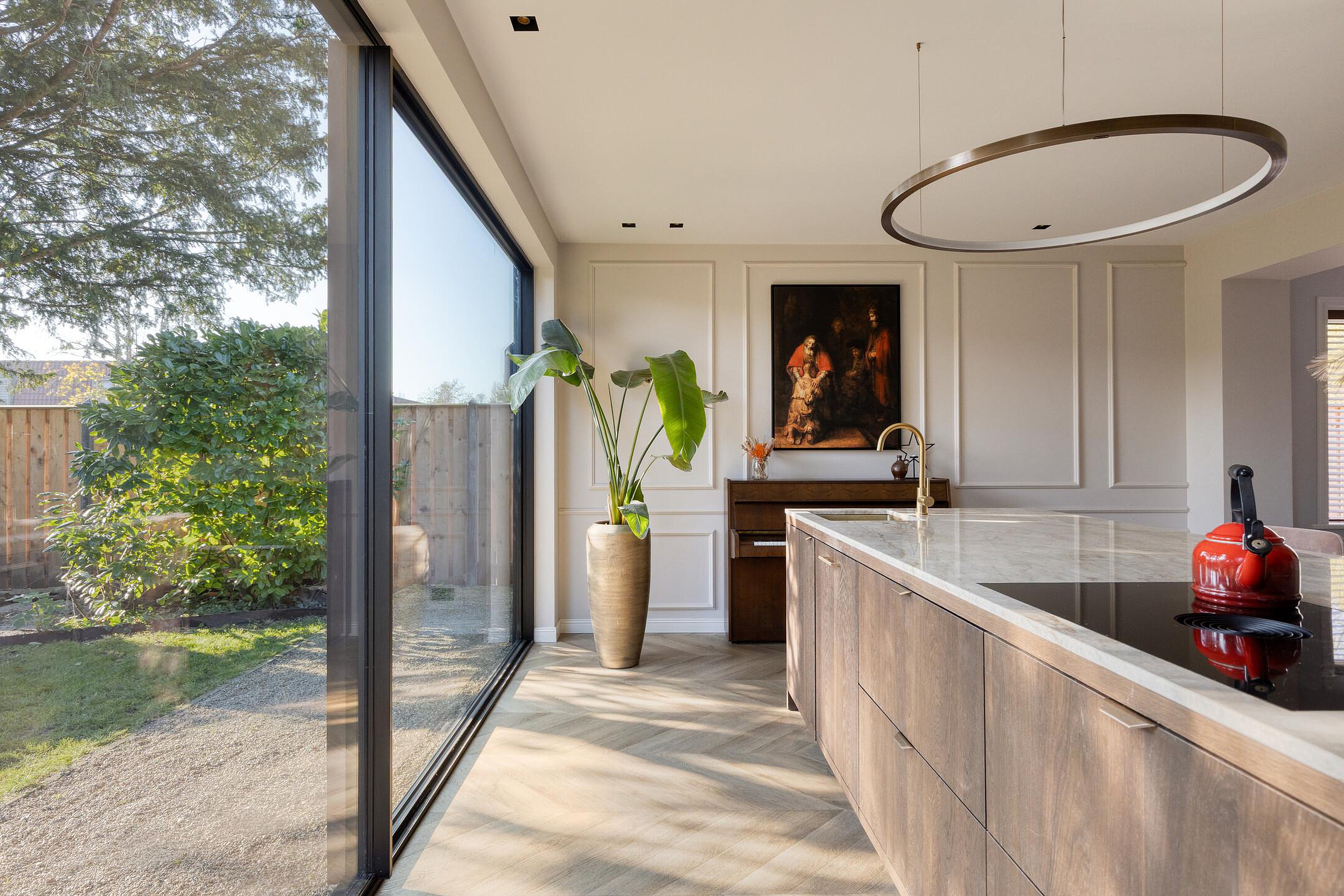 - Ruime leef keuken met aluminium panorama schuifpui