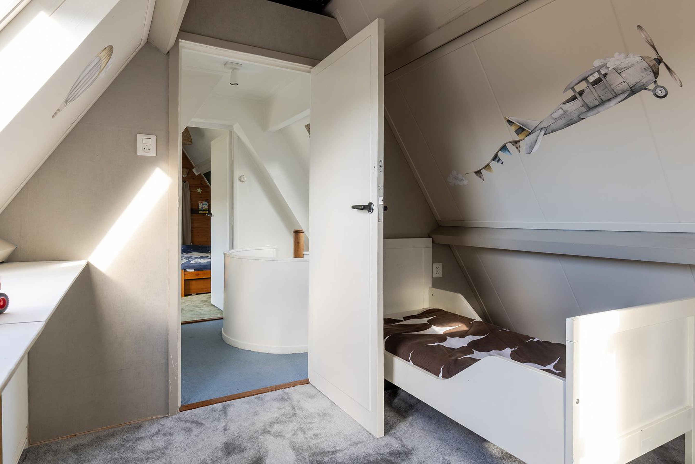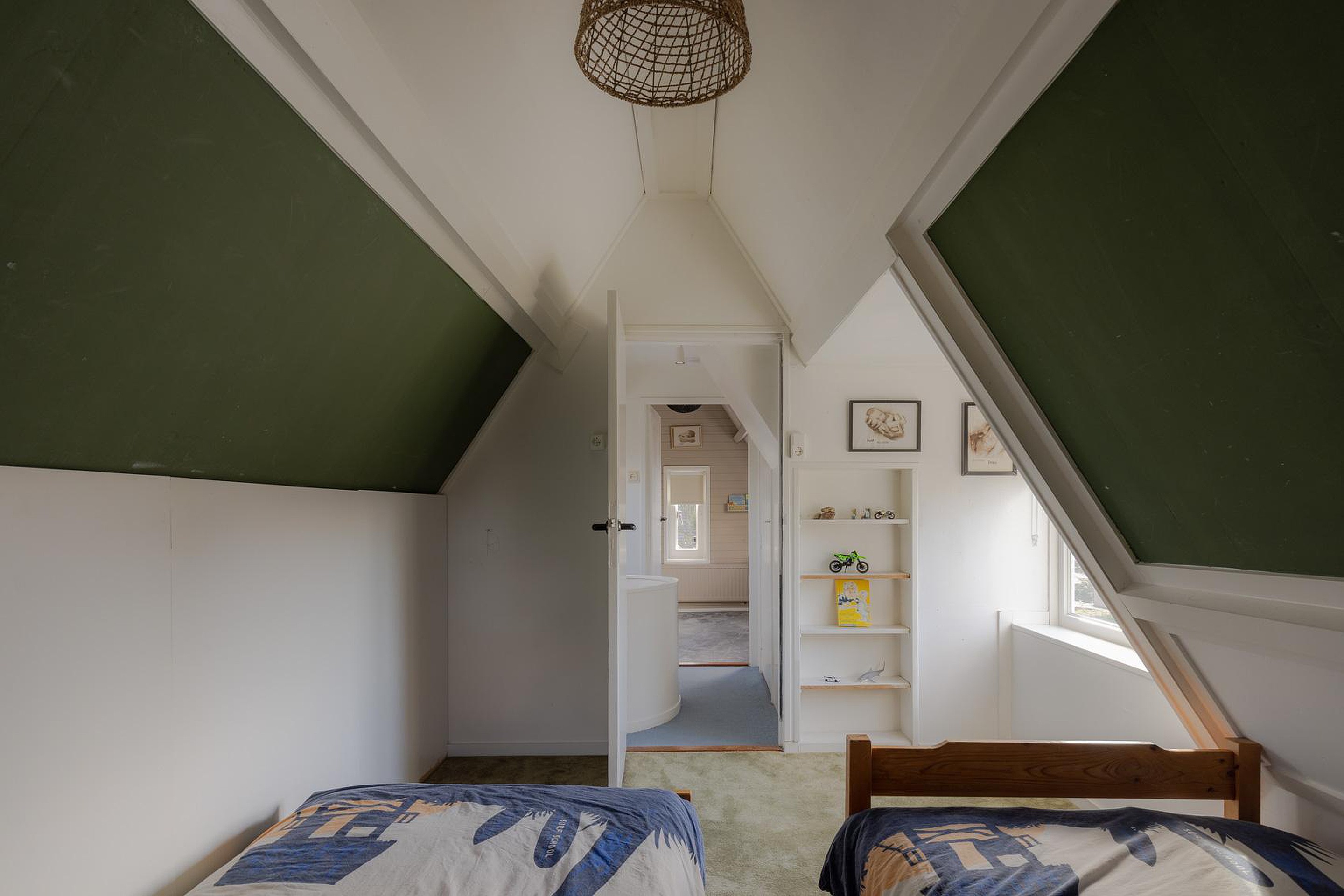 Tweede verdieping Via een vaste trap bereikt u de tweede verdieping, waar zich nog twee slaapkamers bevinden. Dankzij de dakkapel en slimme indeling is dit een volwaardige etage met extra kastruimte op de overloop.
