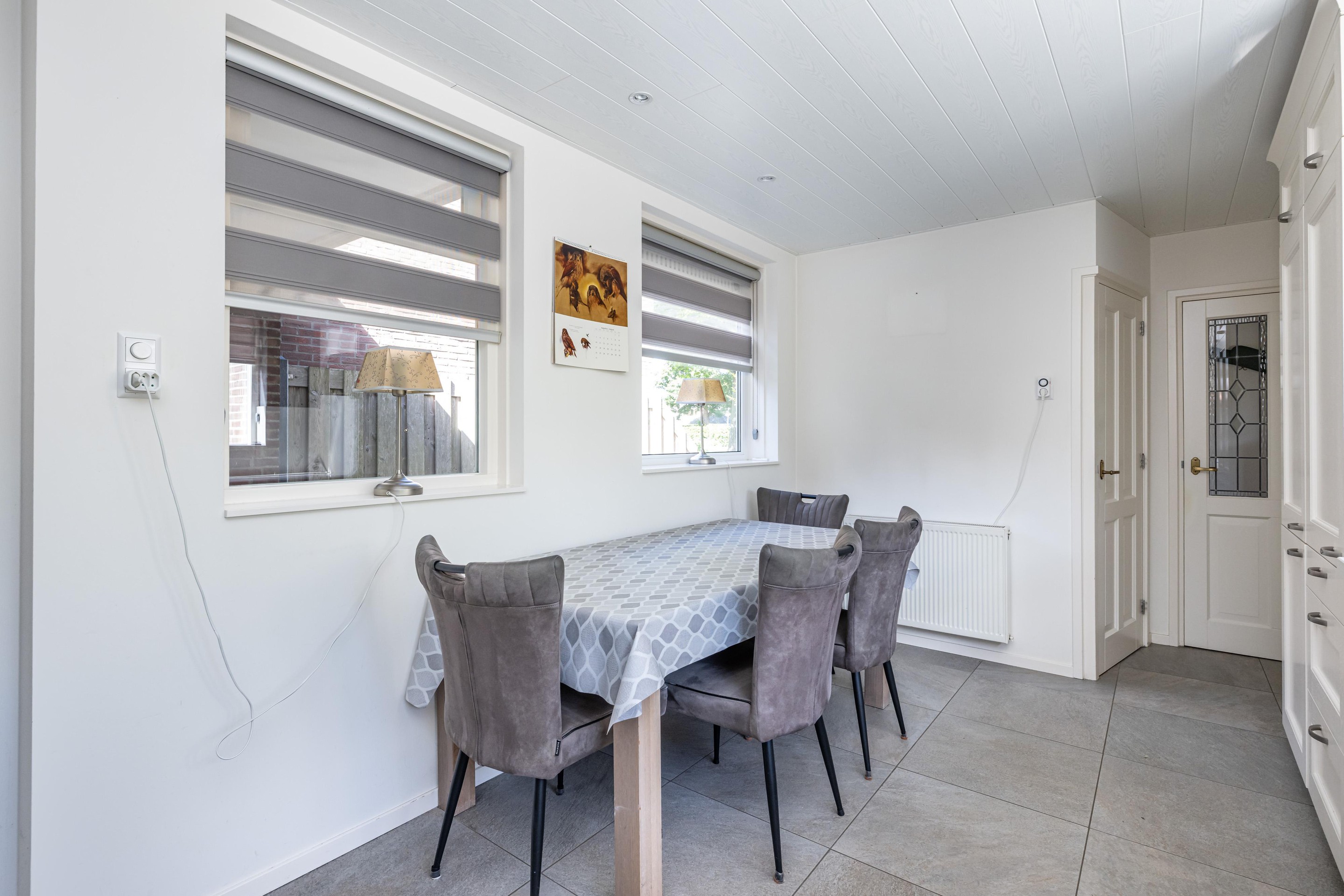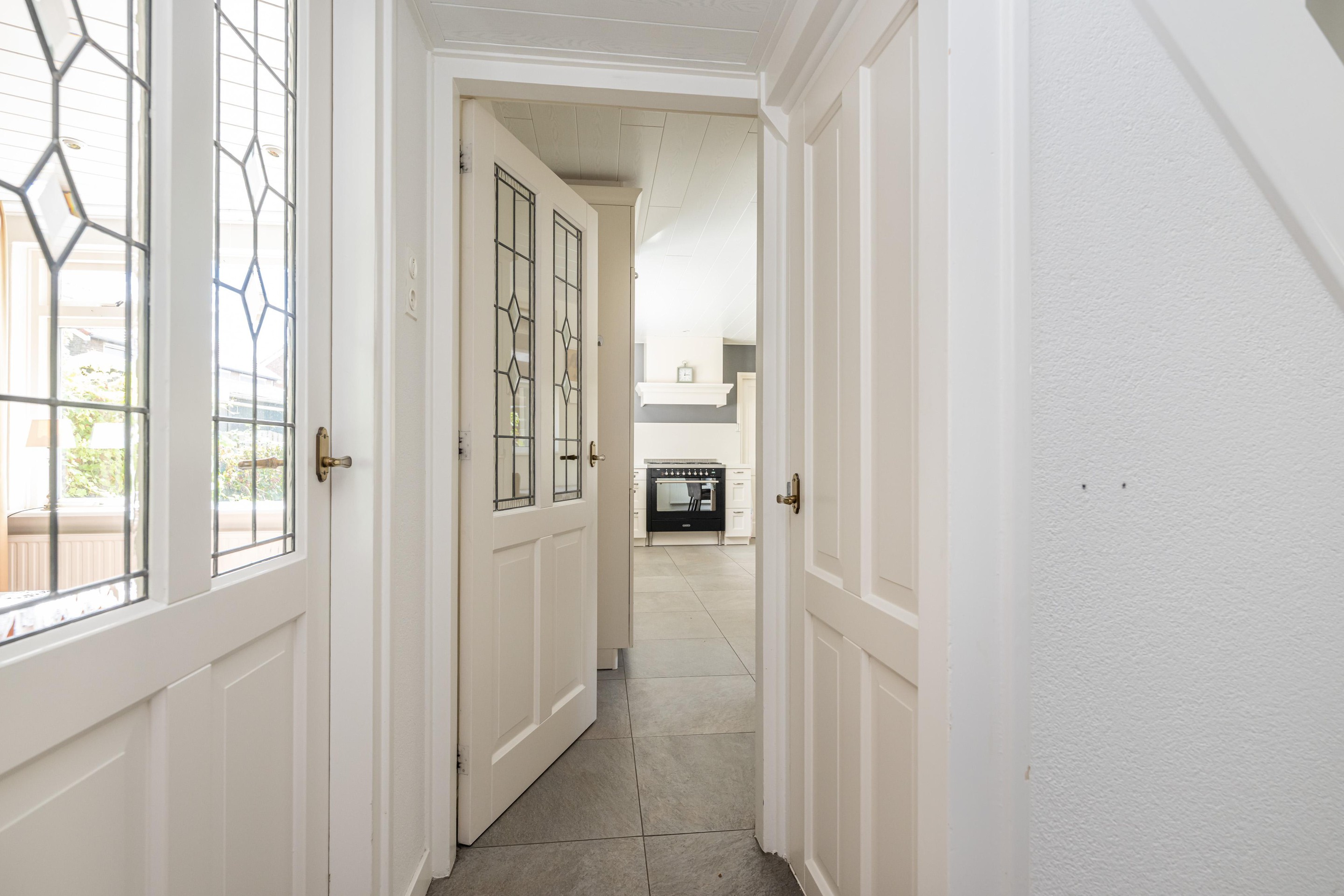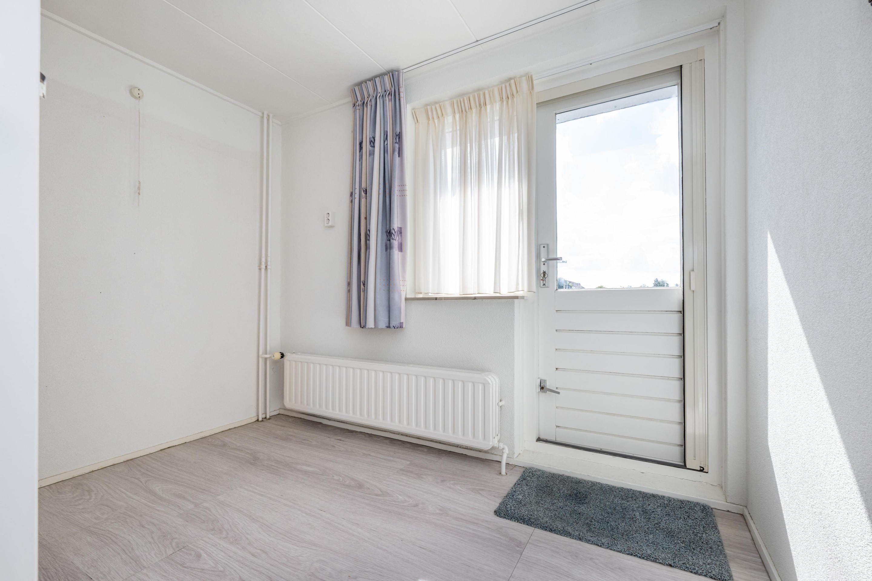 Laminaatvloer, radiator en toegang tot dakterras.