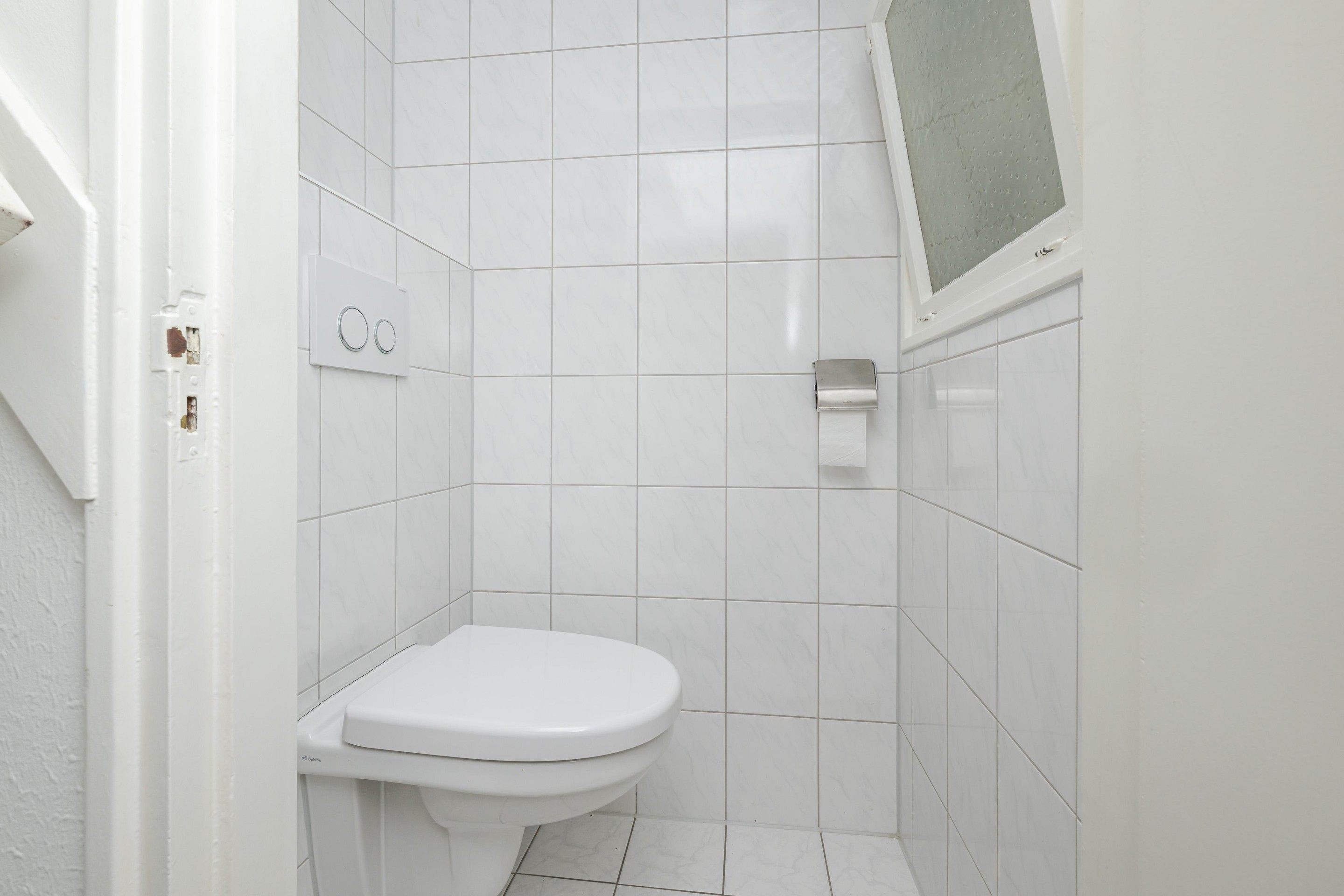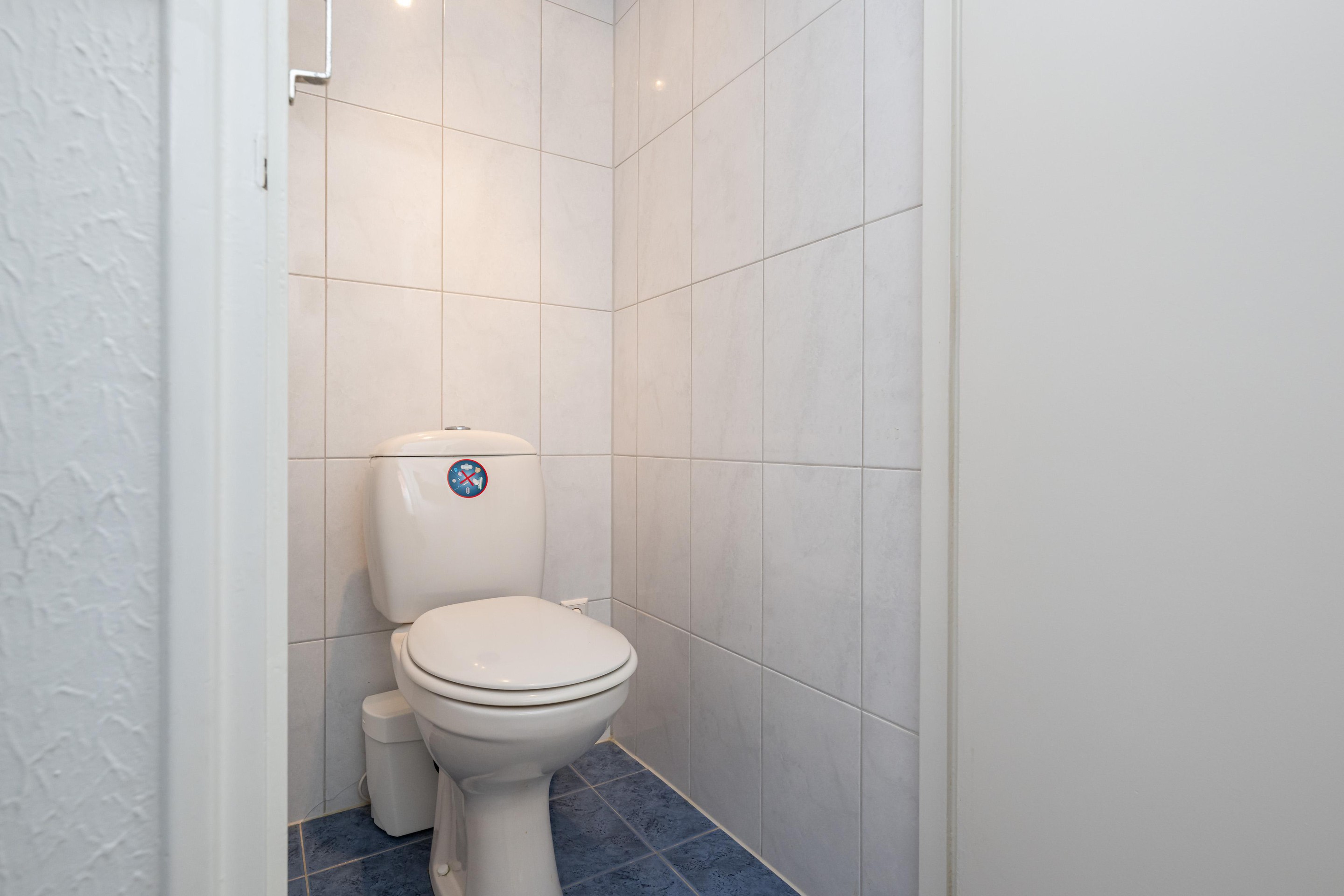 Sani-broyeur, plavuizenvloer en geheel betegeld.