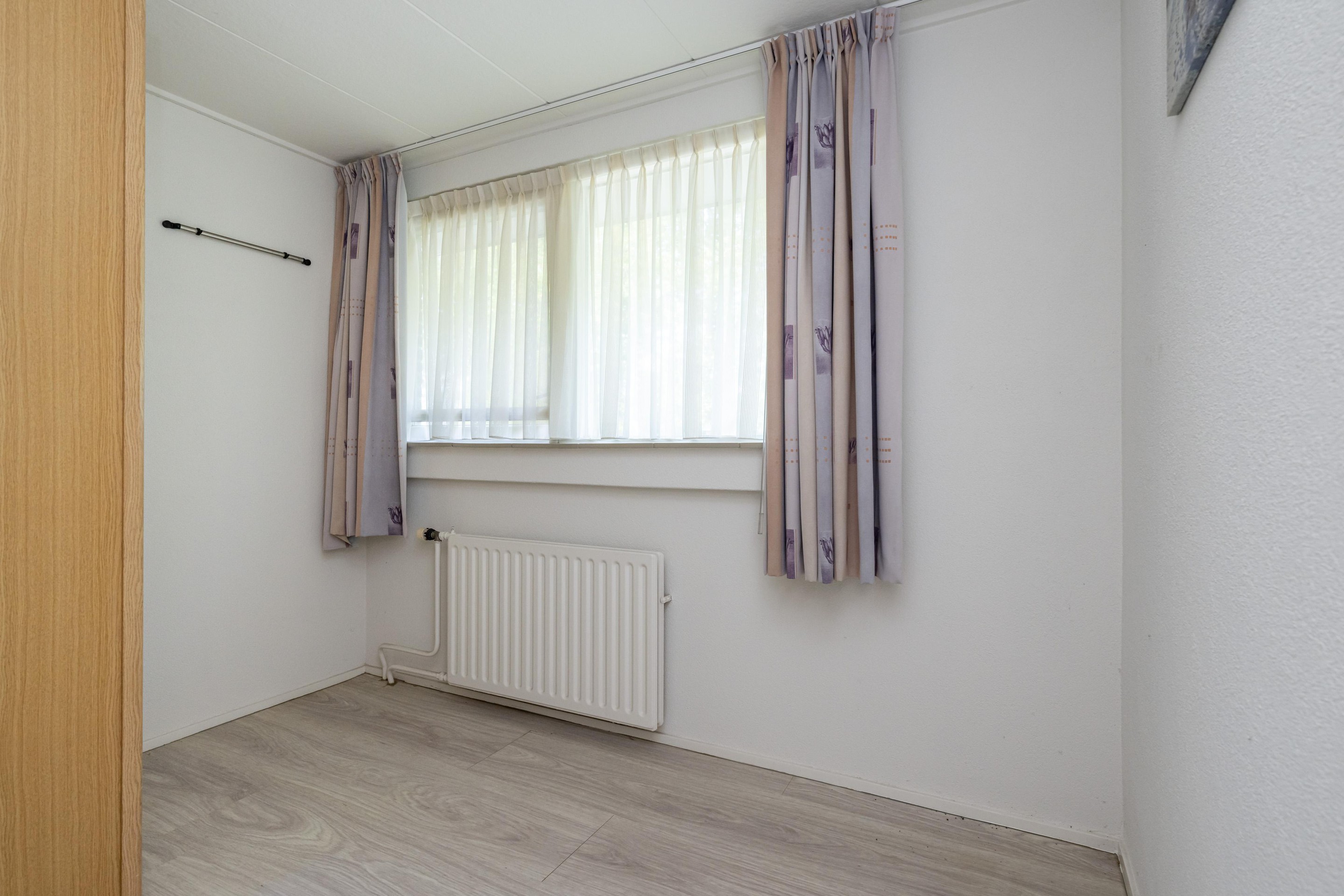 Laminaatvloer, inbouw kledingkast, radiator en rolluik handbediend.