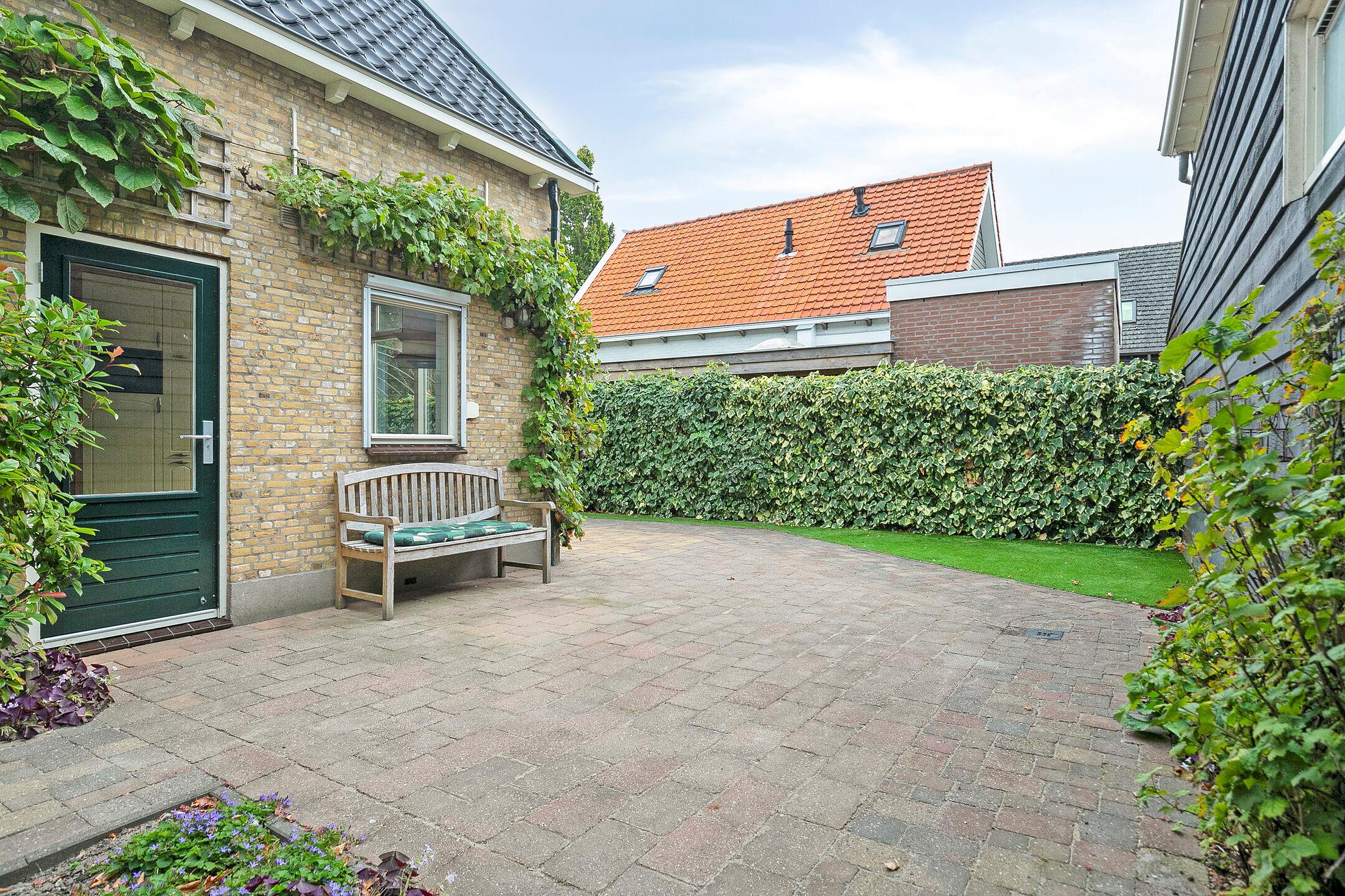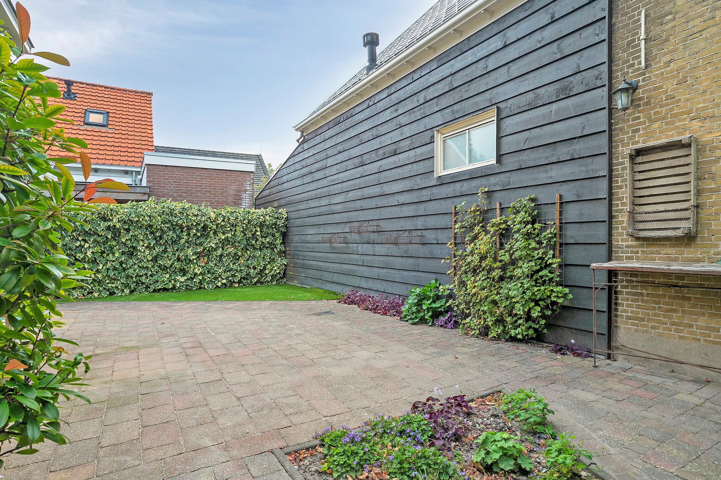 Tuin De tuin rondom de woning biedt volop privacy en verschillende zitjes, waardoor u de hele dag door van de zon kunt genieten. De sfeervolle gevels met luiken en het groen maken dit plaatje compleet. Aan de achterzijde is er een groot terras en een stenen berging.