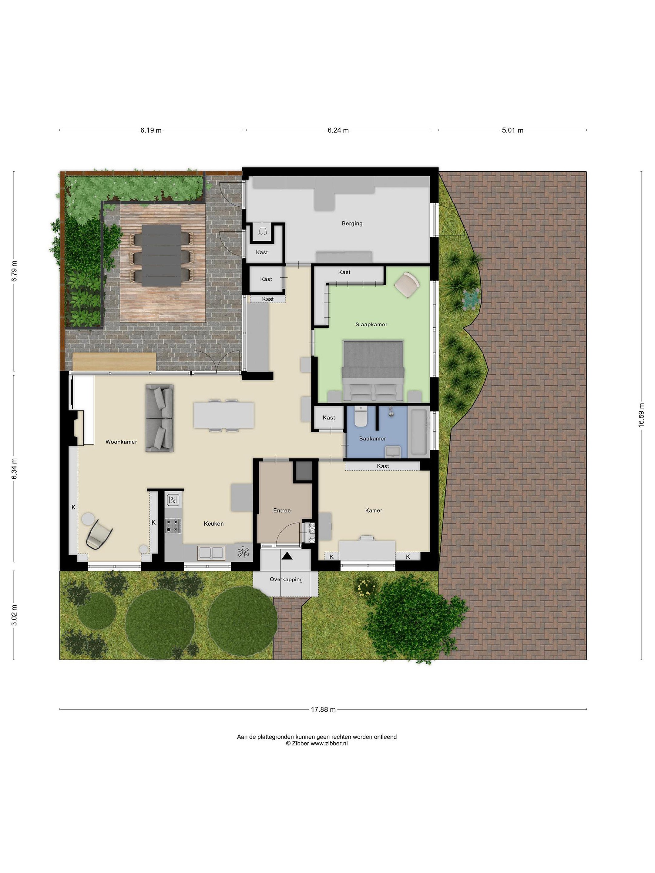 - Inpandige berging van ca. 18 m2 met toegang tot tuin en oprit