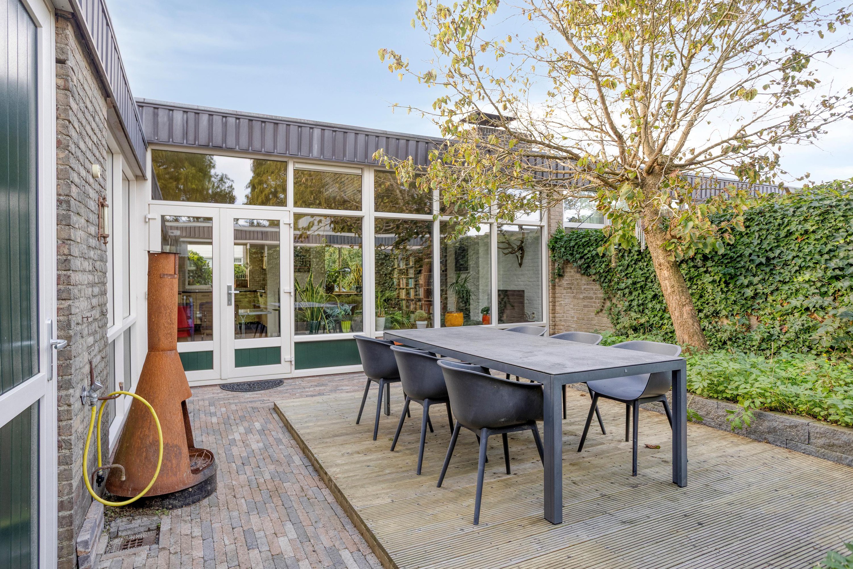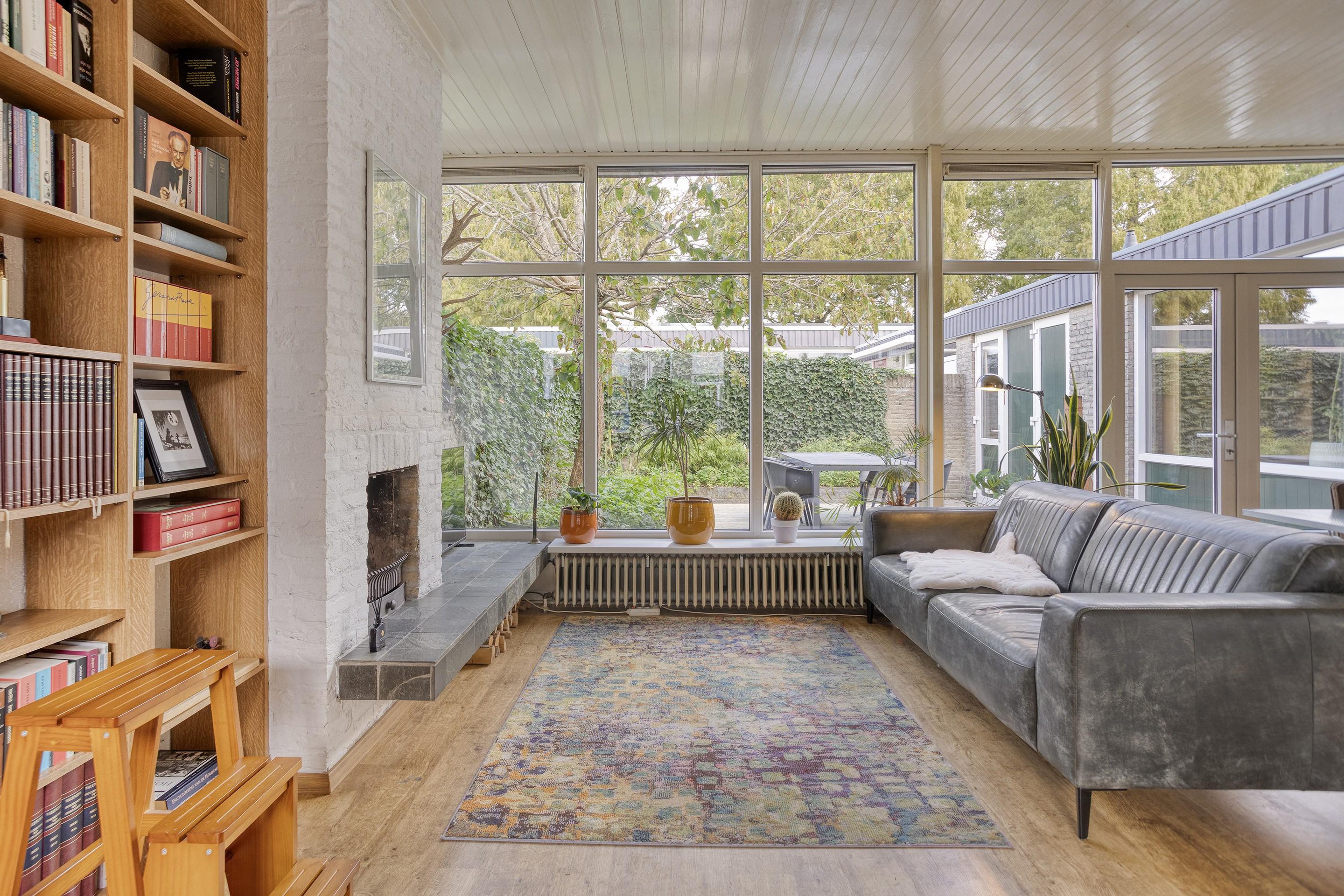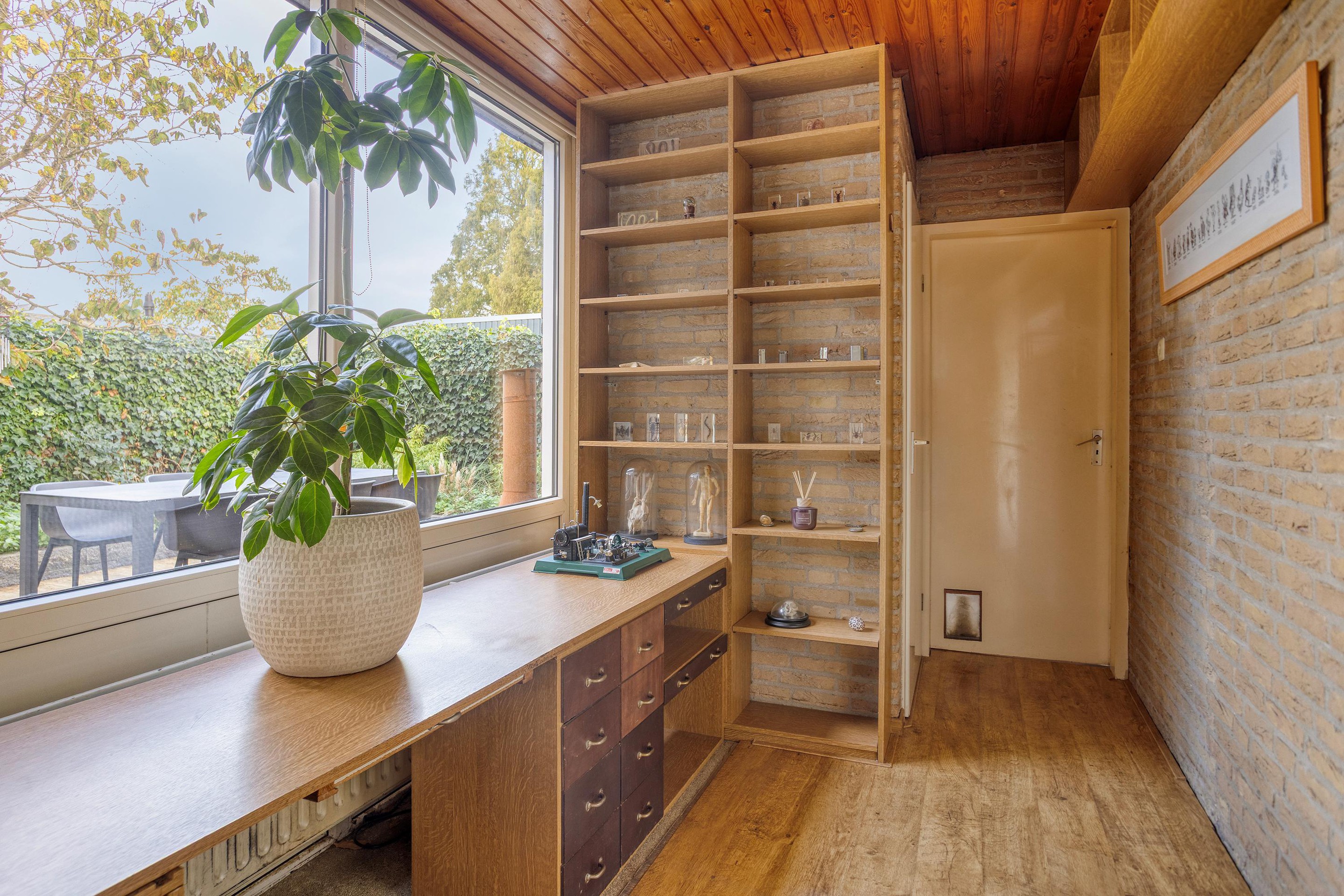 Via de overdekte entree kom je binnen in de hal met meterkast. De royale woonkamer is gesitueerd van de straatzijde tot aan de achtertuin en voelt meteen licht en ruim dankzij de grote raampartijen. Aan de voorzijde vind je het zitgedeelte met een gezellige open haard. De woonkamer loopt door naar de tuinkant, waar het eetgedeelte grenst aan de zonnige patio. Dankzij de openslaande deuren heb je hier een fijne verbinding met de buitenruimte. De open hoekkeuken ligt aan de straatzijde en biedt een fijne plek om te koken met uitzicht op de straat. Er zijn twee slaapkamers aanwezig, waarvan er nu één in gebruik is als werkkamer. Handig zijn de diverse inbouwkasten die in de woning zijn terug te vinden. De badkamer is compleet uitgerust met een ligbad, separate inloopdouche, wastafel en toilet. Vanuit de woonkamer bereik je via een tussenhal nog een extra hoek waar je bijvoorbeeld een werkplek kunt creëren. Vanuit hier kom je ook bij de ruime inpandige berging van ca. 18 m2 met een eigen deur naar zowel de tuin als de oprit.