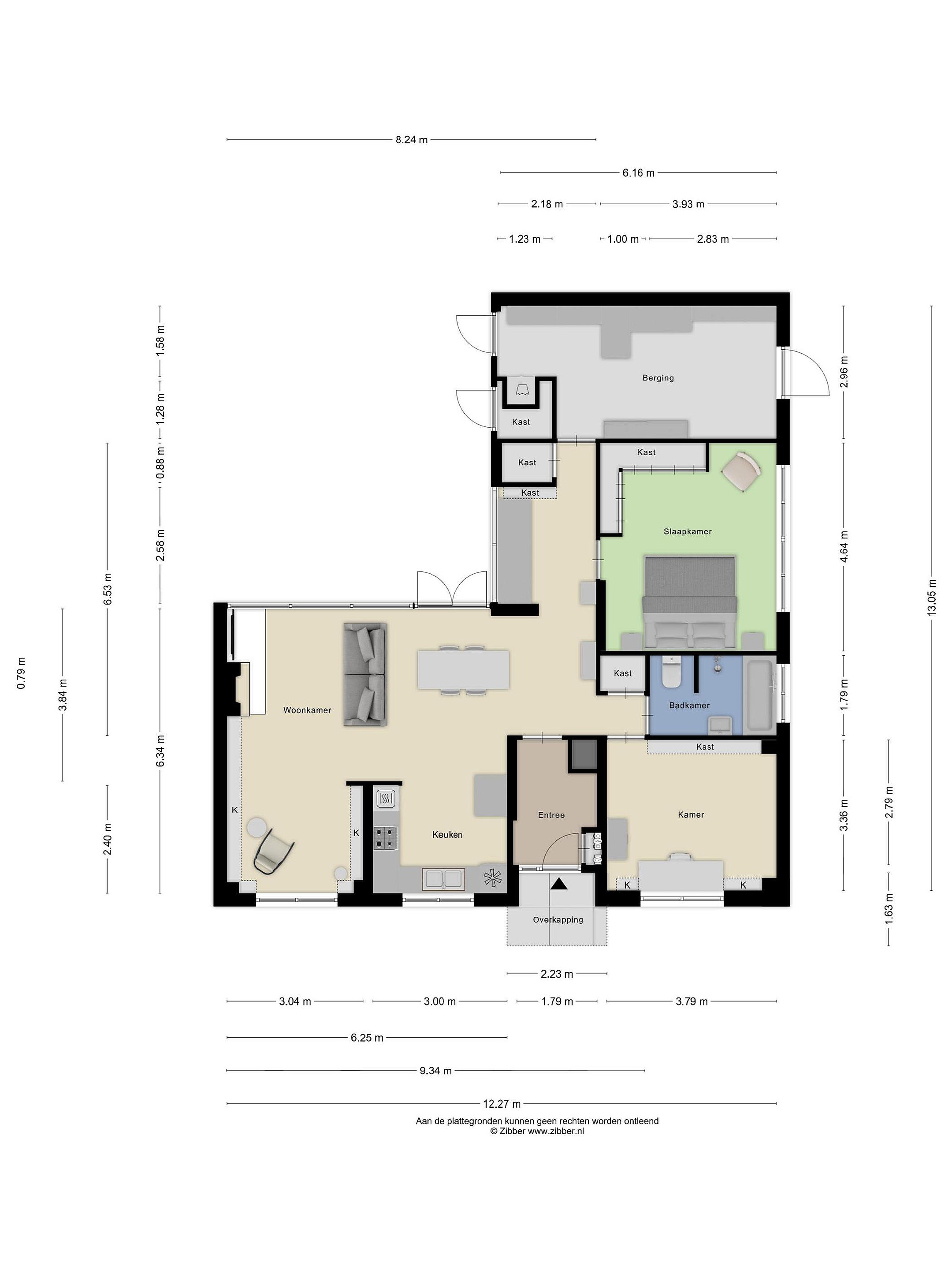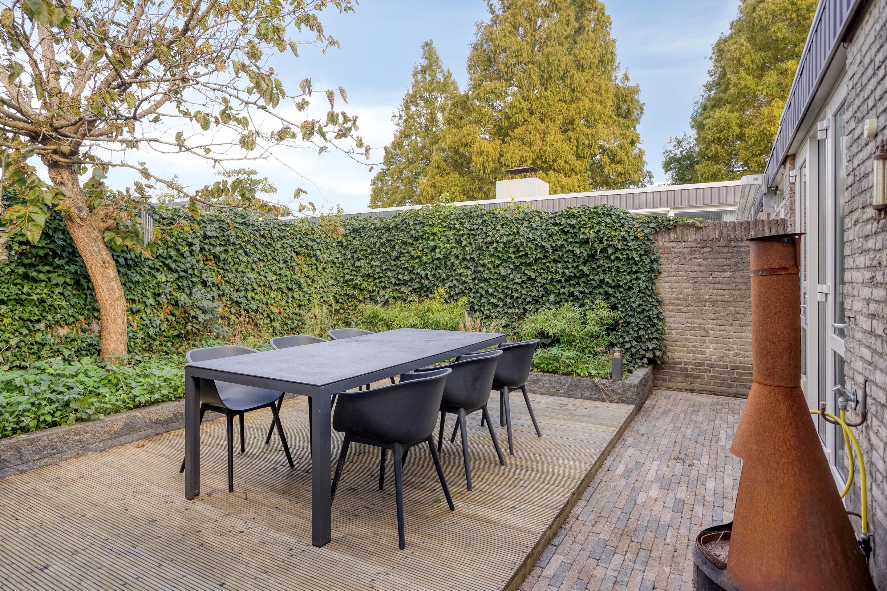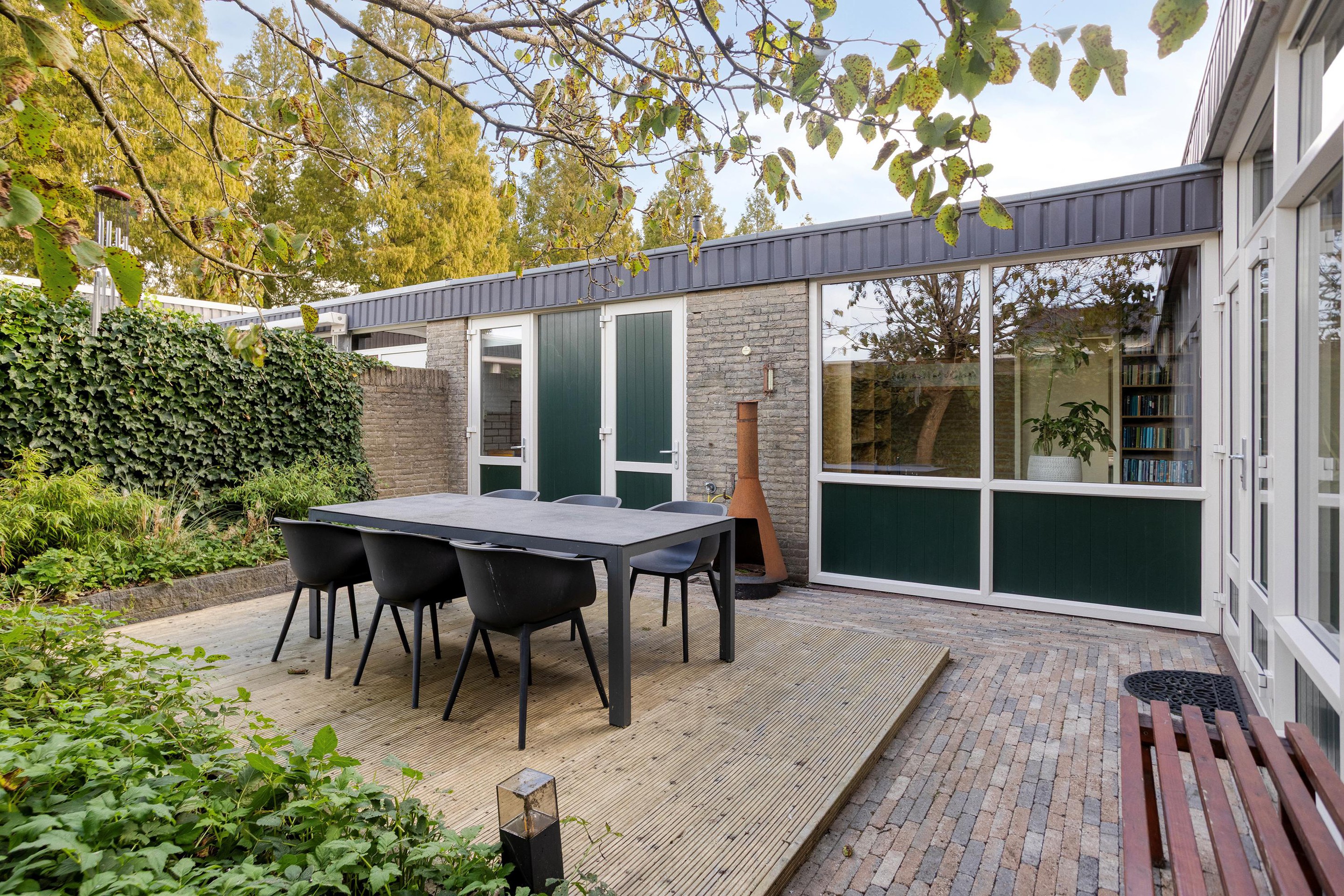 Via de overdekte entree kom je binnen in de hal met meterkast. De royale woonkamer is gesitueerd van de straatzijde tot aan de achtertuin en voelt meteen licht en ruim dankzij de grote raampartijen. Aan de voorzijde vind je het zitgedeelte met een gezellige open haard. De woonkamer loopt door naar de tuinkant, waar het eetgedeelte grenst aan de zonnige patio. Dankzij de openslaande deuren heb je hier een fijne verbinding met de buitenruimte. De open hoekkeuken ligt aan de straatzijde en biedt een fijne plek om te koken met uitzicht op de straat. Er zijn twee slaapkamers aanwezig, waarvan er nu één in gebruik is als werkkamer. Handig zijn de diverse inbouwkasten die in de woning zijn terug te vinden. De badkamer is compleet uitgerust met een ligbad, separate inloopdouche, wastafel en toilet. Vanuit de woonkamer bereik je via een tussenhal nog een extra hoek waar je bijvoorbeeld een werkplek kunt creëren. Vanuit hier kom je ook bij de ruime inpandige berging van ca. 18 m2 met een eigen deur naar zowel de tuin als de oprit.