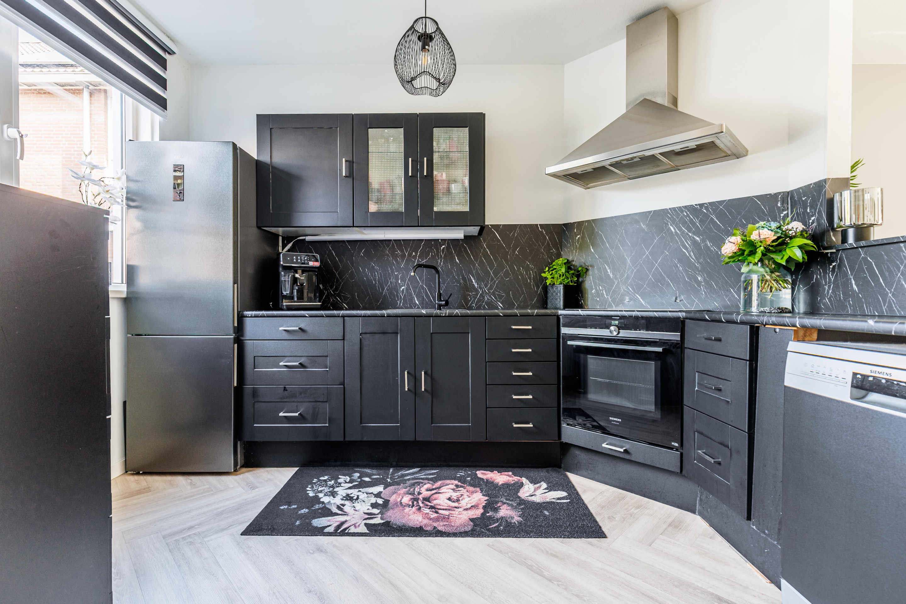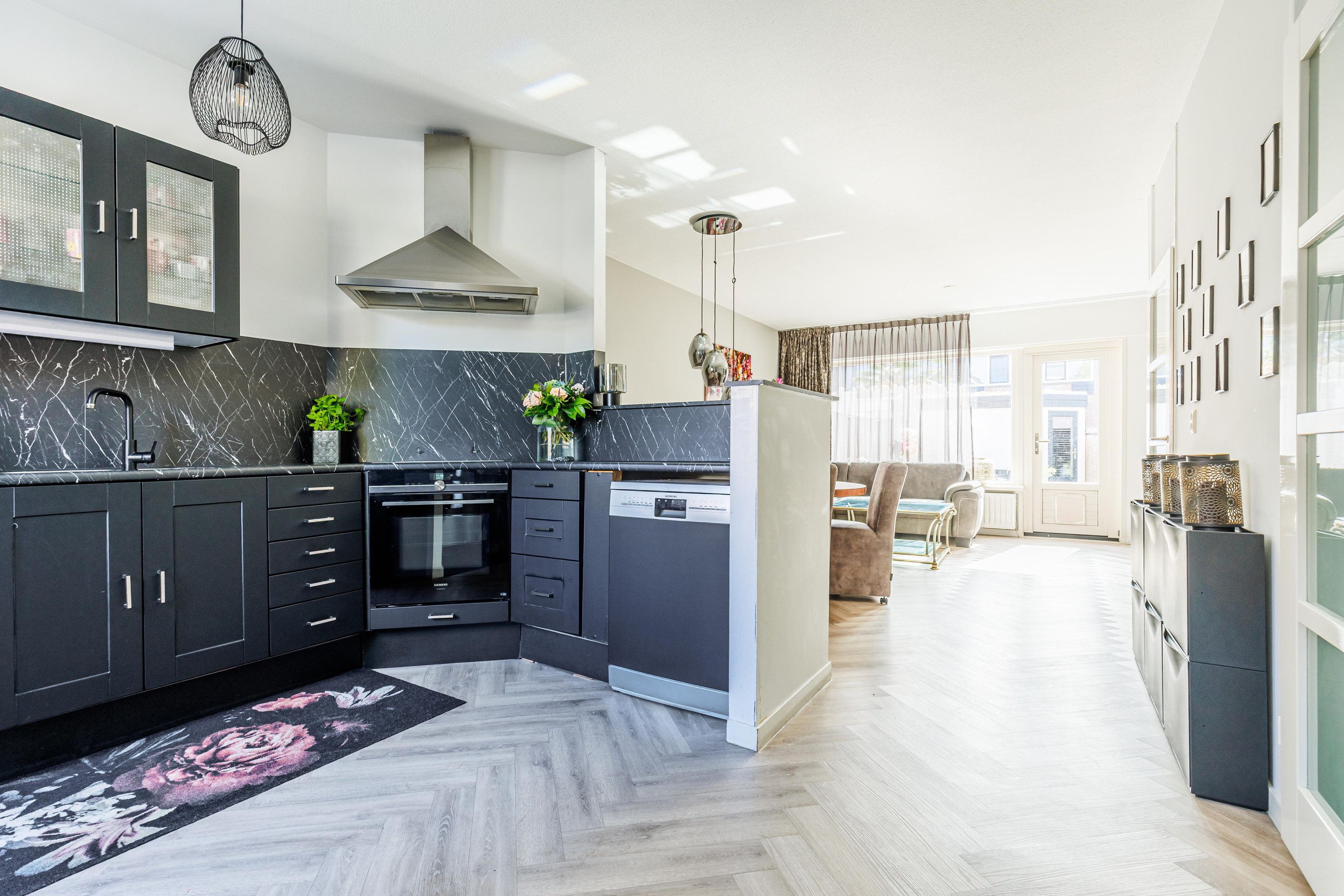 Via de entree met vernieuwde meterkast (2023) bereikt u de keuken aan de voorzijde van de woning. Deze is uitgerust met een inductiekookplaat, combioven, vaatwasser en afzuigkap. Aan de achterzijde bevindt zich de tuingerichte woonkamer met eethoek, waar grote raampartijen en openslaande deuren zorgen voor veel lichtinval en een directe verbinding met de zonnige achtertuin. Zo ontstaat er een fijne balans tussen de straatzijde en de tuinzijde. Een praktische trapkast biedt extra opbergruimte. Vanuit de hal bereikt u het toilet (2023) en de trap naar boven. De gehele begane grond is volledig afgewerkt met een PVC vloer in visgraatmotief en strakke gestucte wanden.