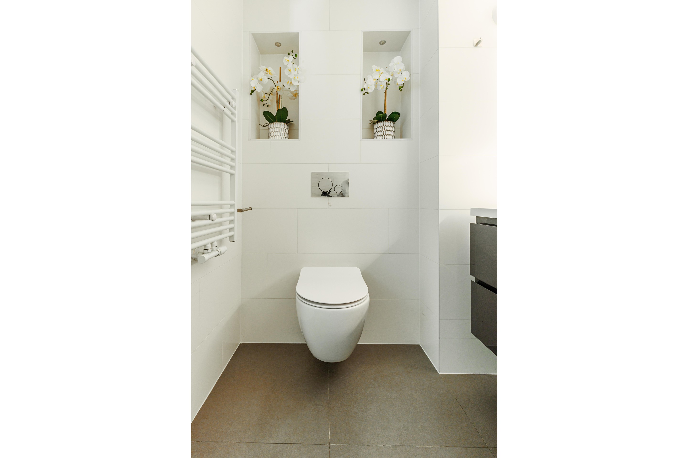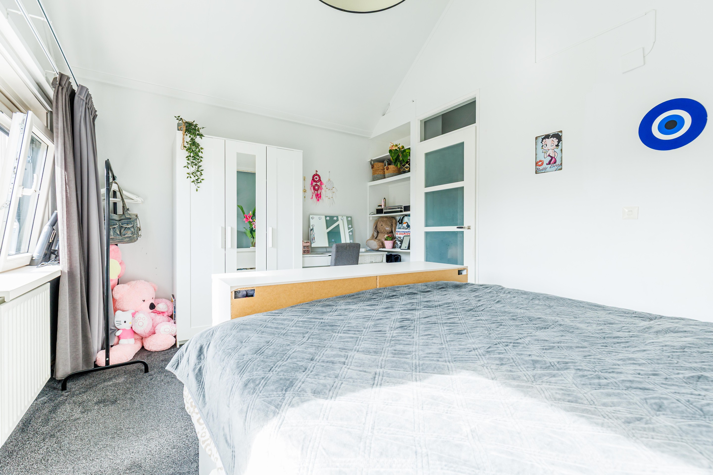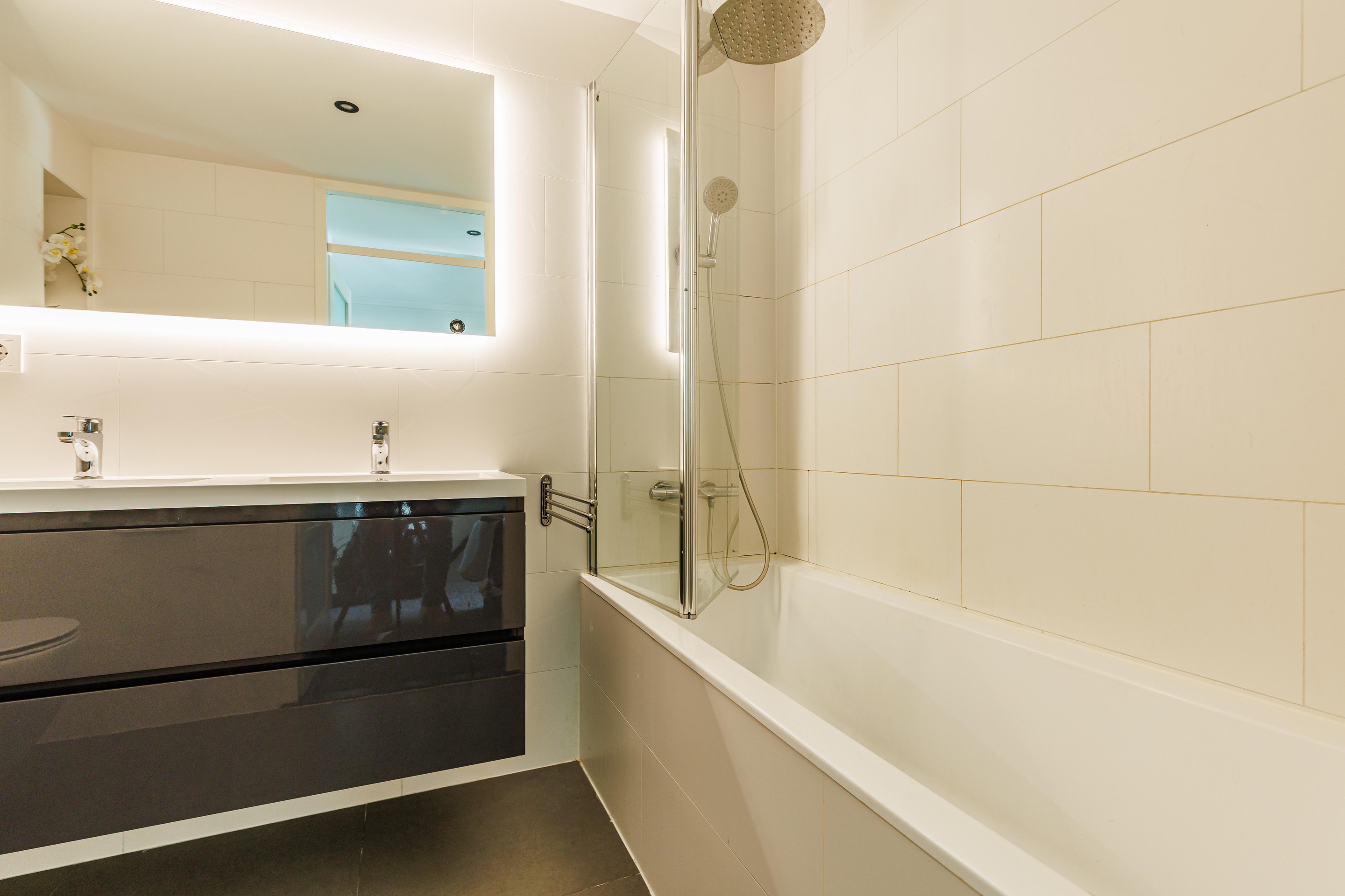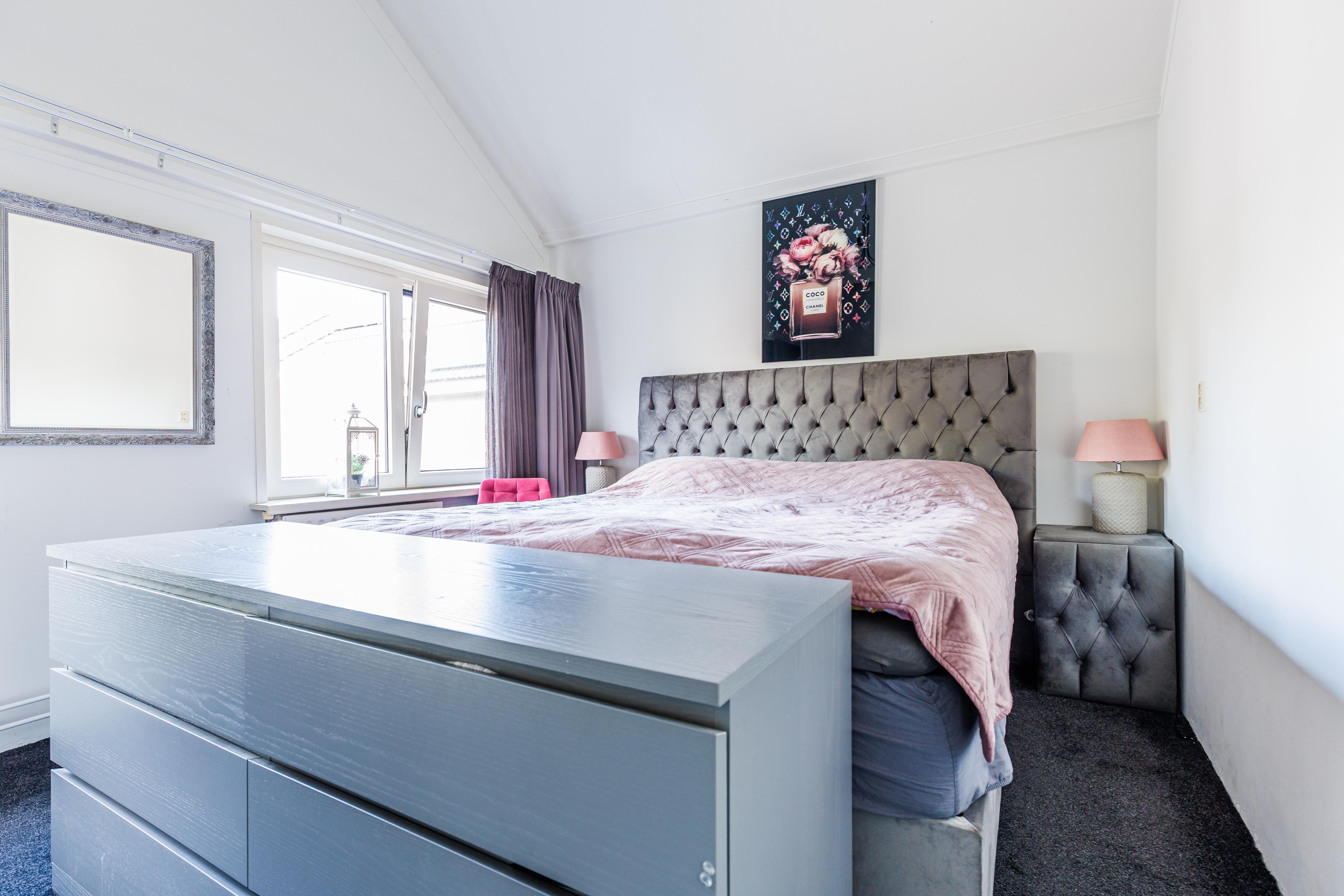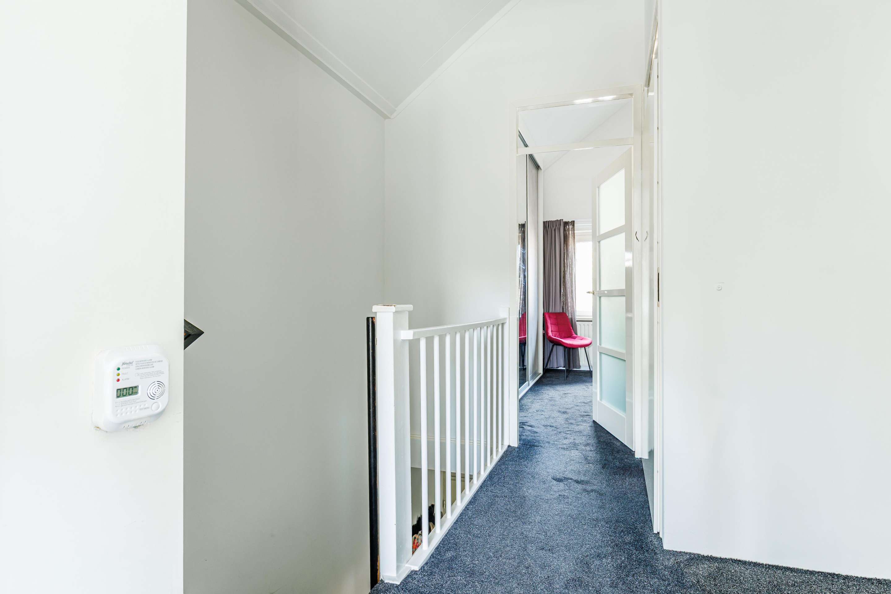 De overloop biedt toegang tot een vaste kast met opstelling voor wasmachine, droger en de Intergas cv-ketel (2019). Er zijn twee slaapkamers aanwezig, beide voorzien van gestucte wanden en vloerbedekking. De badkamer (2023) is een echte blikvanger: modern ingericht met een ligbad, tweede toilet en een dubbel wastafelmeubel. Daarnaast is er een kleine vliering bereikbaar vanaf de overloop, ideaal voor het opslaan van spullen die u niet dagelijks nodig heeft.