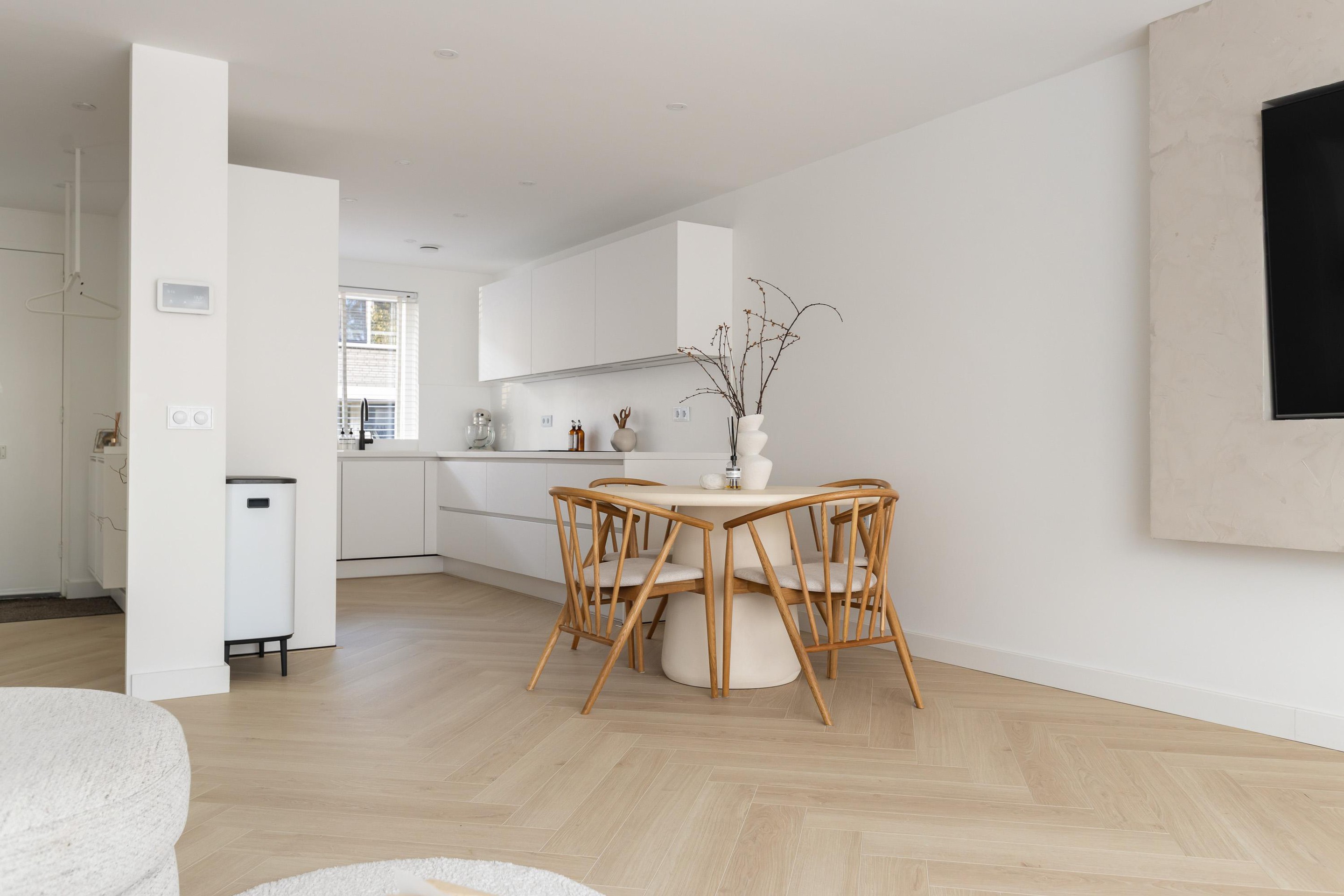 Stap de hal binnen en je voelt direct dat dit geen doorsnee tussenwoning is. De afgelopen jaren – van 2022 tot 2024 – is werkelijk álles aangepakt. In deze fijne gezinswoning is gekozen voor rustgevend zandkleurig stucwerk en warme Japandi-invloeden, met soms een knipoog naar de luxe van Dubai hotels. Elke ruimte ademt harmonie en stijl.