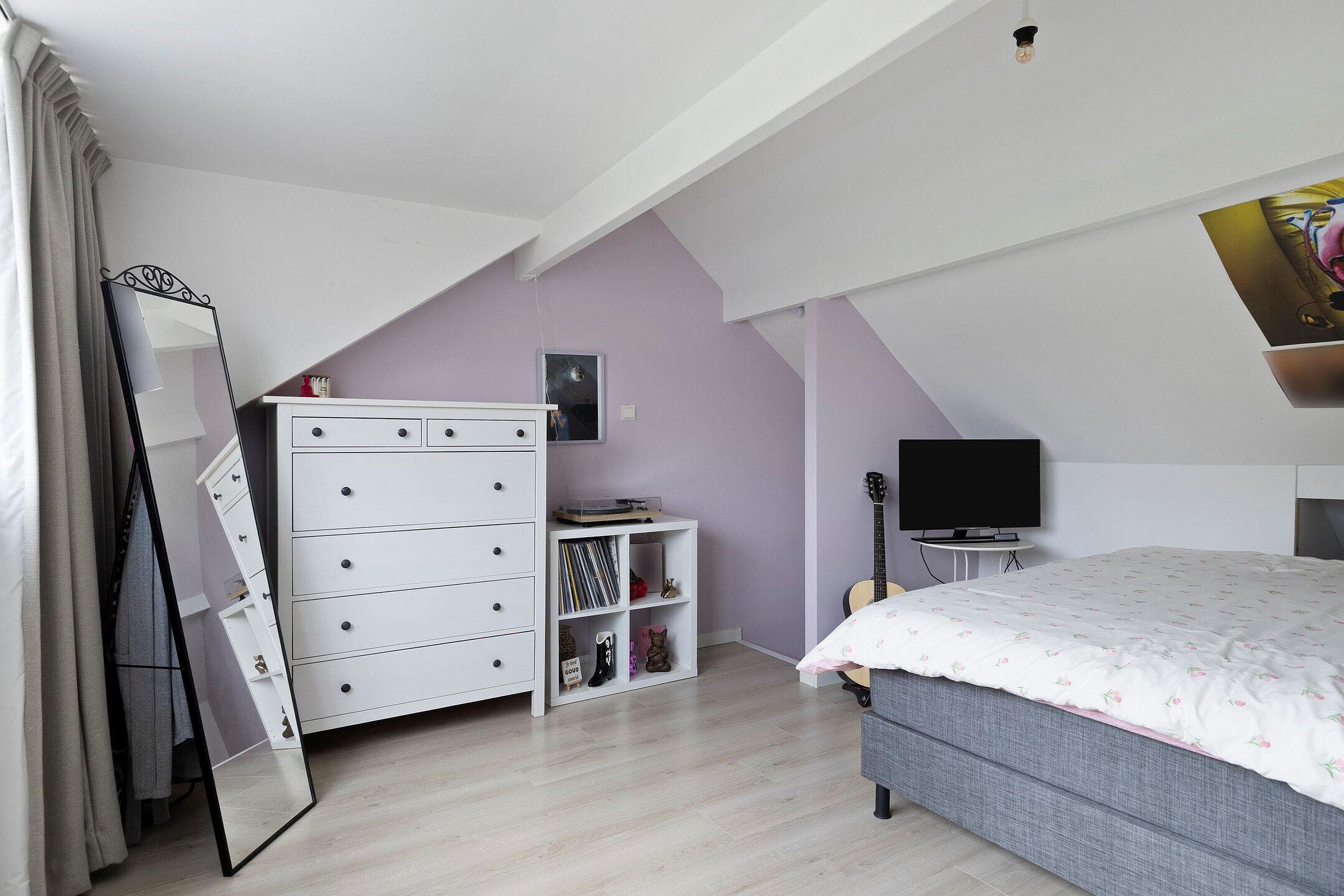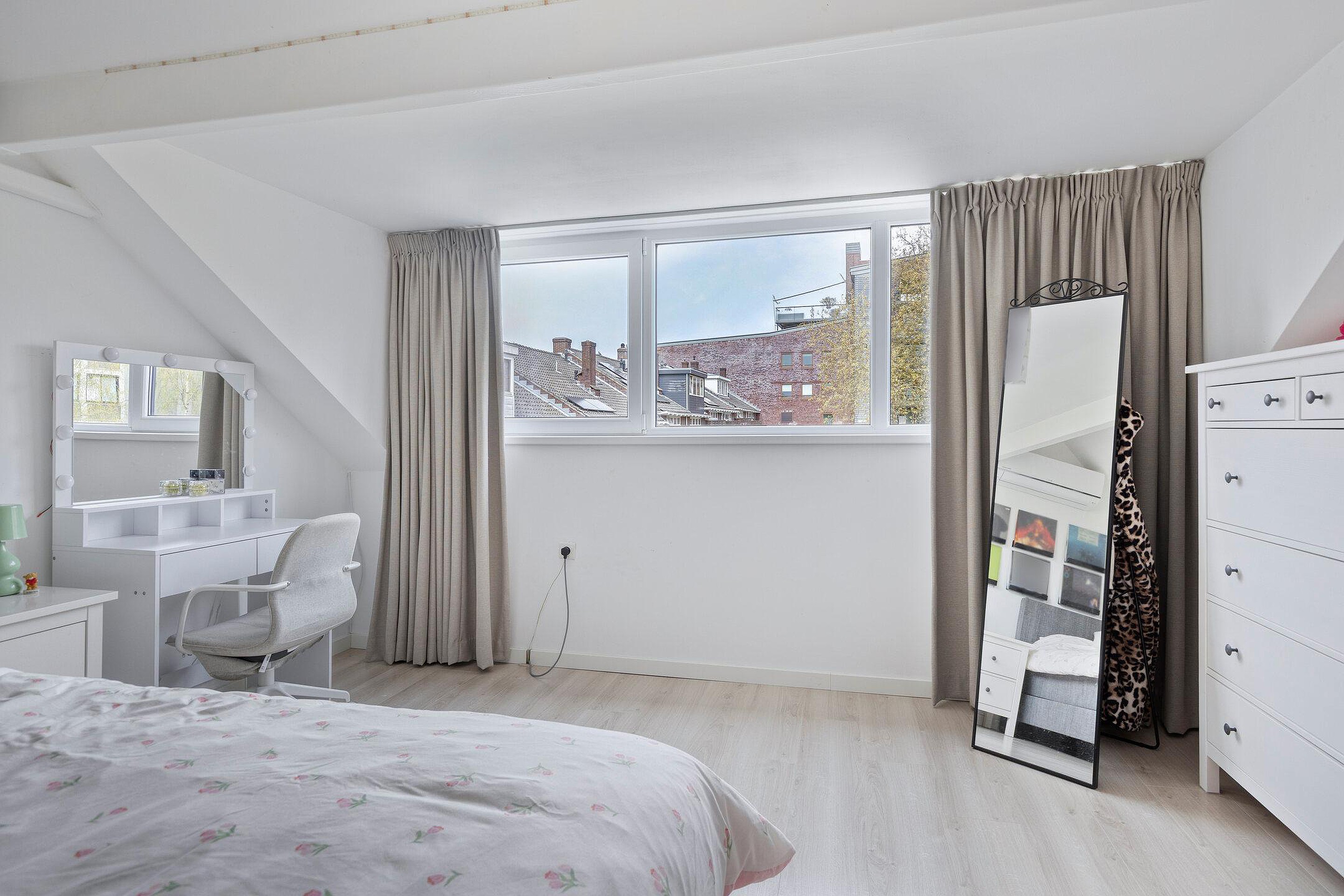 Ruime slaapkamer voorzien van dakkapel, gelegen aan de voorzijde van de woning.