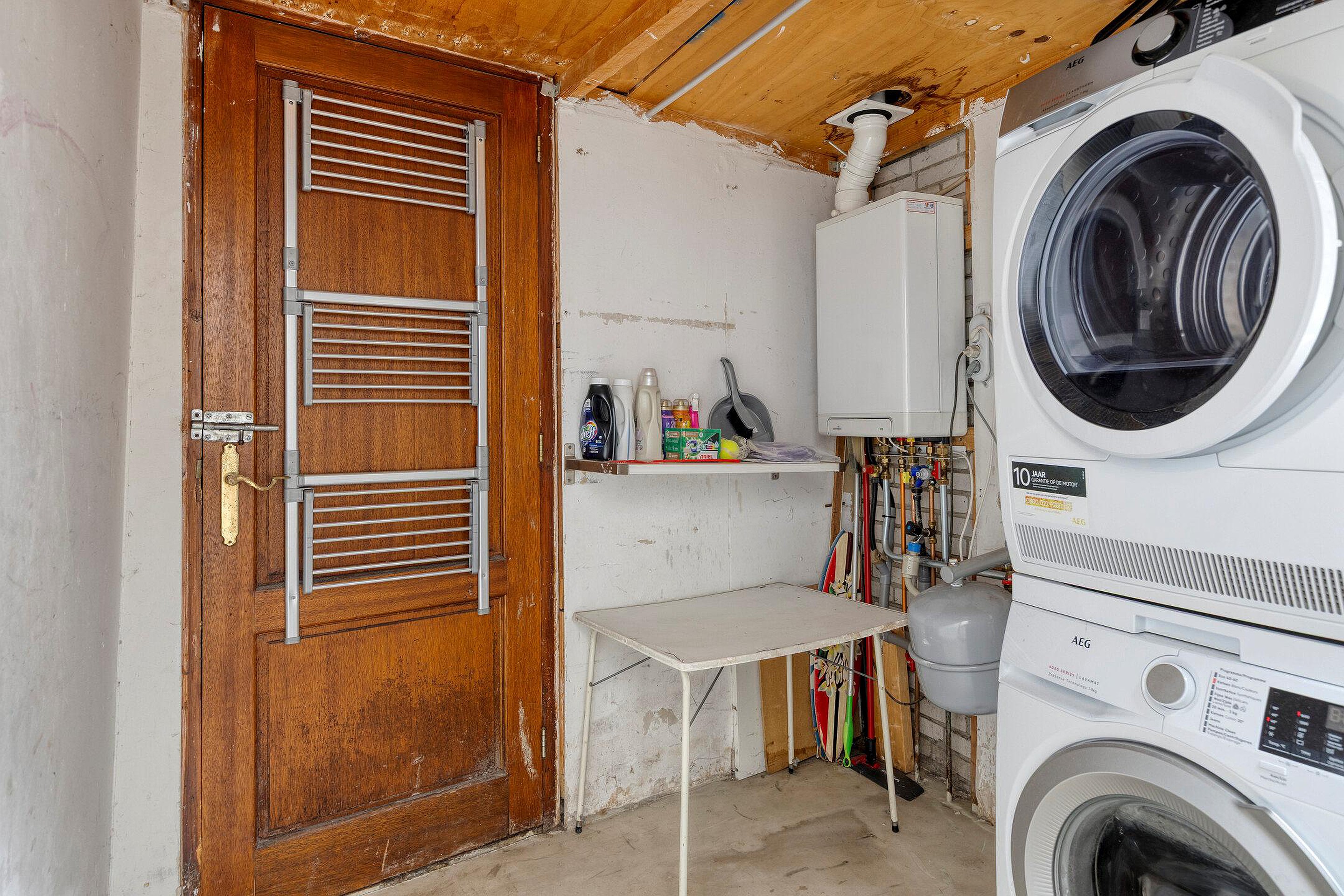 Hier bevindt zich de aansluiting voor was apparatuur. Tevens heeft u hier toegang tot het achterom.