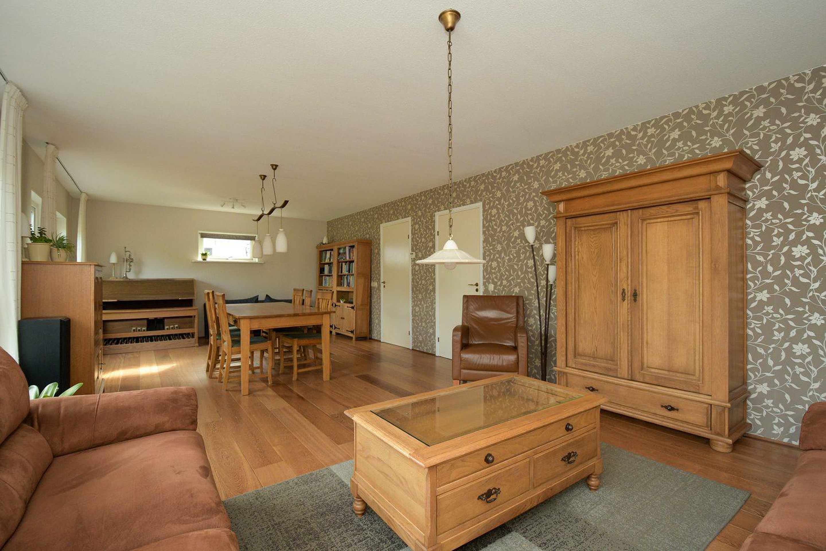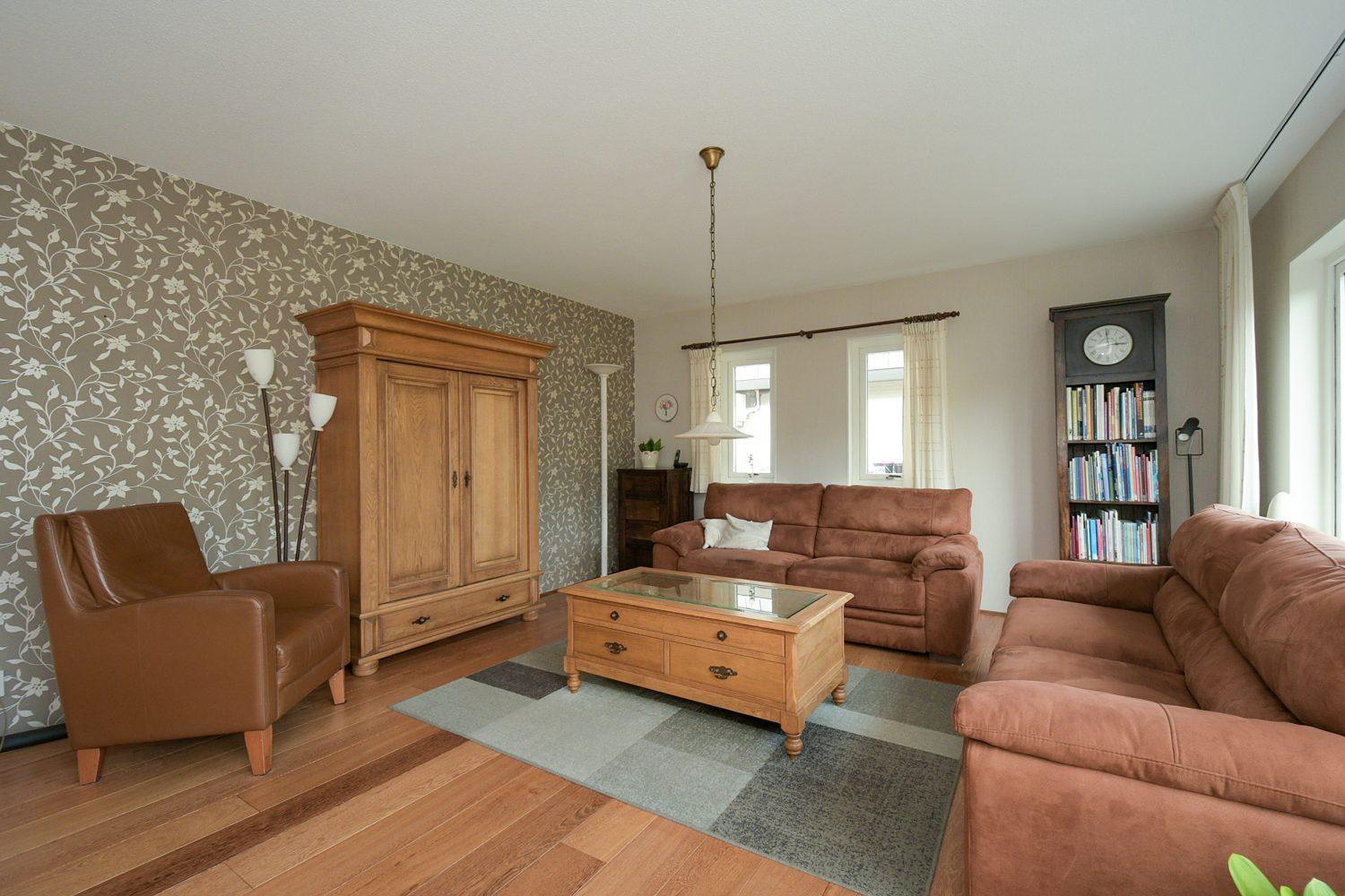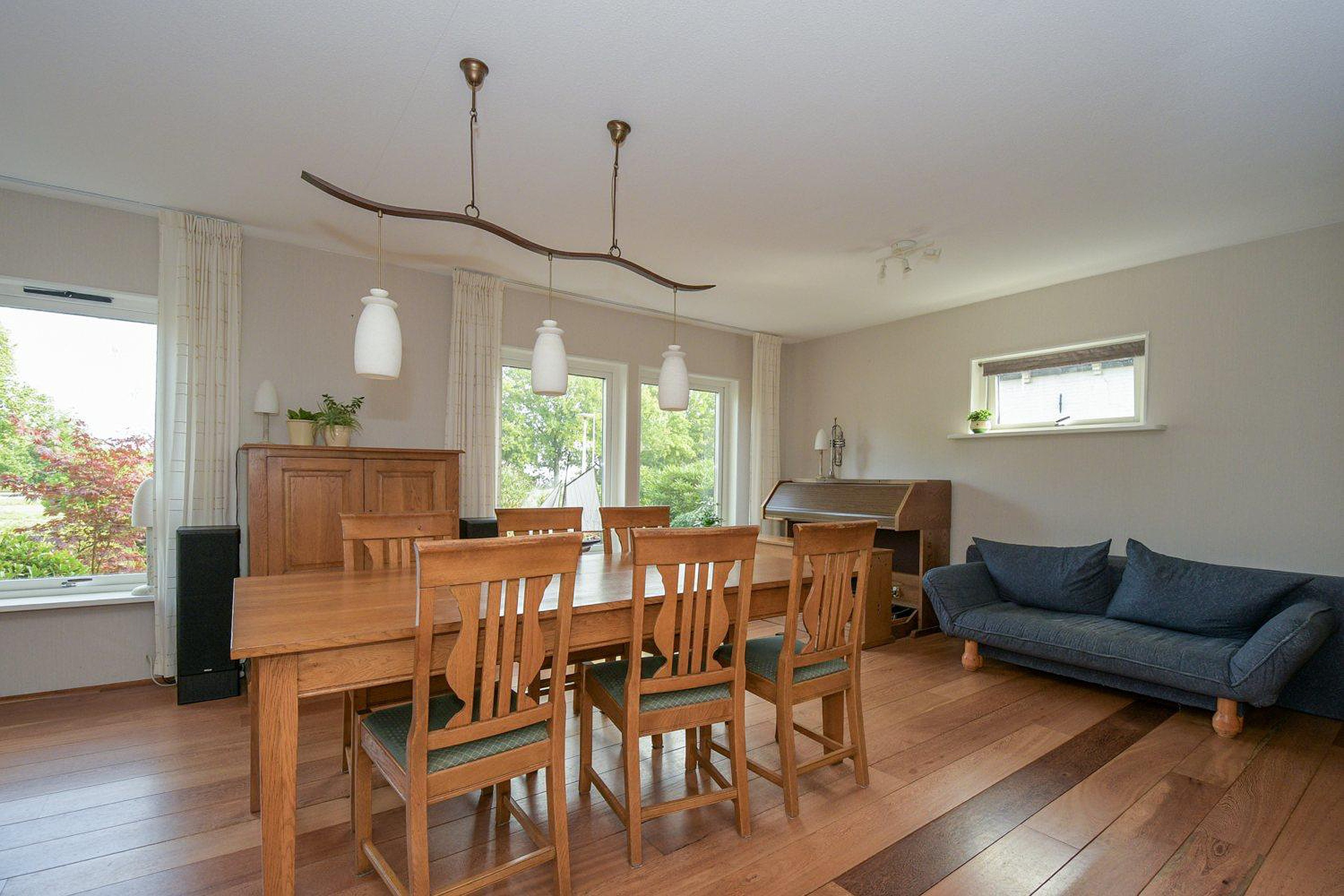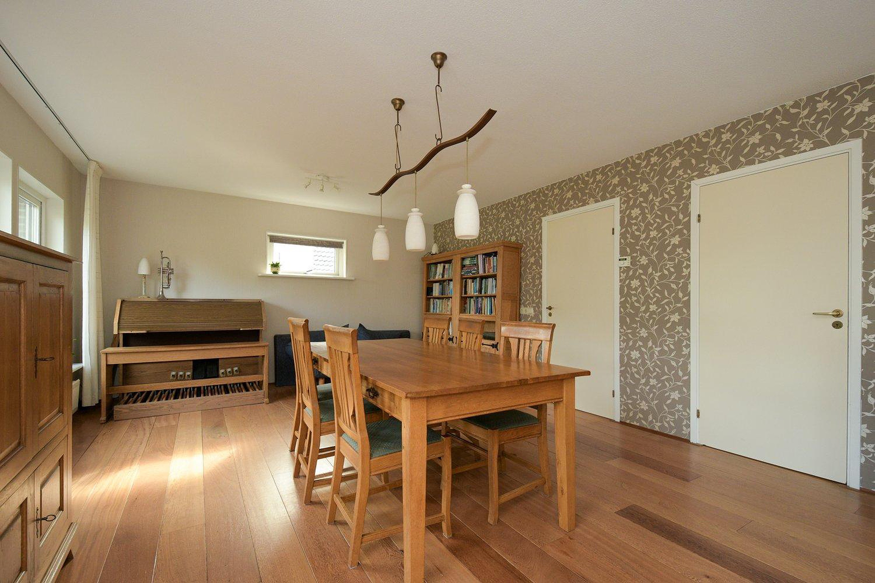 Begane grond Entree, modern toilet (wandcloset) met fonteintje, meterkast, vaste kasten, trapopgang naar eerste verdieping, ruime kelder van ca 15 m2 met stahoogte. De woonkamer met een oppervlakte van ca 43 m2 bevindt zich aan de voorzijde en beslaat de volle breedte van de woning. In deze ruime lichte woonkamer ligt een massieve hardhouten vloer met een dikte van 25 mm. De kozijnen zijn voorzien van triple glas, wat een uitstekende geluidsisolatie biedt.