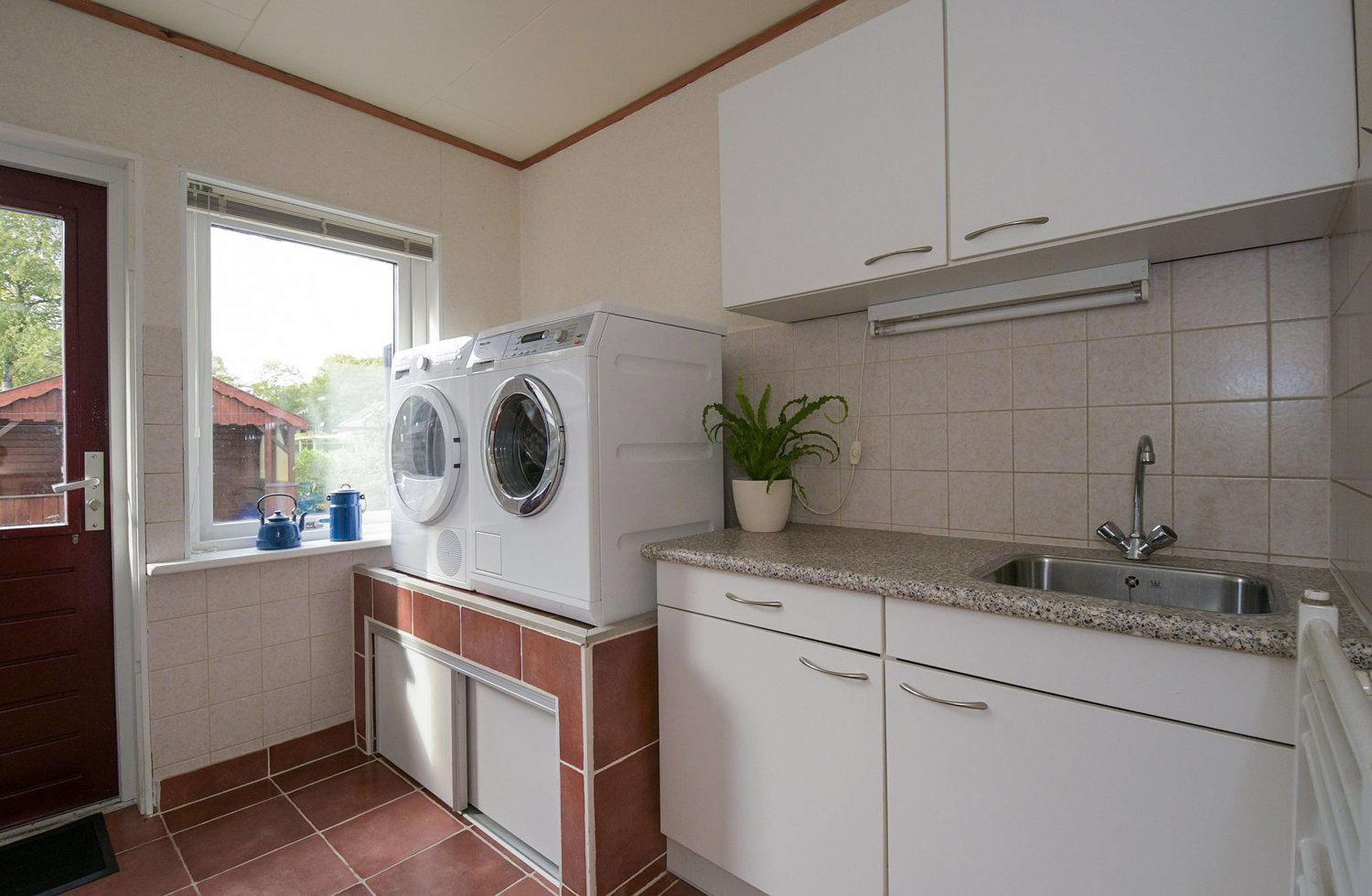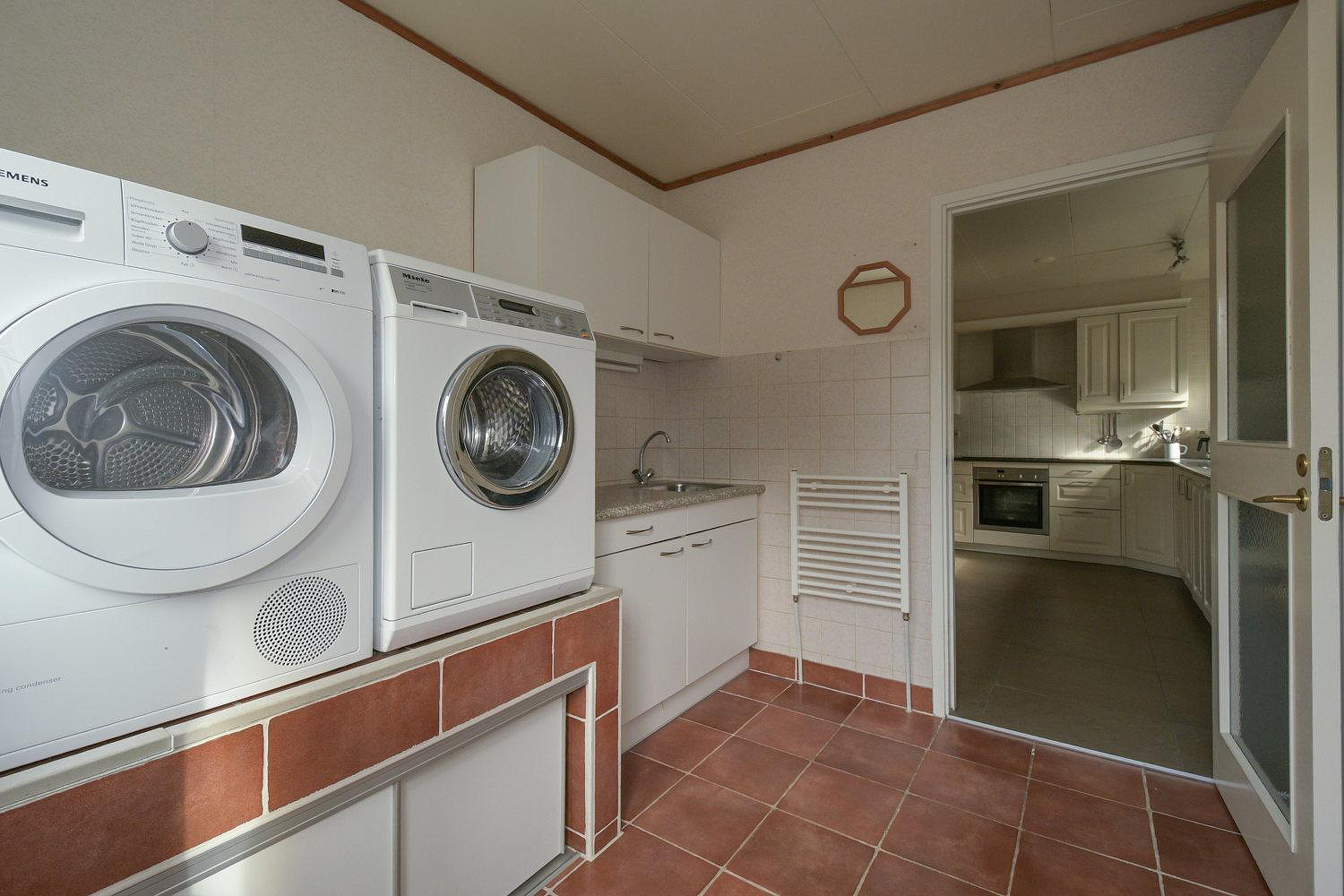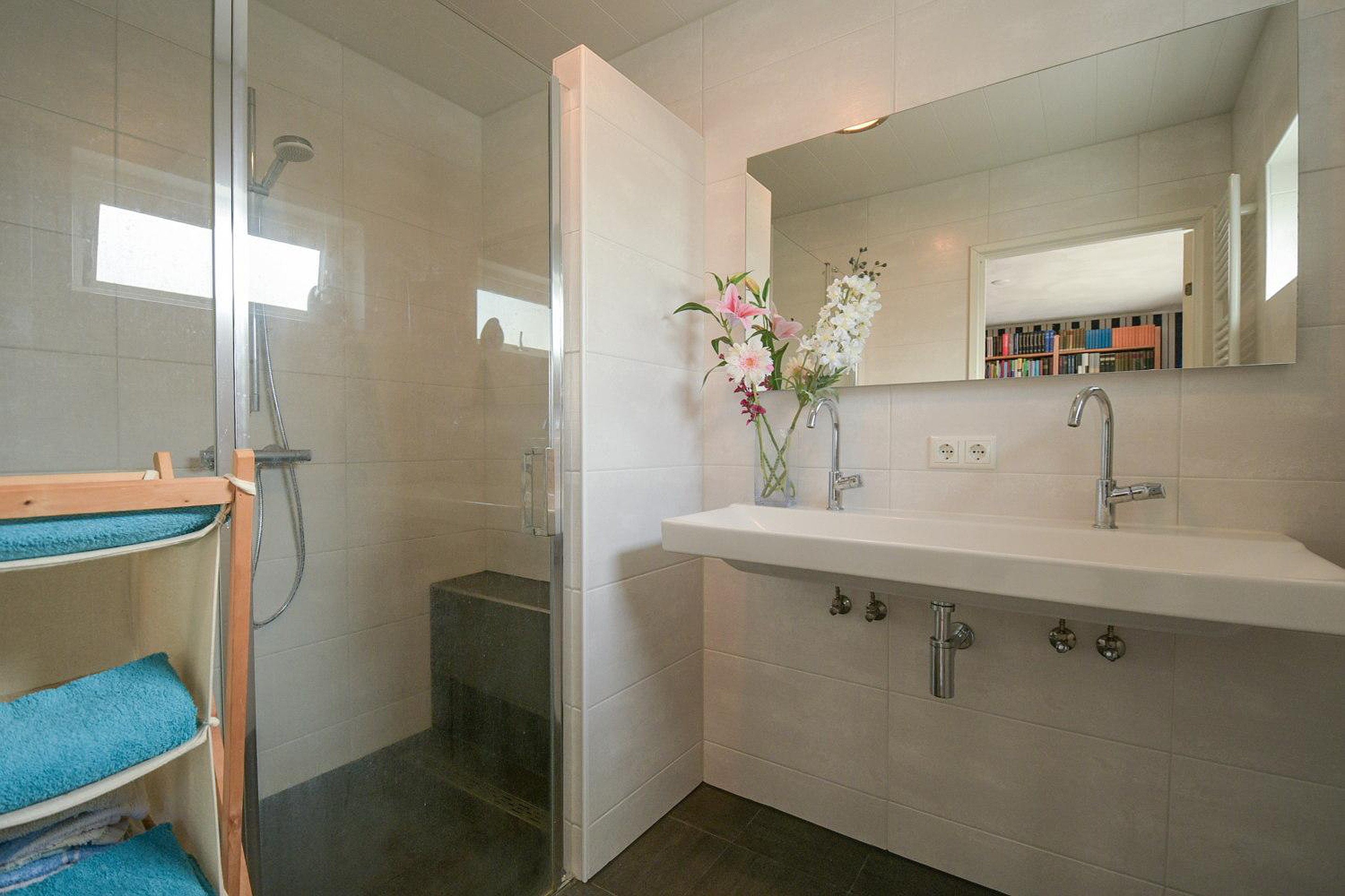 De gesloten moderne keuken met vloerverwarming is toegankelijk vanuit de woonkamer en de hal. De keuken beschikt over diverse inbouwapparatuur, waaronder; boiler, inductie kookplaat, heteluchtoven, koelkast en vaatwasser (Neff). Vanuit de keuken is er direct toegang tot de bijkeuken met opstelplaats voor witgoed. Vanuit de hal is de werkkamer/slaapkamer met badkamer bereikbaar. De moderne badkamer met vloerverwarming is in 2020 vernieuwd en heeft een ruime inloopdouche met zitgedeelte en een dubbele wastafel.