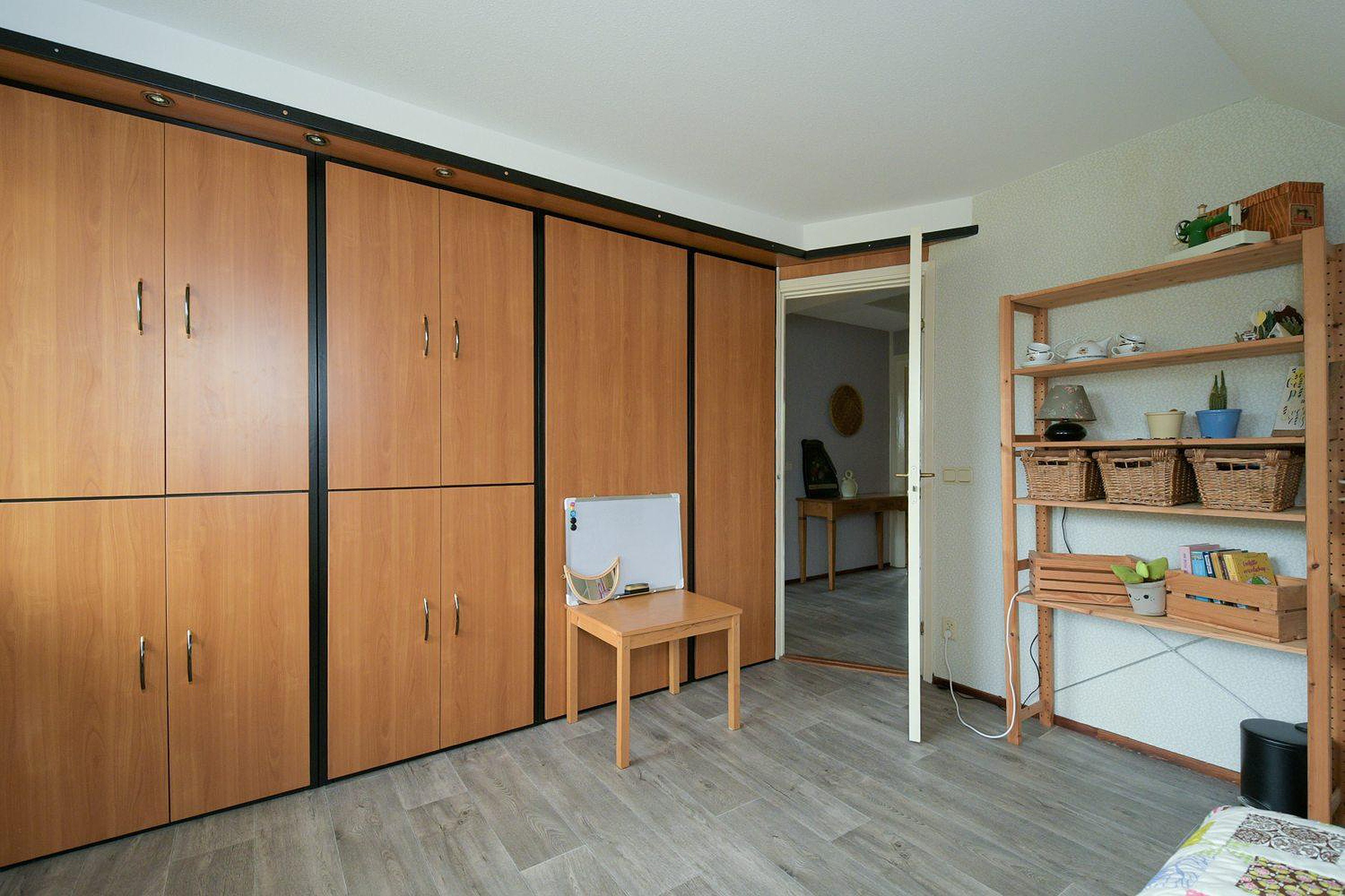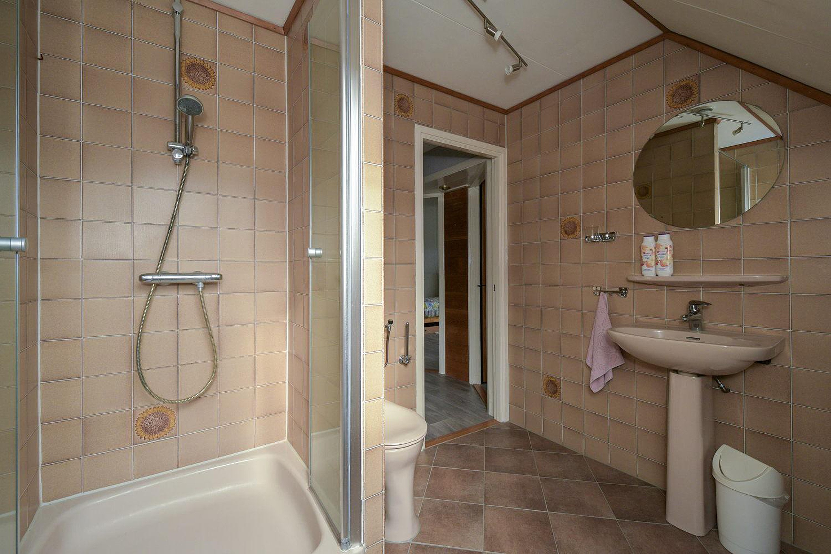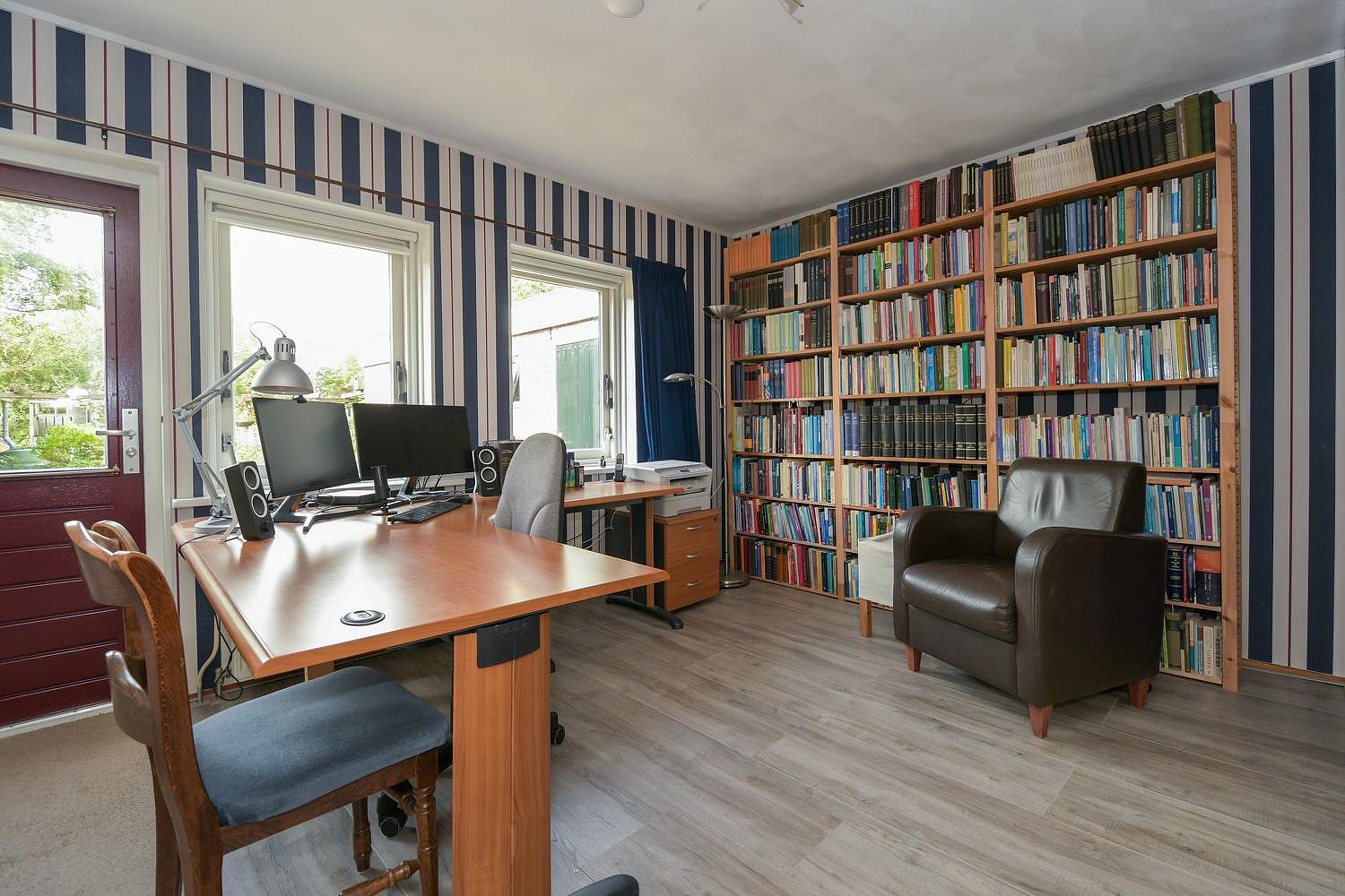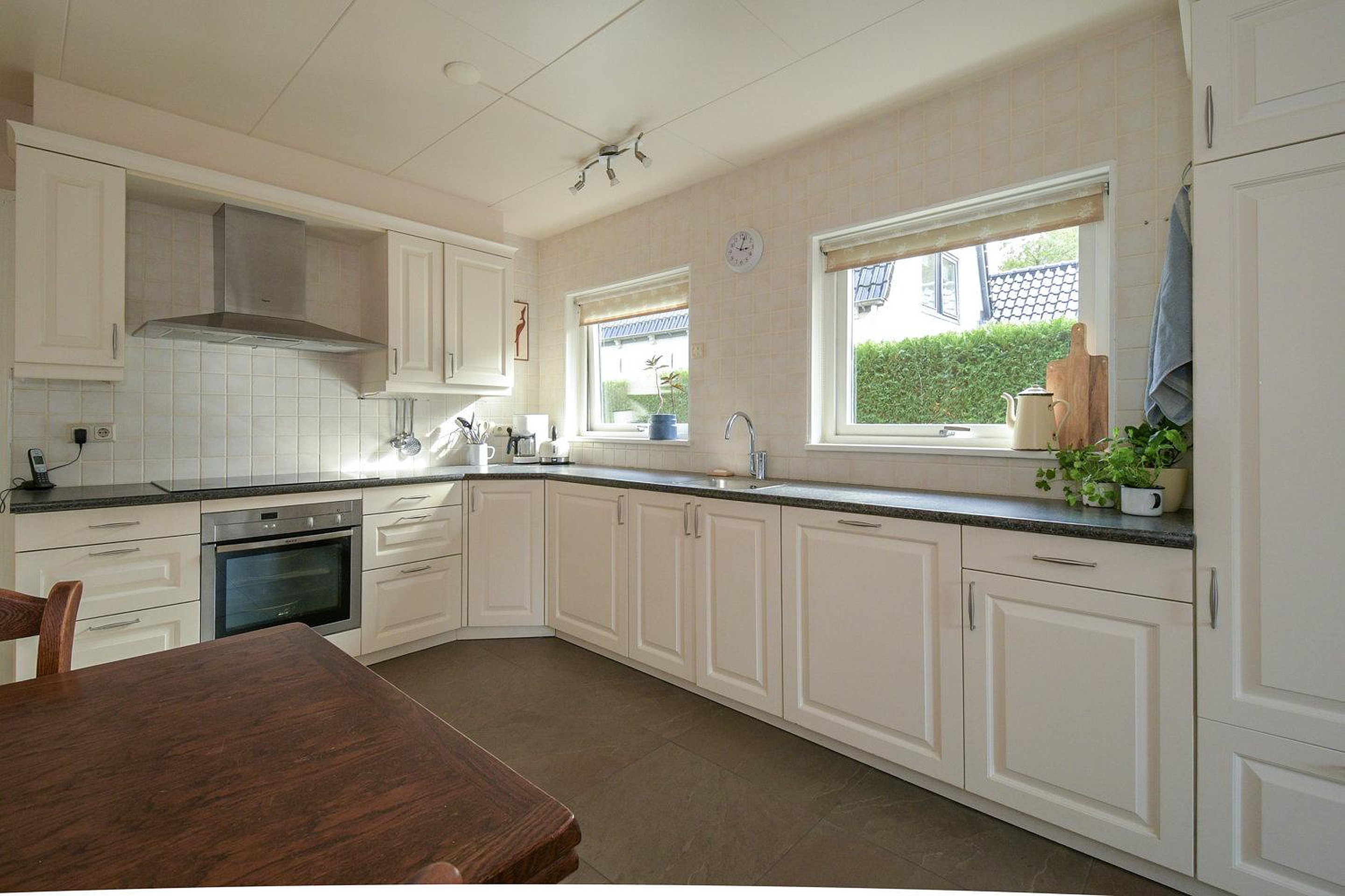 De gesloten moderne keuken met vloerverwarming is toegankelijk vanuit de woonkamer en de hal. De keuken beschikt over diverse inbouwapparatuur, waaronder; boiler, inductie kookplaat, heteluchtoven, koelkast en vaatwasser (Neff). Vanuit de keuken is er direct toegang tot de bijkeuken met opstelplaats voor witgoed. Vanuit de hal is de werkkamer/slaapkamer met badkamer bereikbaar. De moderne badkamer met vloerverwarming is in 2020 vernieuwd en heeft een ruime inloopdouche met zitgedeelte en een dubbele wastafel.