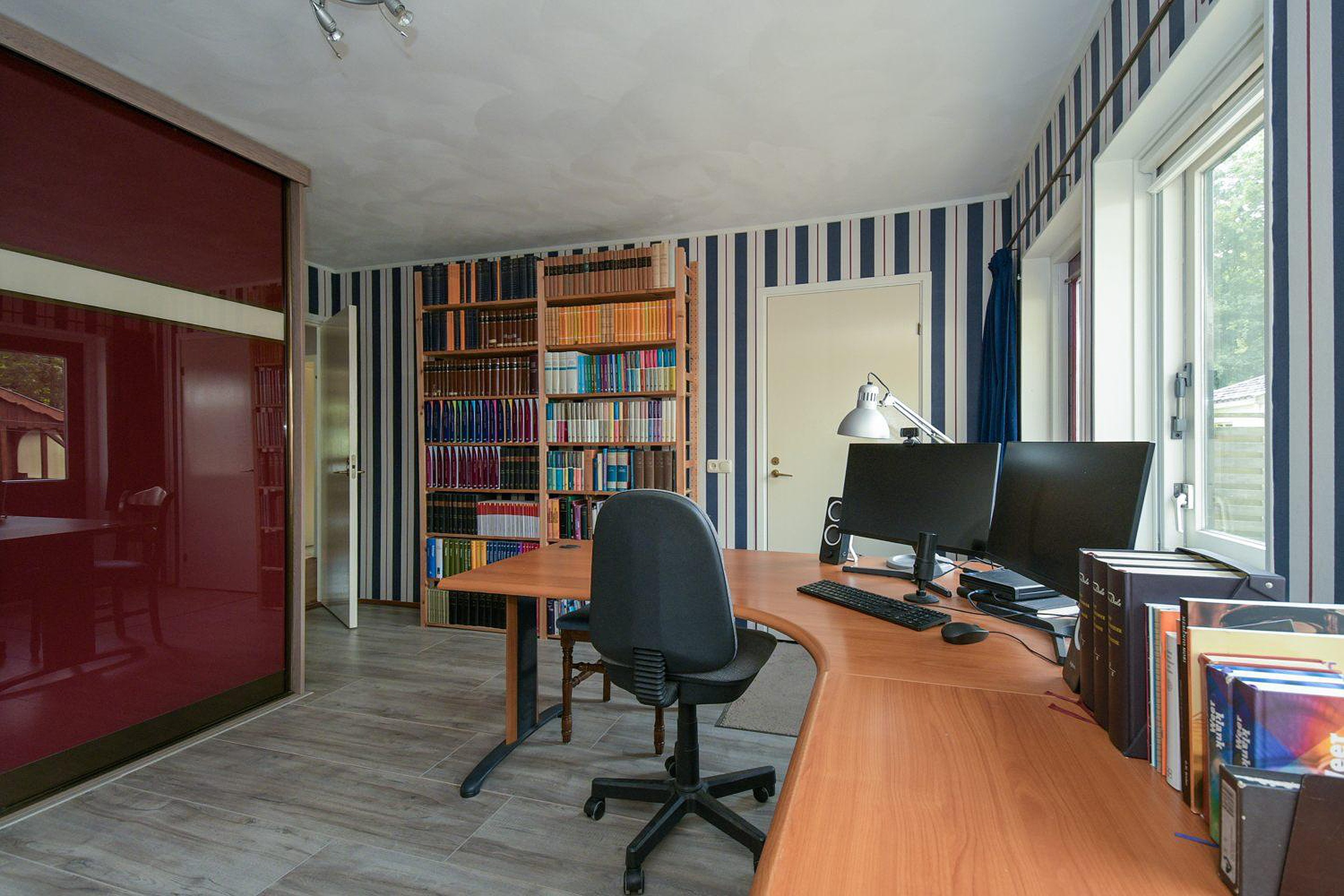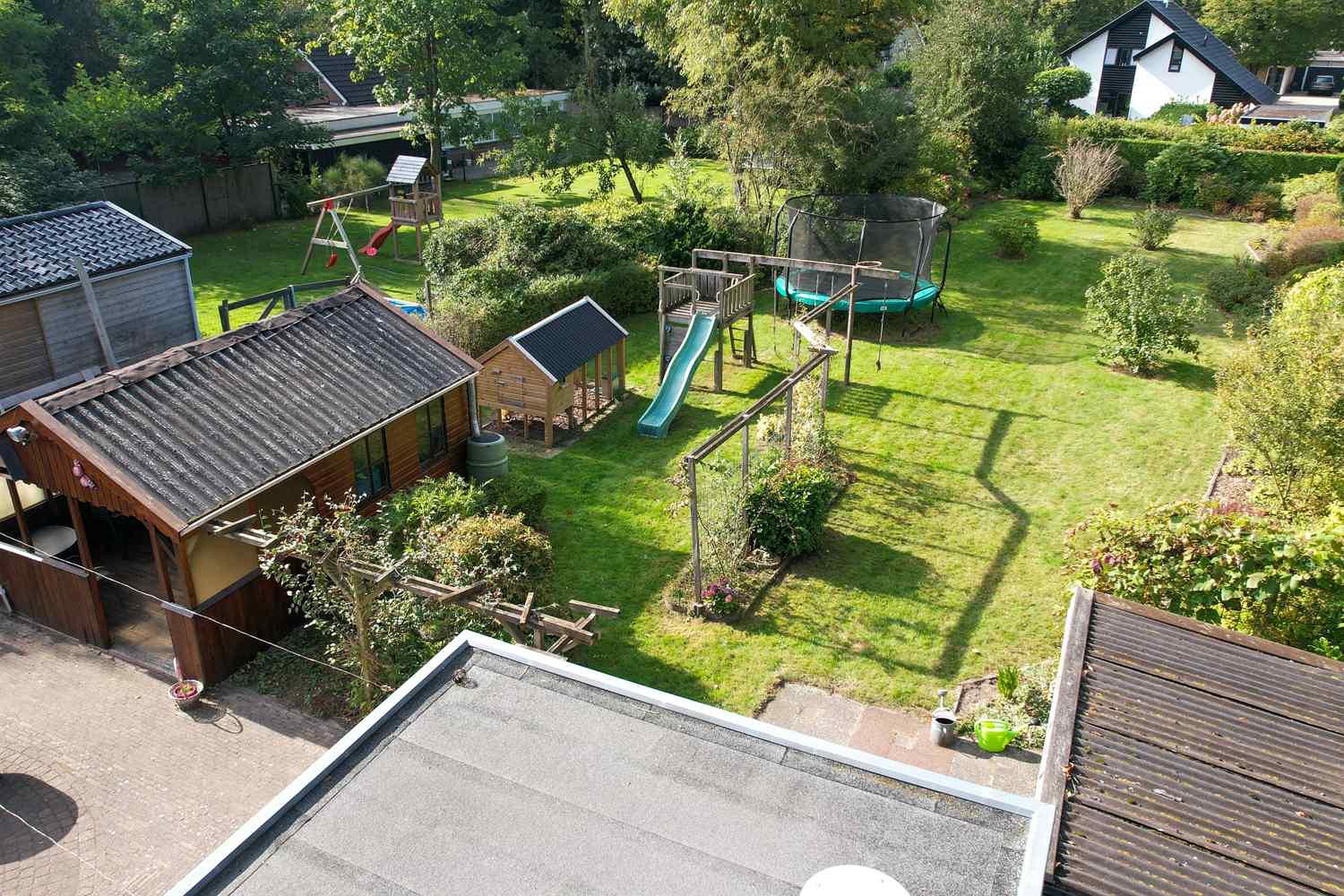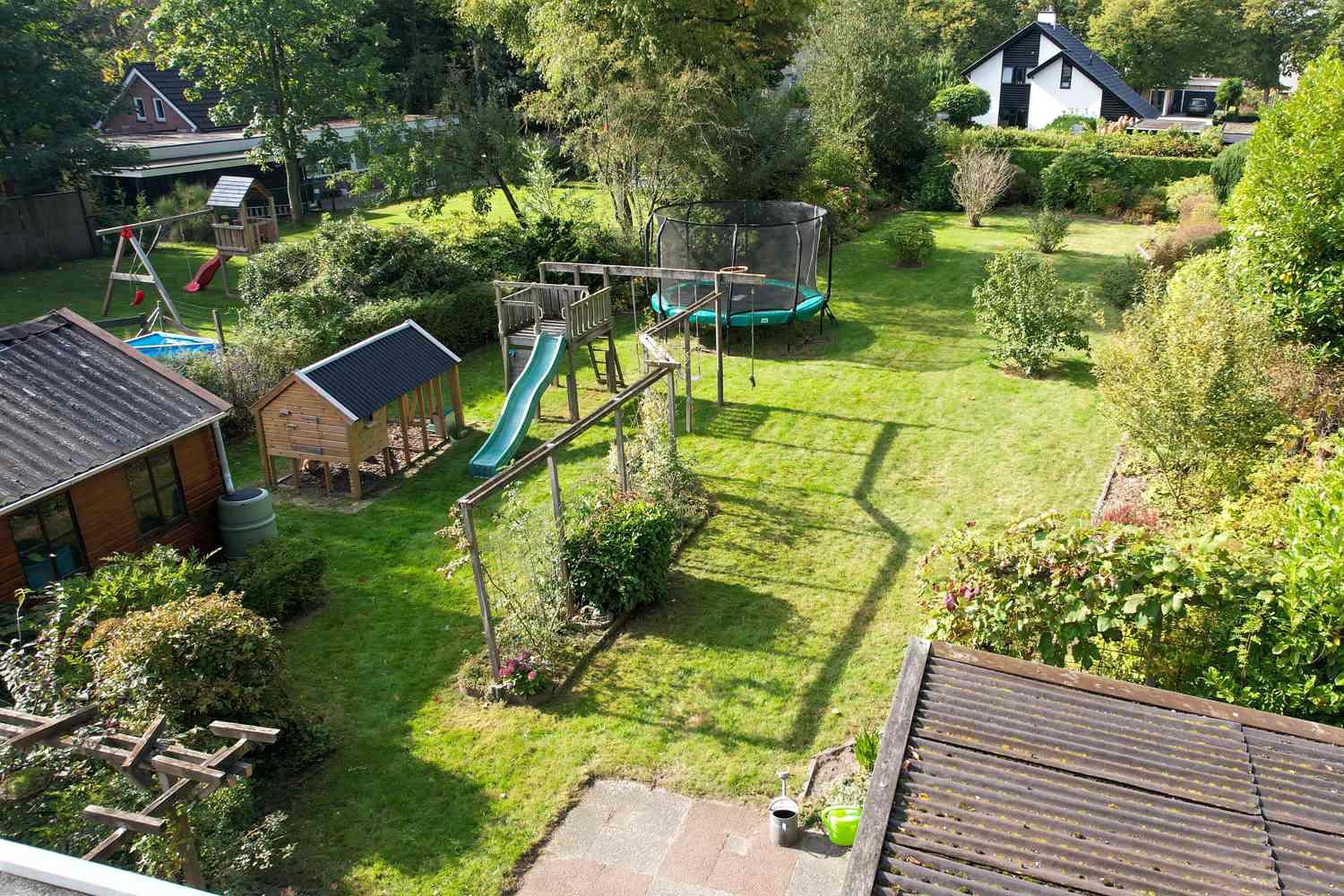 Mooie vrijstaande Zweedse woning op een indrukwekkend perceel van 1091 m2. Achter het huis de enorme, extra diepe tuin van maar liefst 705 m2, rijk aan groen en met volledige privacy. De verlengde garage met een lengte van ca. 12 meter is geschikt voor meerdere auto's. De woning is levensloopbestendig door de slaapkamer -nu in gebruik is als werkkamer- en de badkamer op de begane grond. De moderne badkamer is recentelijk vernieuwd en voorzien van vloerverwarming.