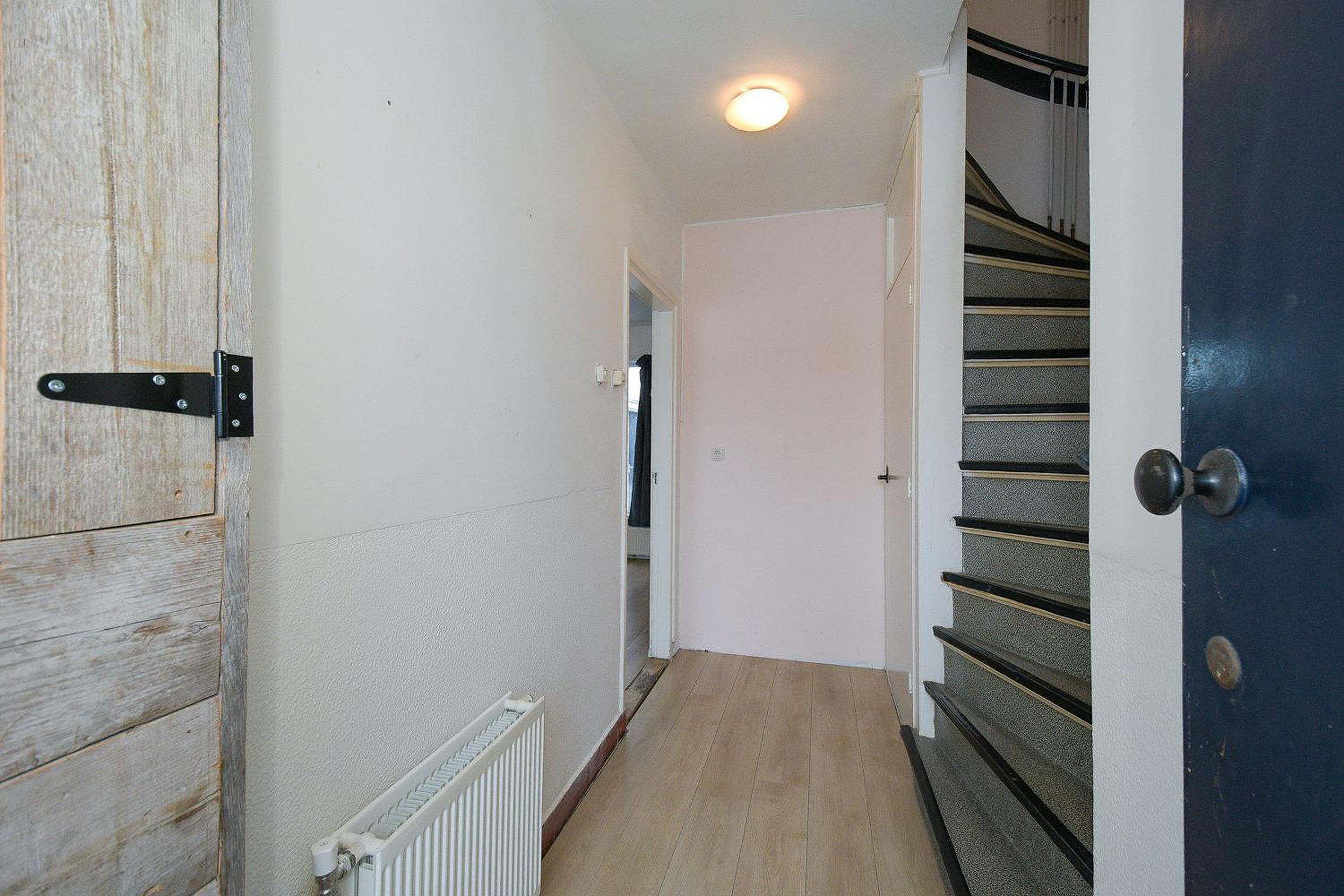 Entree, toilet, vernieuwde groepenkast/meterkast, trapkast en trapopgang naar eerste verdieping. De doorzon woonkamer met kunststof kozijnen biedt door de grote ramen veel natuurlijk lichtinval. Vanuit de achterkamer is er een directe toegang tot het terras.