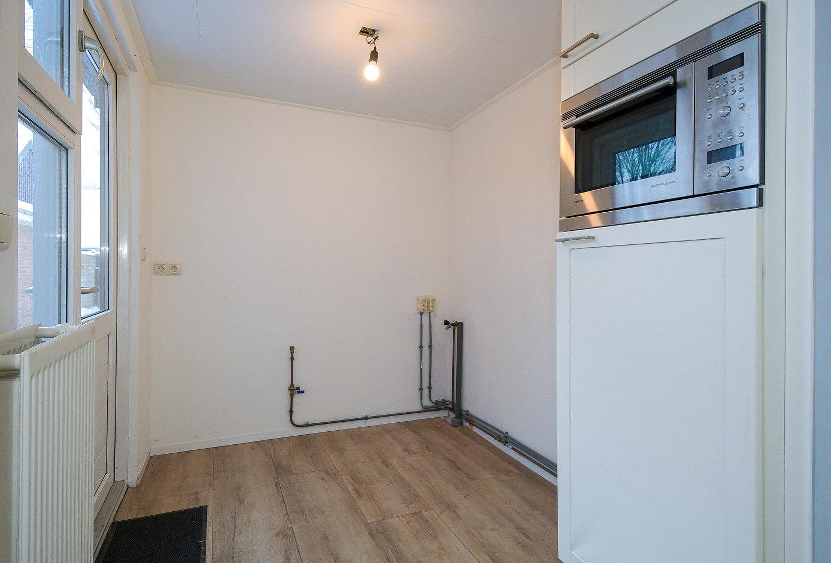 De straat is breed opgezet, waardoor er nauwelijks inkijk in de woonkamer is. Met de diepe achtertuin van circa 17 meter, gelegen op het westen, heb je voldoende privacy. De woning heeft een moderne luxe keuken, uitgerust met een fraai natuurstenen werkblad en hoogwaardige Siemens apparatuur.