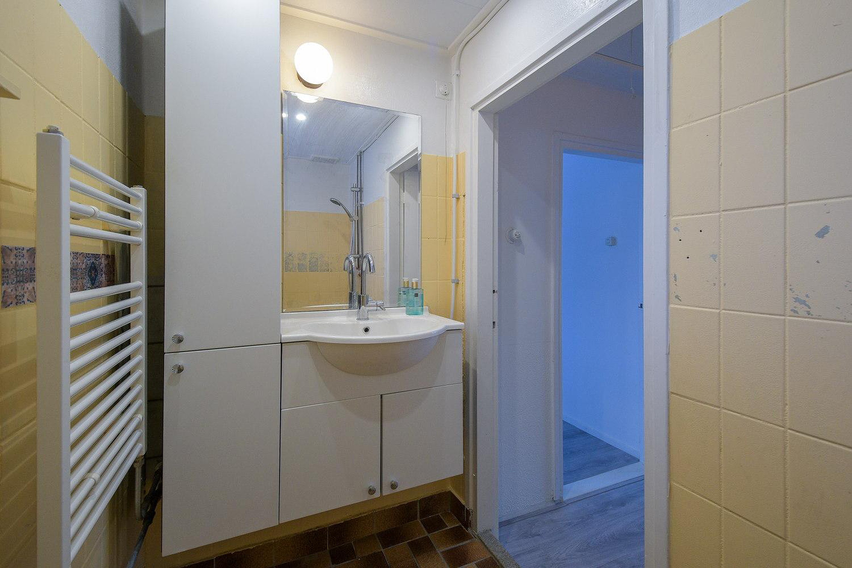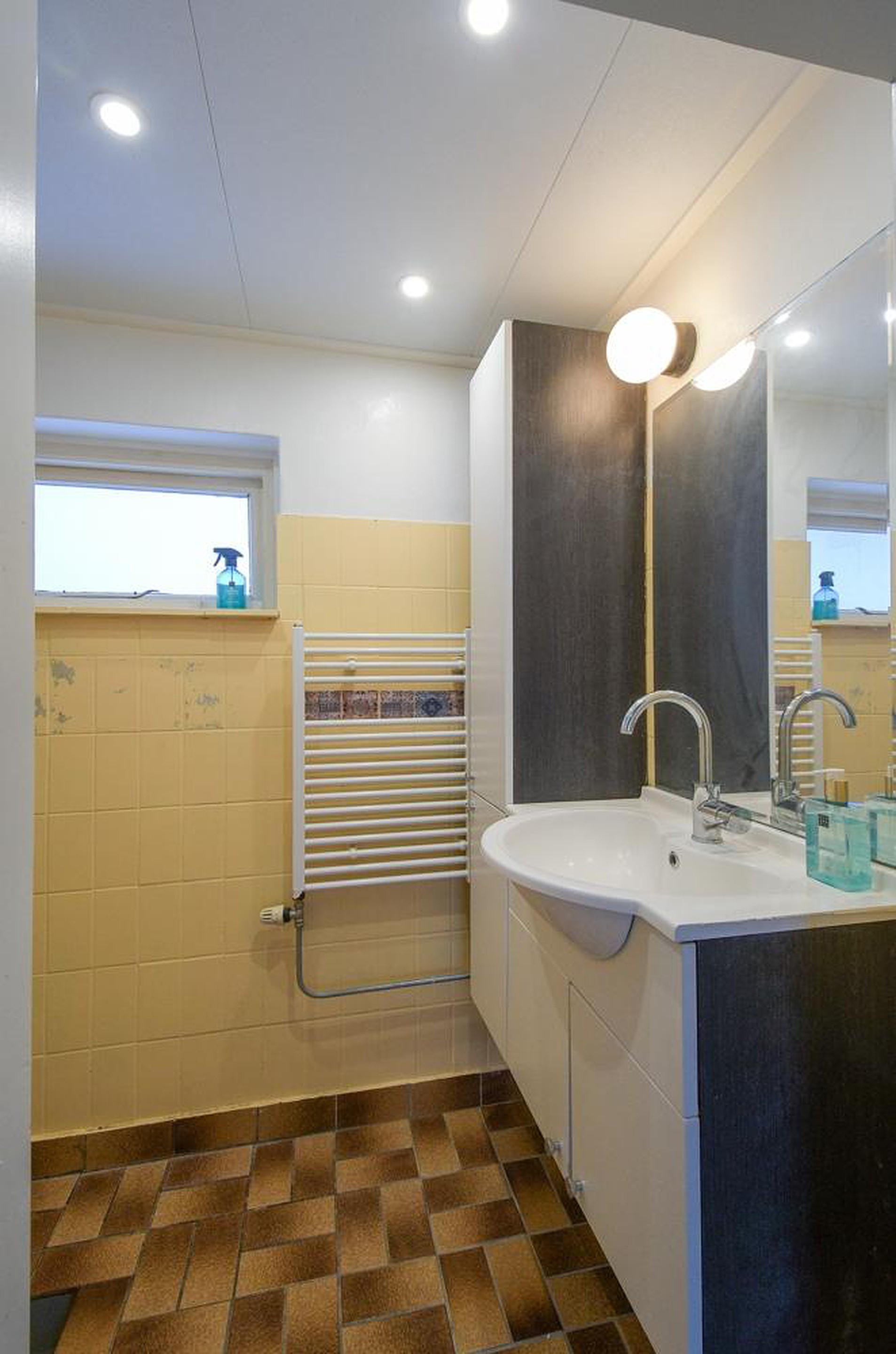 Op de eerste verdieping bevinden zich 3 slaapkamers met een oppervlakte van respectievelijk ca 9,7 m2, 9,6 m2 en 5,3 m2. De badkamer is eenvoudig en functioneel. In deze ruimte bevindt zich een douchehoek en een wastafelmeubel.