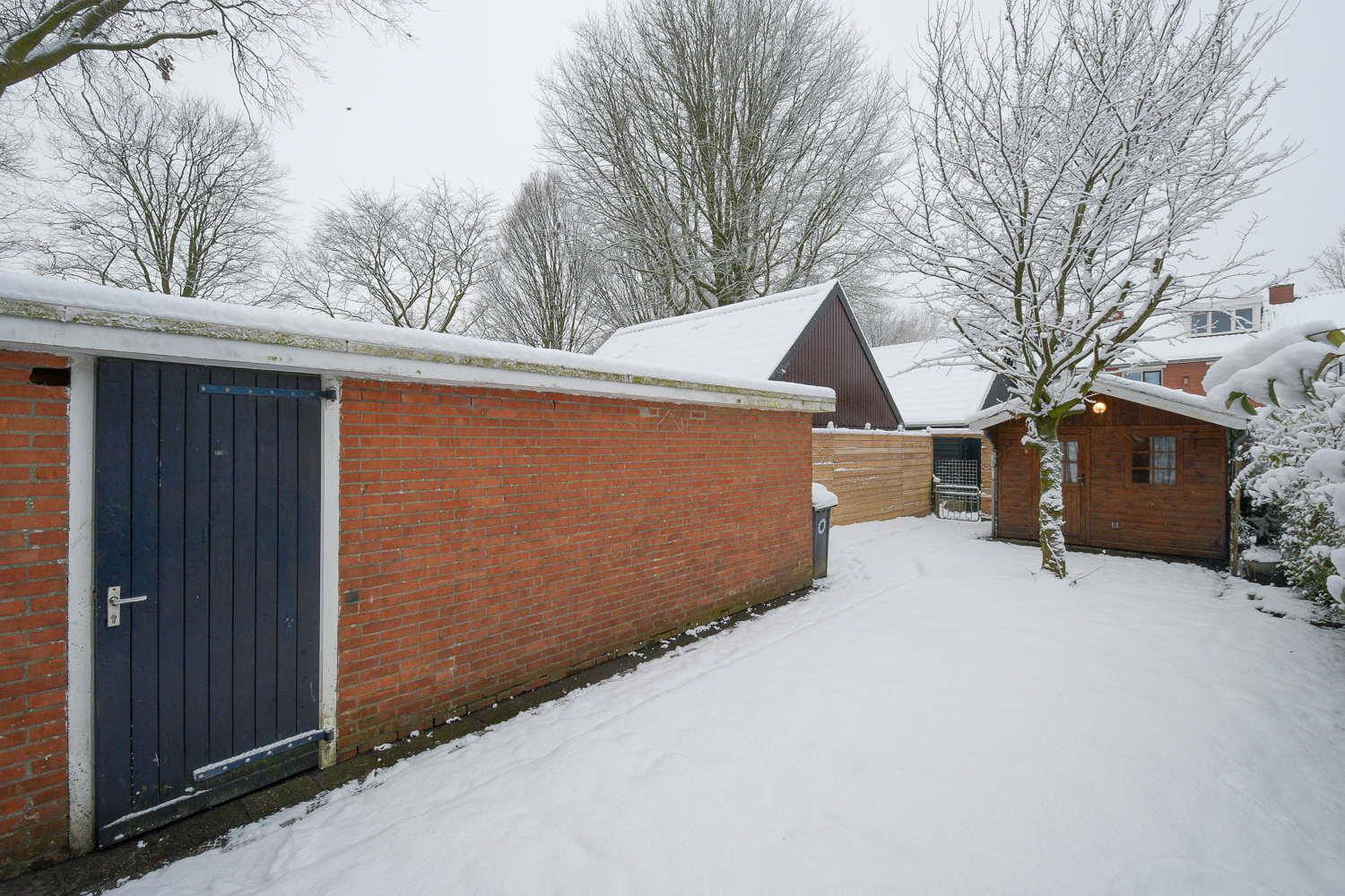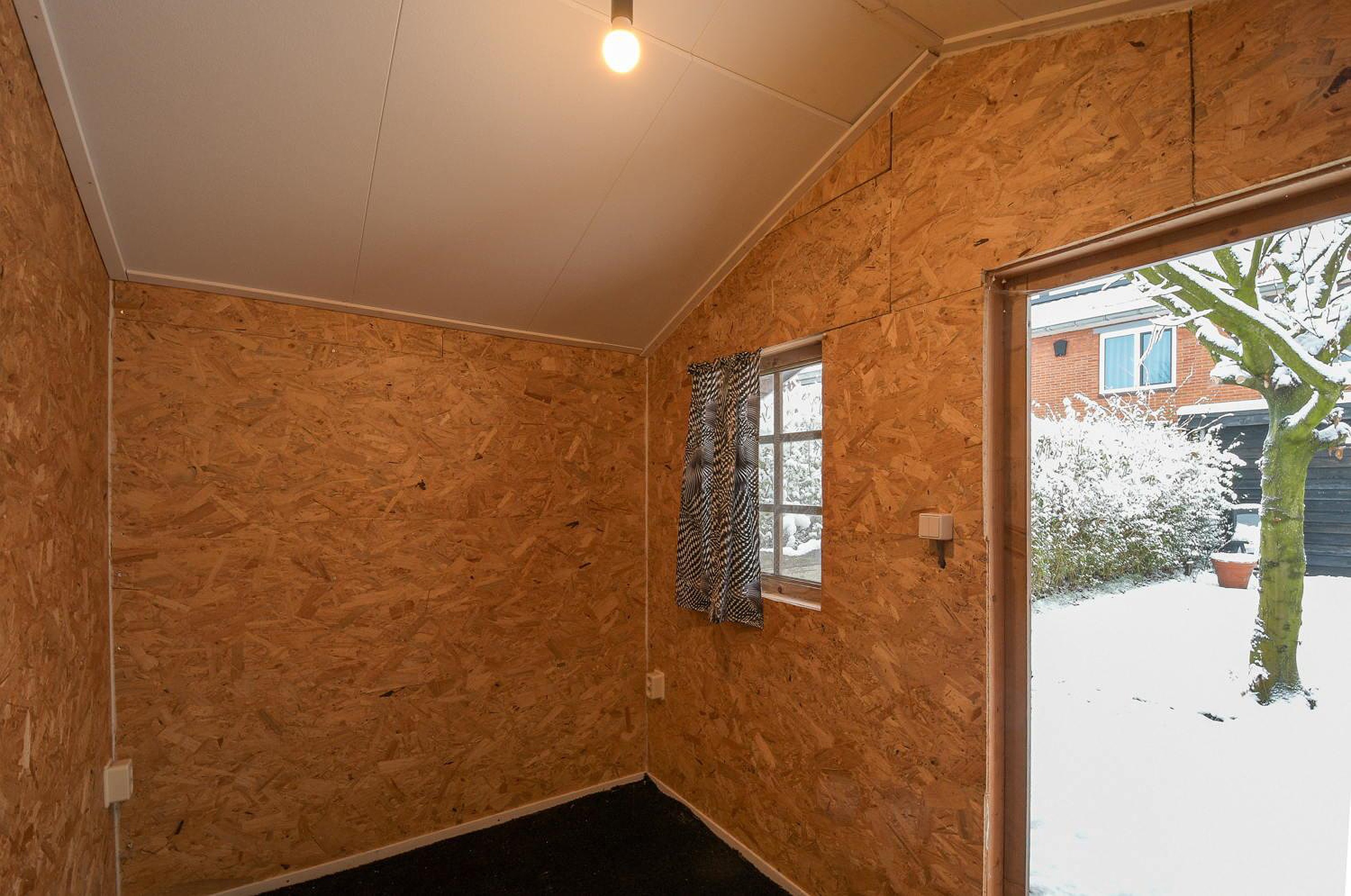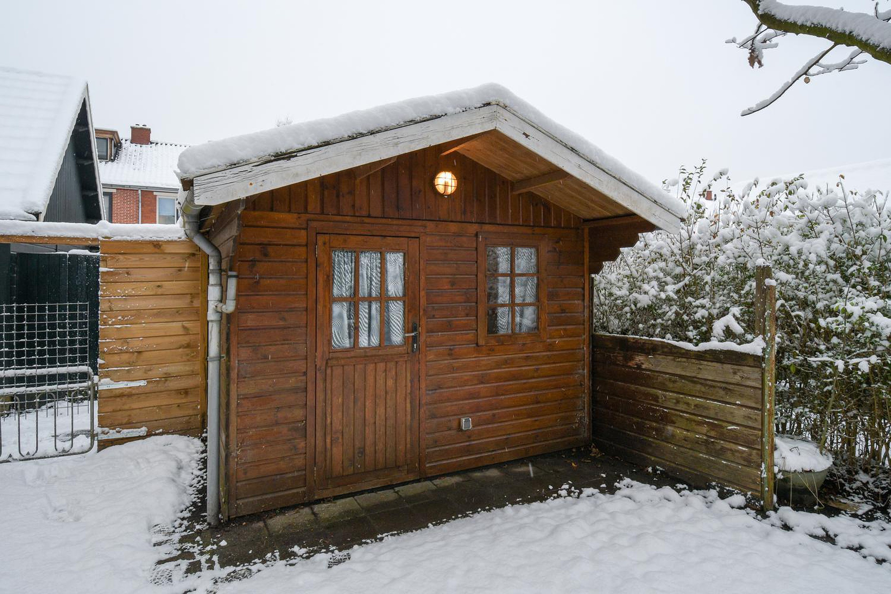 Een stenen berging en een sfeervol houten tuinhuisje van ca. 5 m2 bieden in de achtertuin volop opbergruimte. Het tuinhuisje is volledig geïsoleerd en voorzien van extra elektra. Is ook prima geschikt voor een kantoor/werkplek. Kortom een heerlijk plek om te wonen.