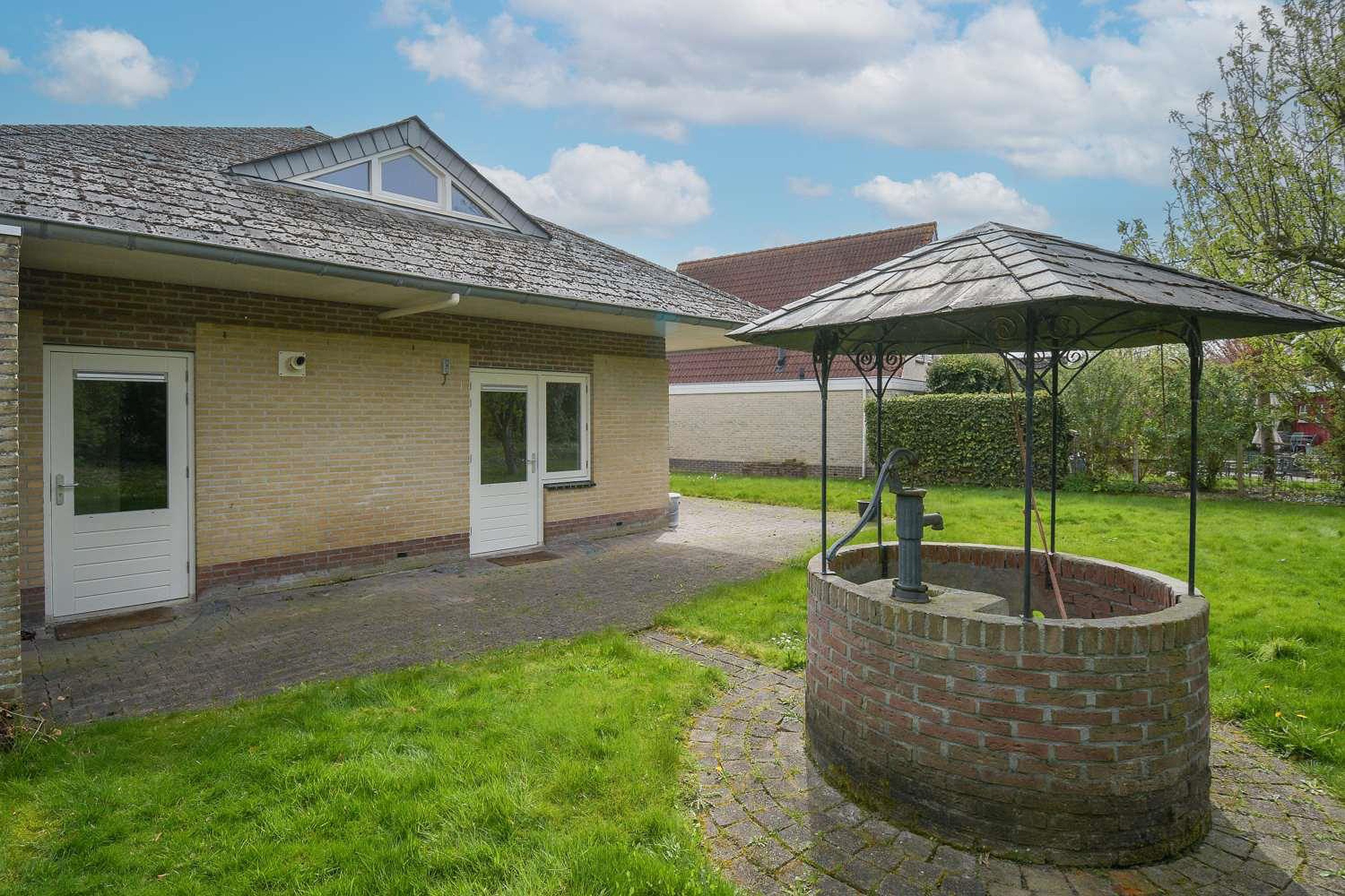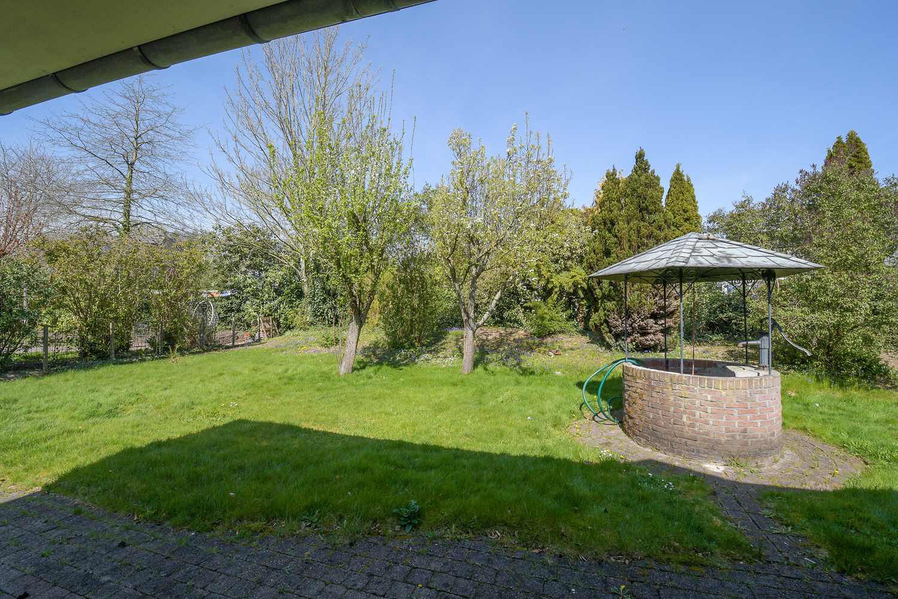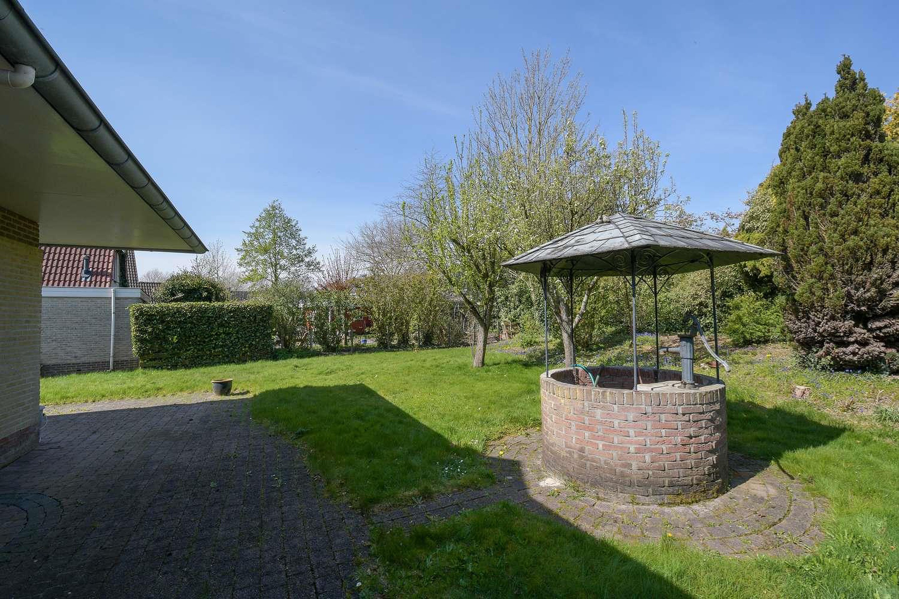Tuin De tuin is gelegen op het noordwesten. De groene achtertuin met bomen en struiken geeft voldoende privacy en beschutting. Er is een heuse stenen waterput waar met behulp van een dompelpomp het water uit kan worden gehaald om op droge dagen de tuin te sproeien.