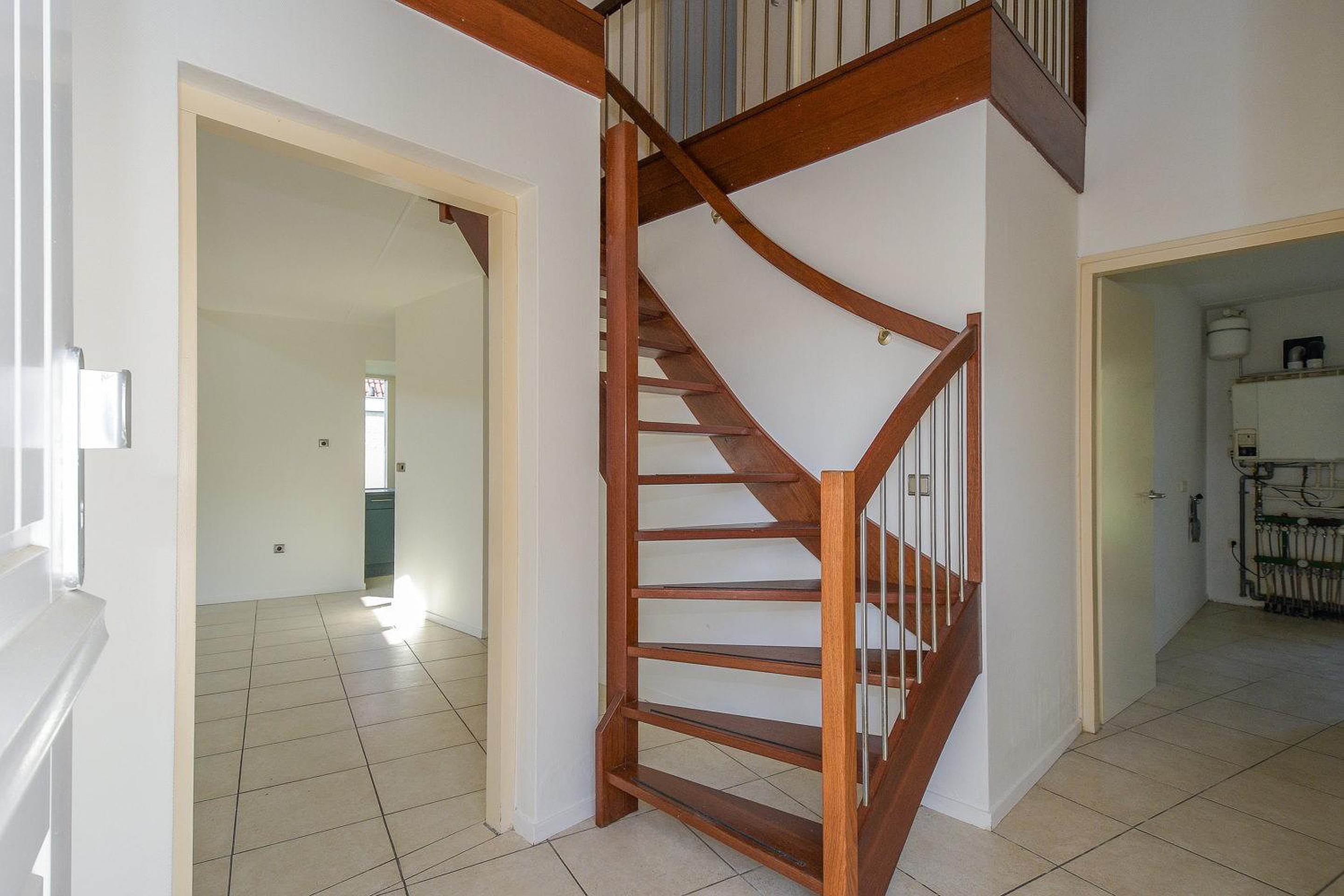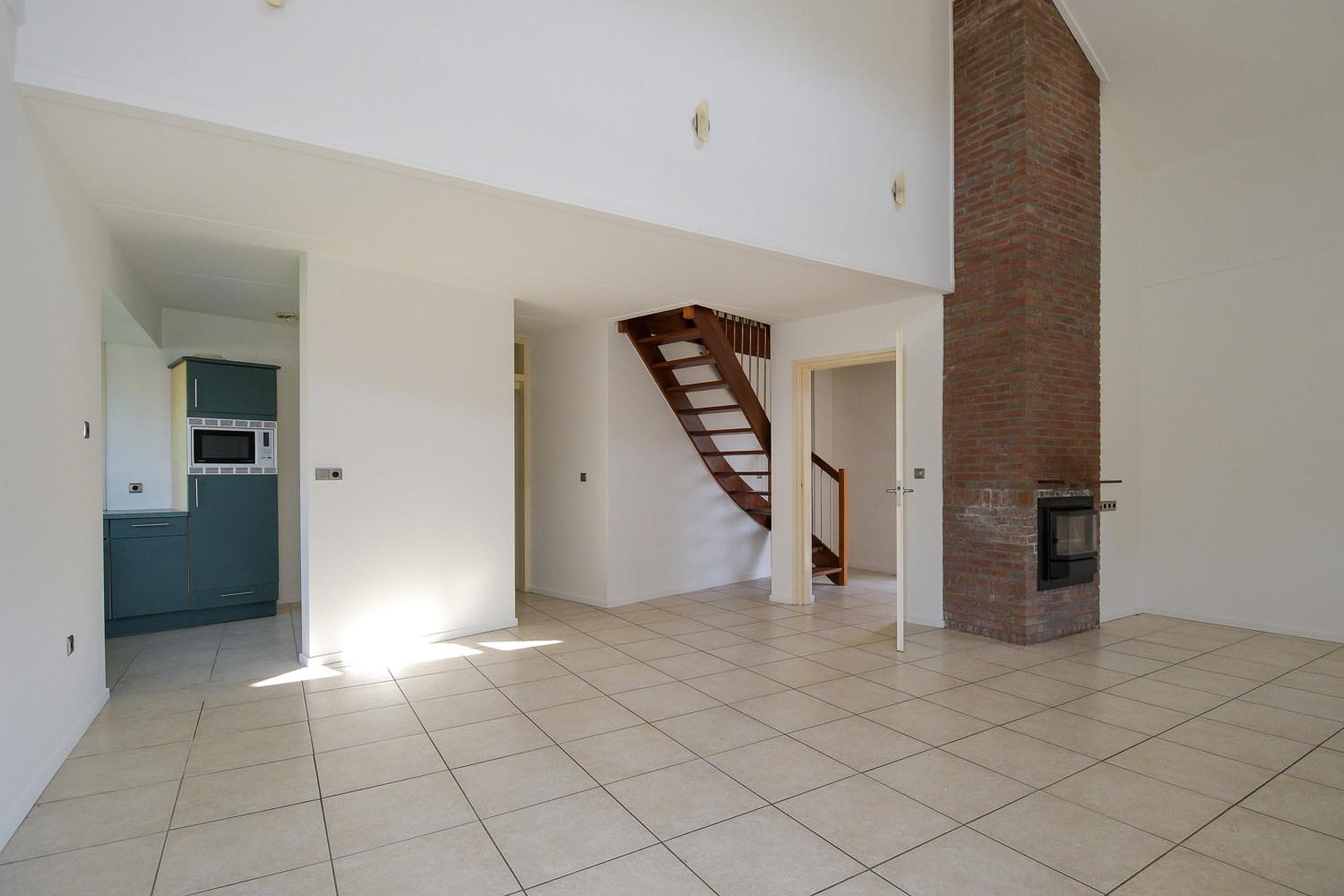 Begane grond Entree, hal, meterkast en trapopgang naar de eerste verdieping. De woonkamer met vide geeft direct een ruimtelijk gevoel door de hoogte en het fraaie lichtspel. De ingebouwde open haard zorgt voor de sfeer en past perfect in zowel een modern als in een klassiek interieur. Nagenoeg de gehele begane grond is voorzien van plavuizen met vloerverwarming. De open keuken met rondom uitzicht is al wat ouder en toe aan een moderniseringsslag.