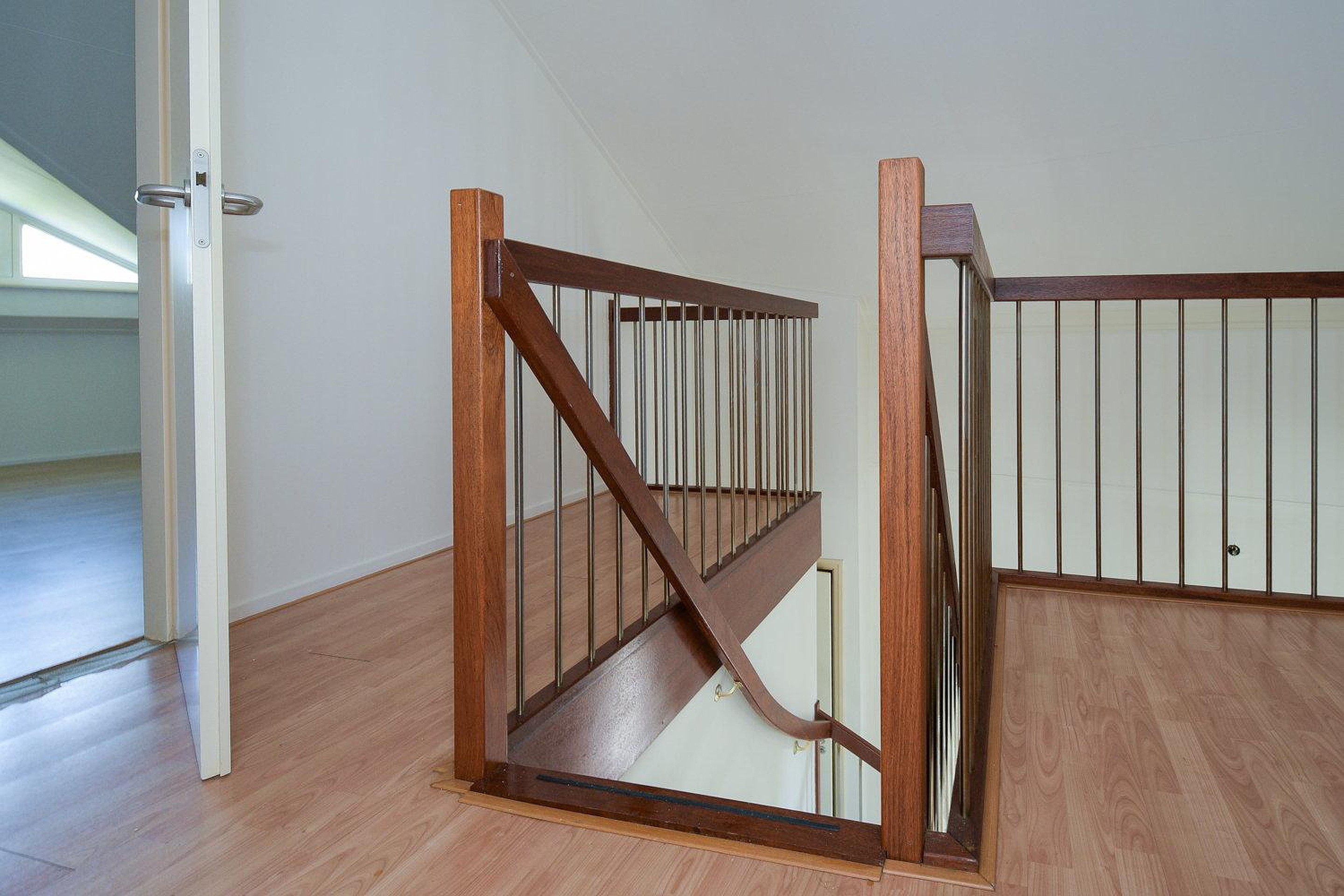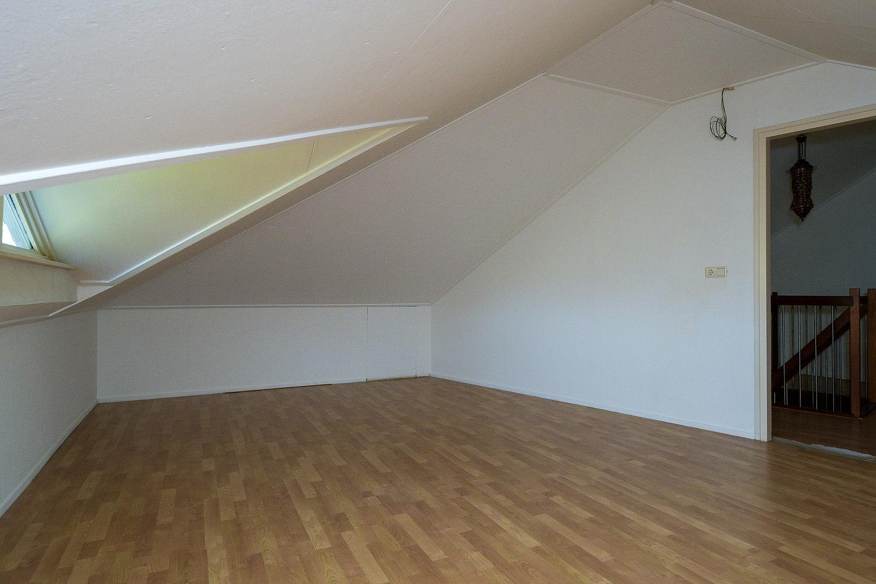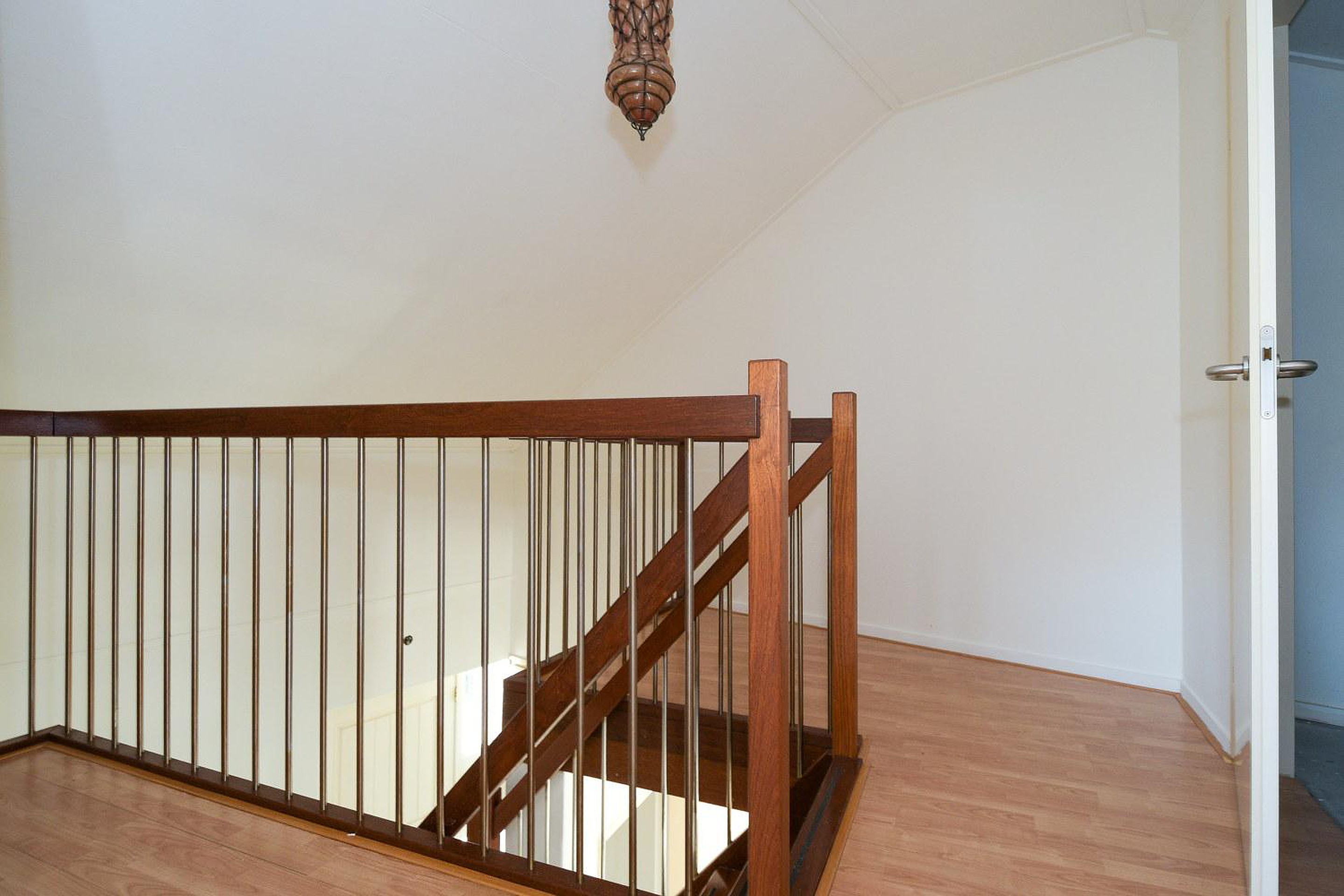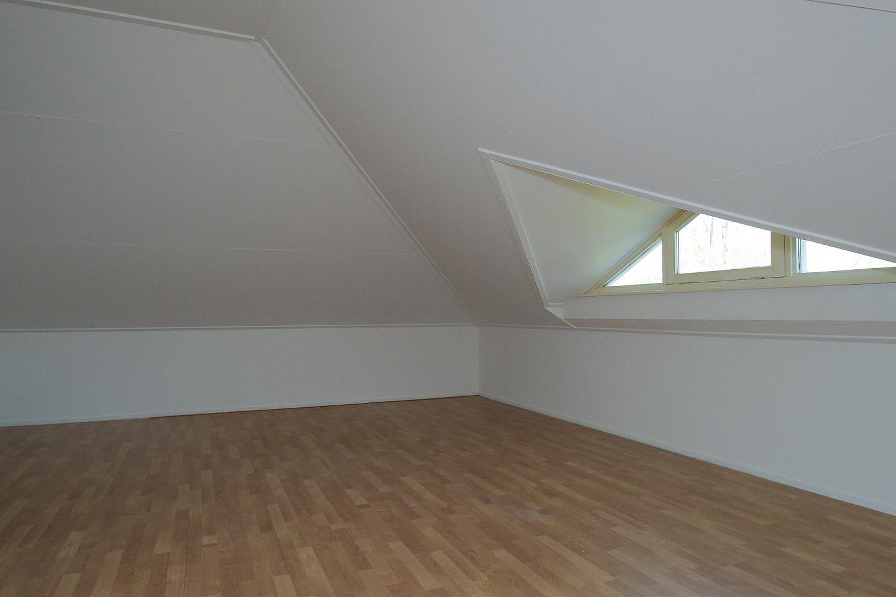 Eerste verdieping Een vaste trap leidt naar de verdieping. De overloop geeft door de vide een fraai ruimtelijk overzicht. Vanaf de overloop kom je in een ruime slaapkamer met dakkapel. Verder is er een ruimte ingericht als bergruimte, maar met het plaatsen van een dakkapel is het mogelijk hier nog een extra ‘kleinere’ slaapkamer te creëren.